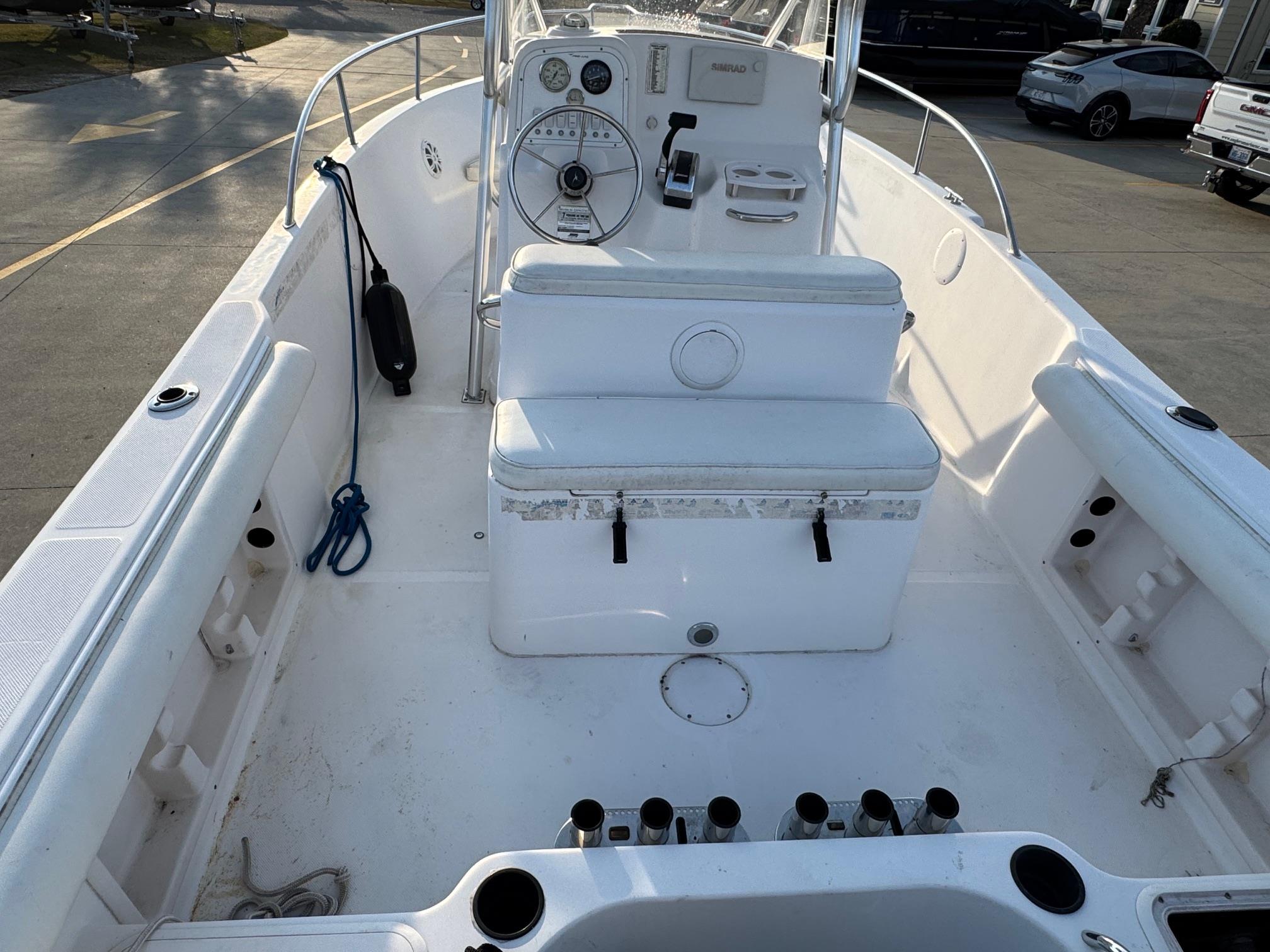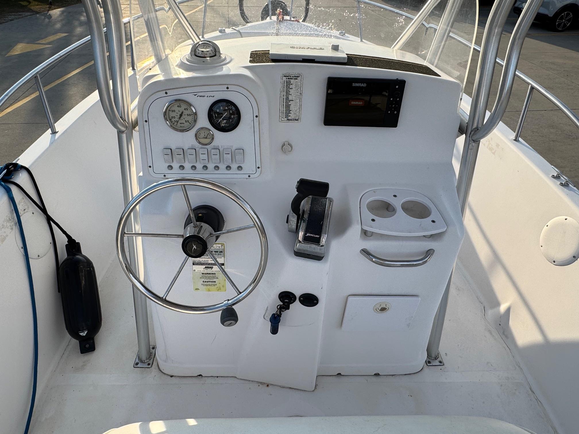 This 2005 Pro Line 21 center console has been repowered by a Mercury 200 EFI 2-stroke with 200 hours. It has a Simrad Cruise 7 GPS/Fishfinder equipped and with a big leaning post livewell you can fish all day long in this boat. Come see this boat at our Supply, NC location or call 910-755-7900 for more information.