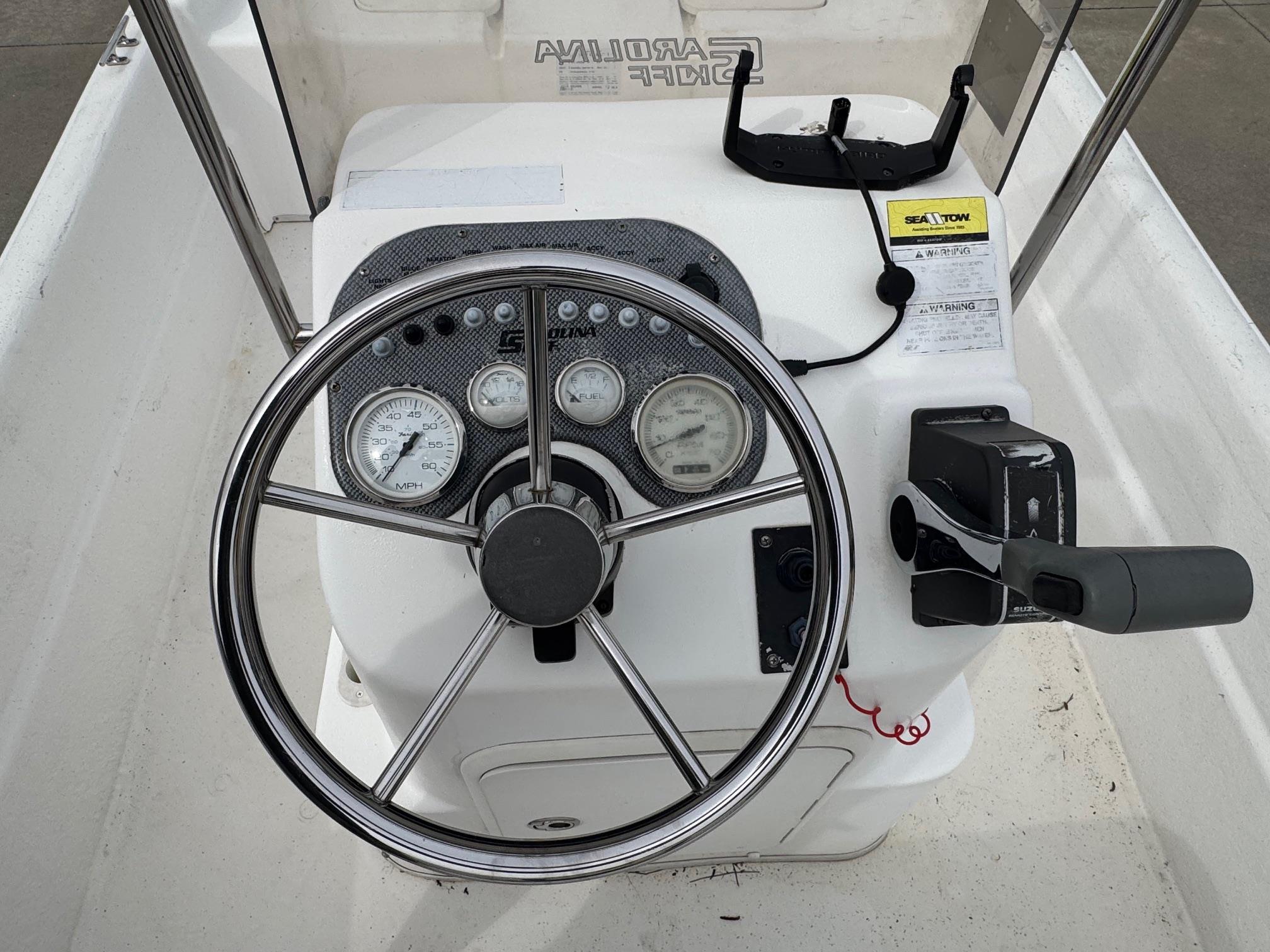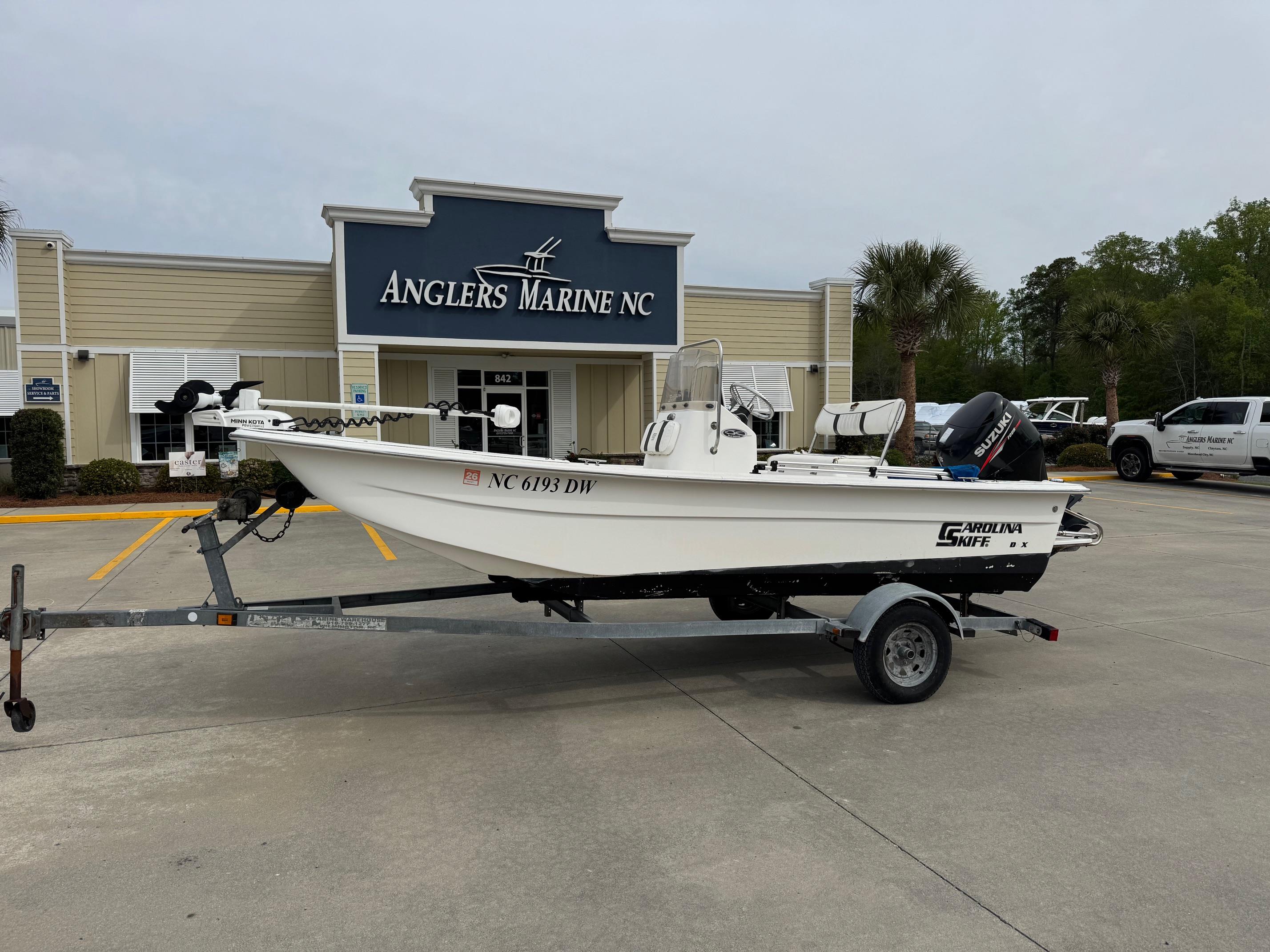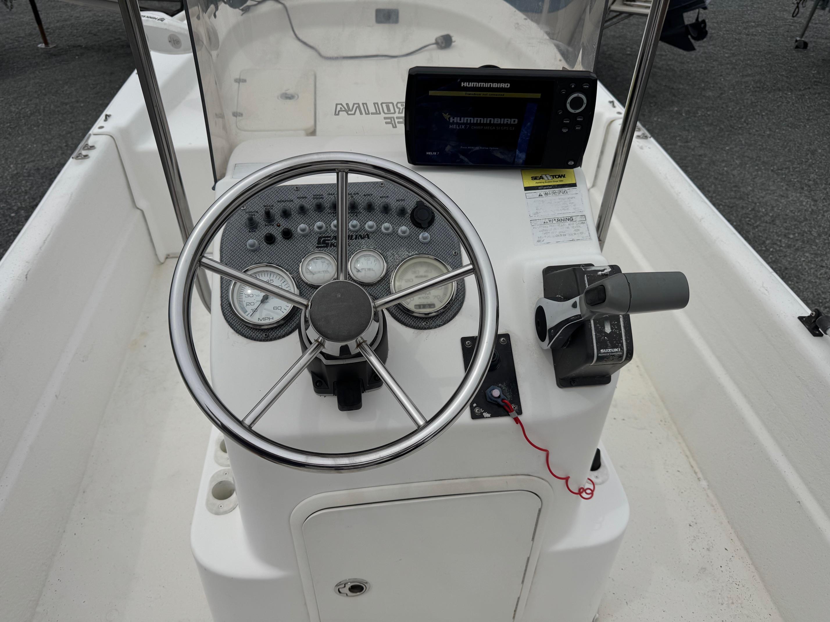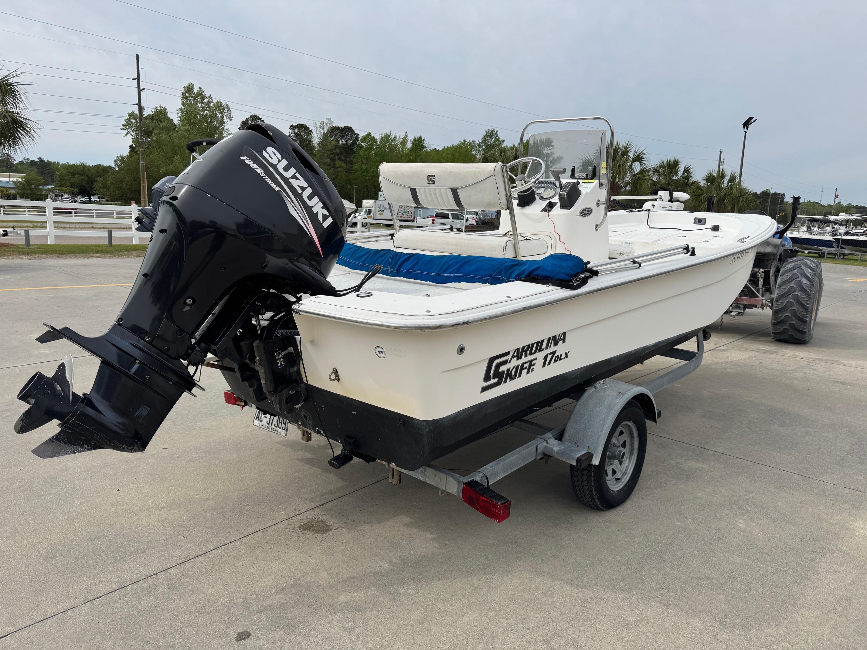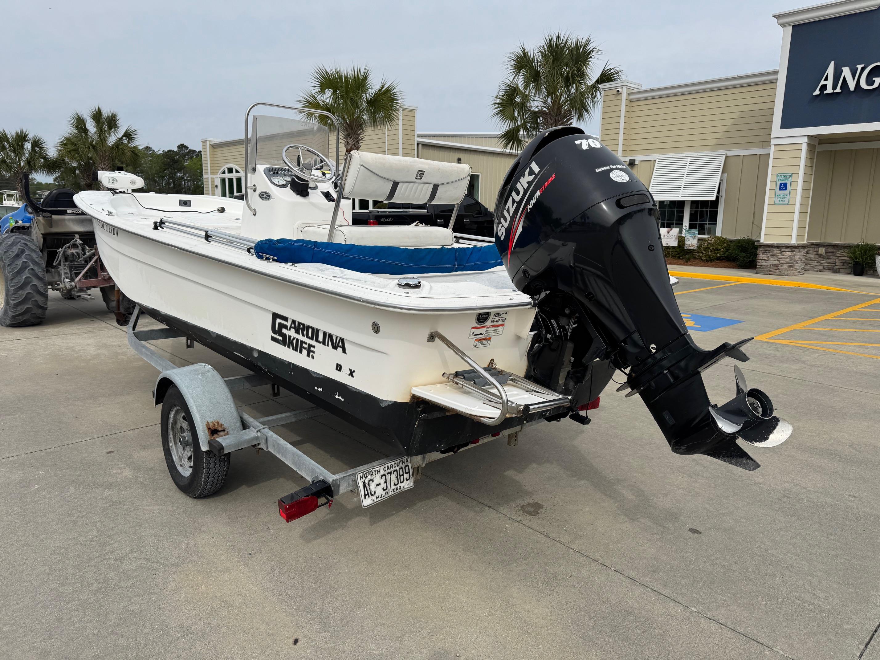 This 2012 Carolina Skiff 17 DLX is powered by a Suzuki 70 with 480 HOURS. It has a Humminbird Helix 7 GPS/Fishfinder included, bimini top, and rear livewell. This boat is great for shallow water areas for fishing and island hopping. Come see this skiff at our Supply, NC location or call 910-755-7900 for more information.