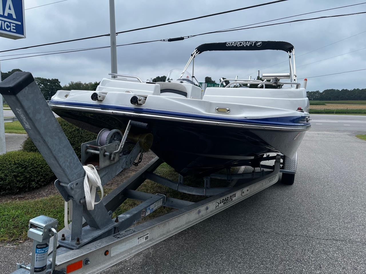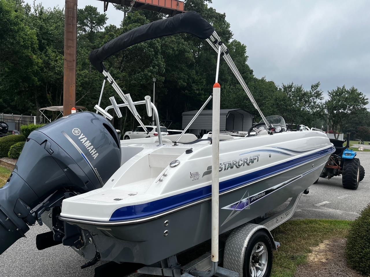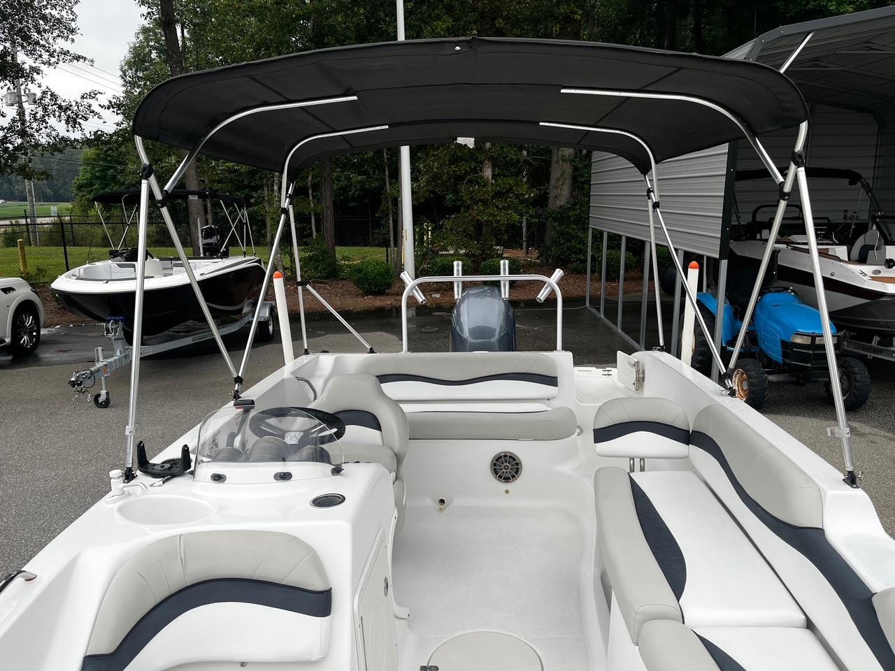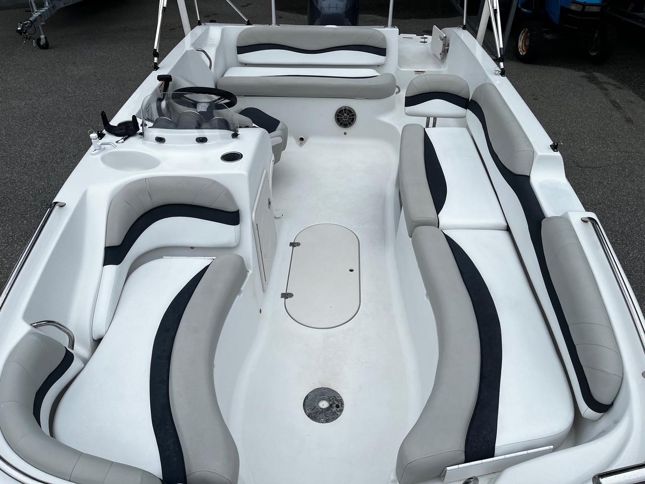 This 2017 Starcraft 2000 deck boat is powered by a Yamaha 150. It comes with a Garmin GPS/Fishfinder, ski tow arch with rod holders, and bimini top. This boat has a spacious open layout with plenty of seating for the family and storage under the cushions and in-floor storage. Come see this boat at our Clayton, NC location or call 919-585-7900 for more information.