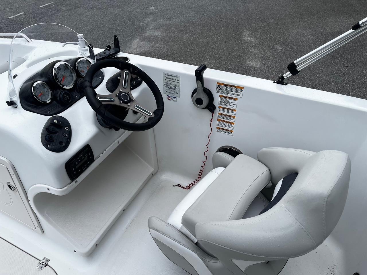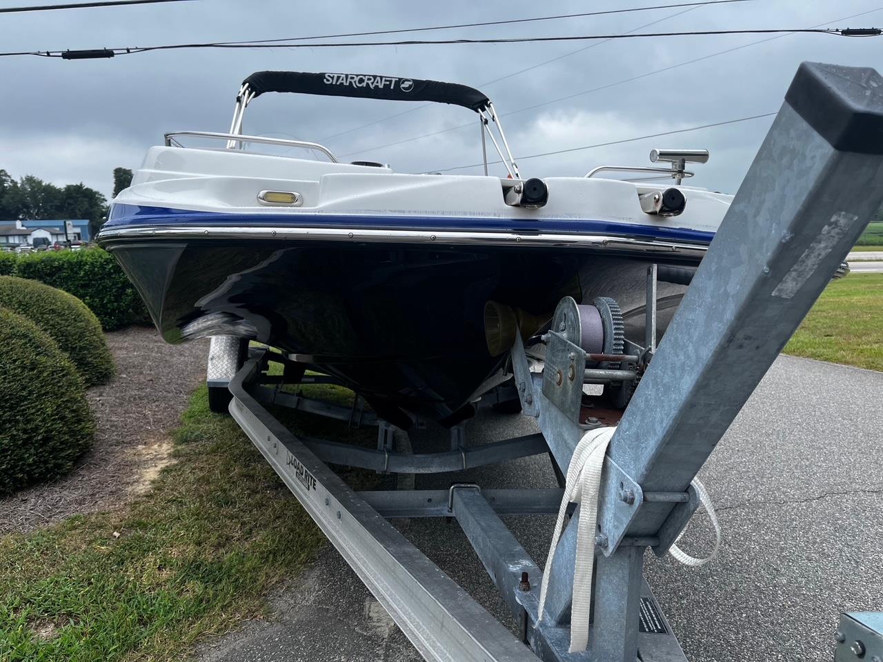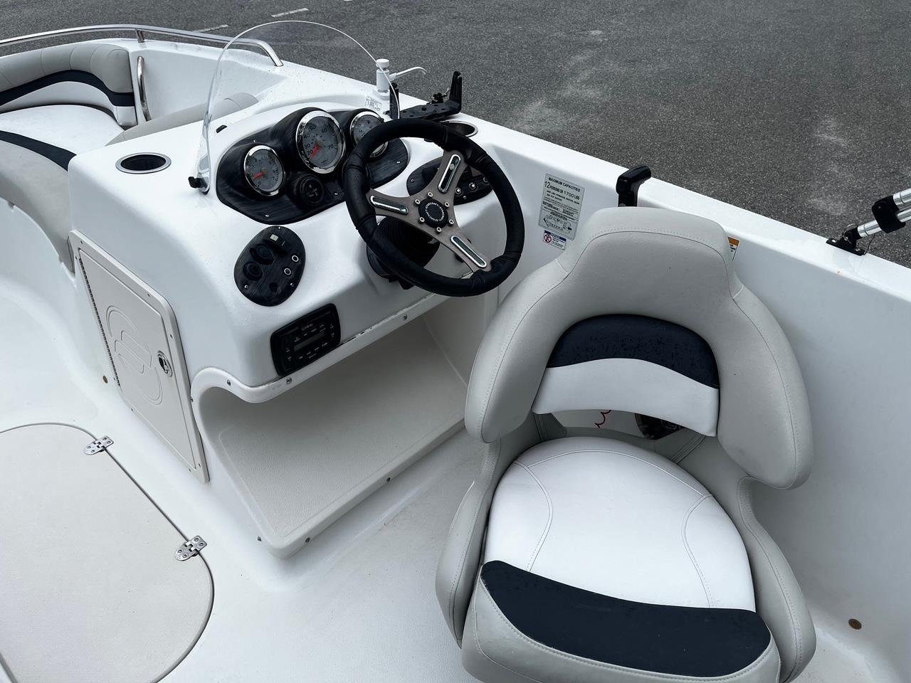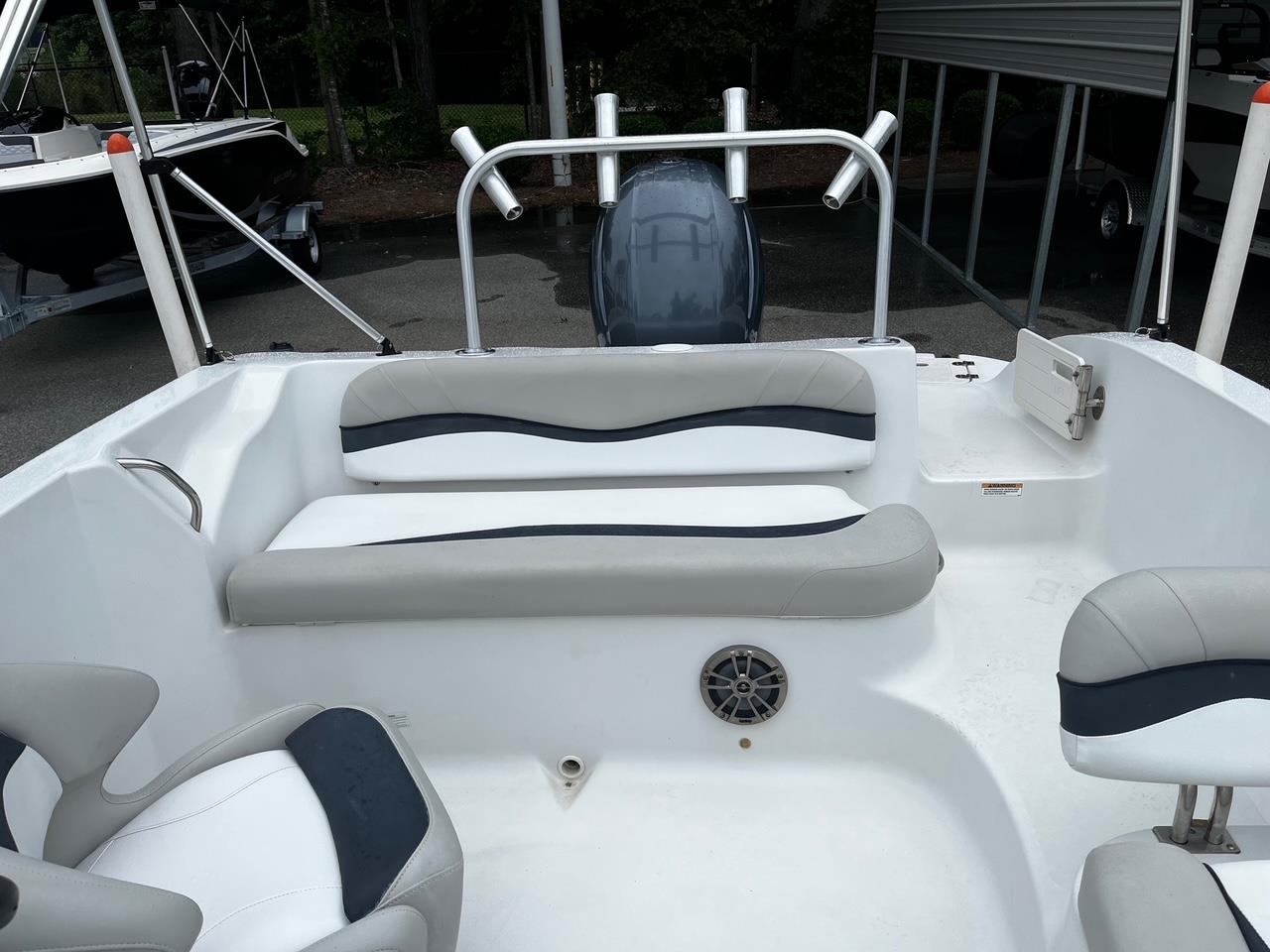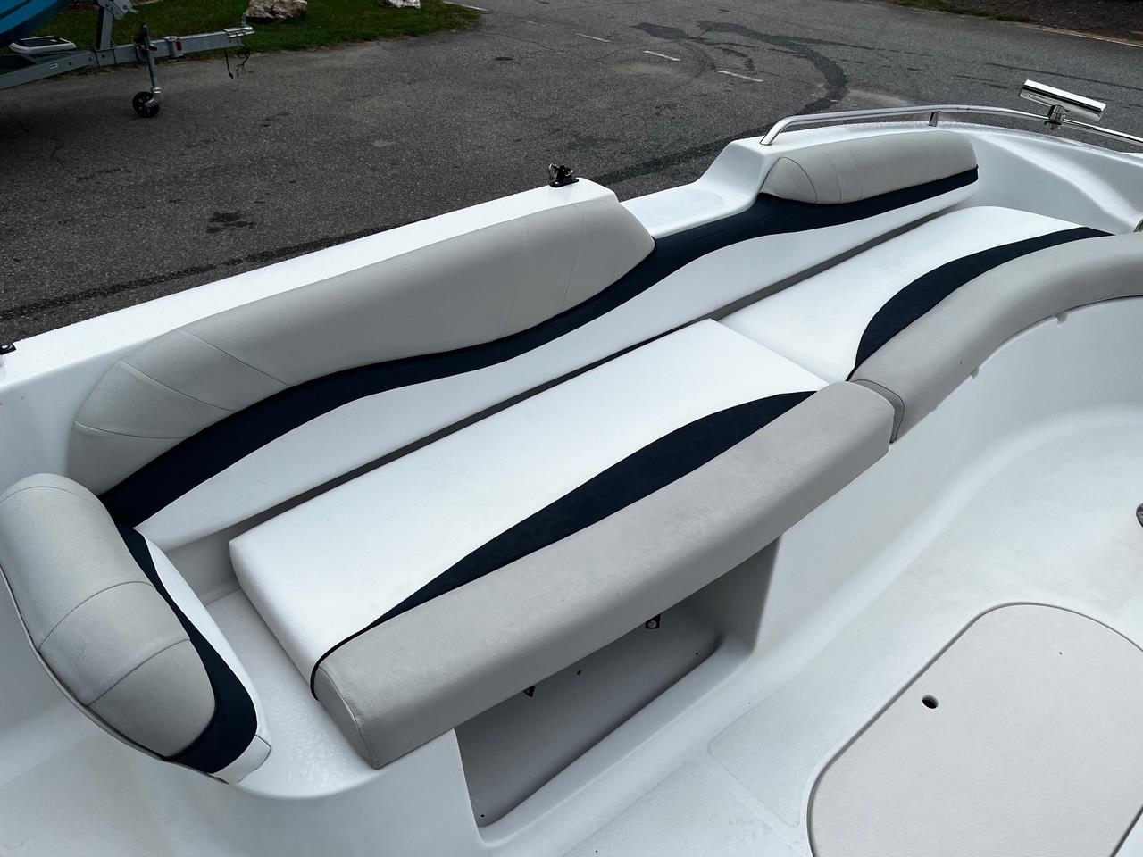 This 2017 Starcraft 2000 deck boat is powered by a Yamaha 150. It comes with a Garmin GPS/Fishfinder, ski tow arch with rod holders, and bimini top. This boat has a spacious open layout with plenty of seating for the family and storage under the cushions and in-floor storage. Come see this boat at our Clayton, NC location or call 919-585-7900 for more information.