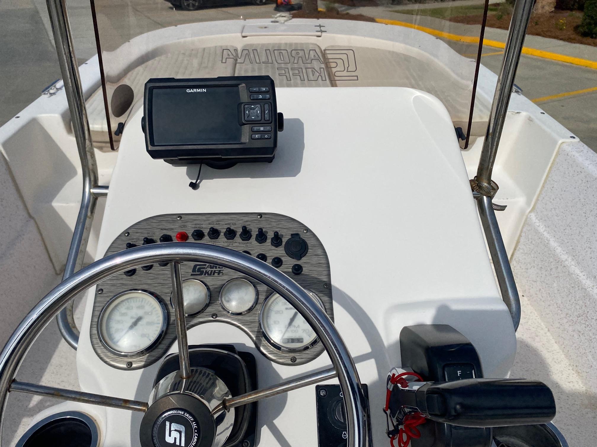 This 2019 Carolina Skiff 218 DLV is powered by a Suzuki 140 with about 240 HOURS. It's already equipped with a Garmin GPS/Fishfinder and bimini top. This is one of the most popular skiffs on the market, able to get into shallow water areas for fishing and island hopping. Come see this boat at our Supply, NC location or call 910-755-7900 for more information.