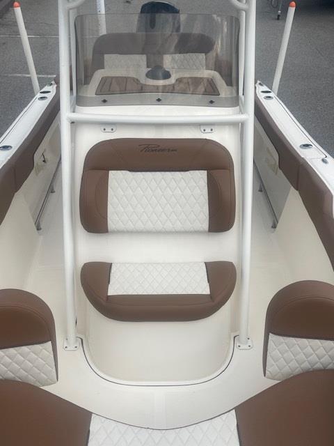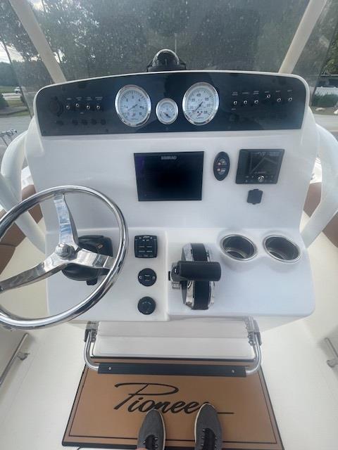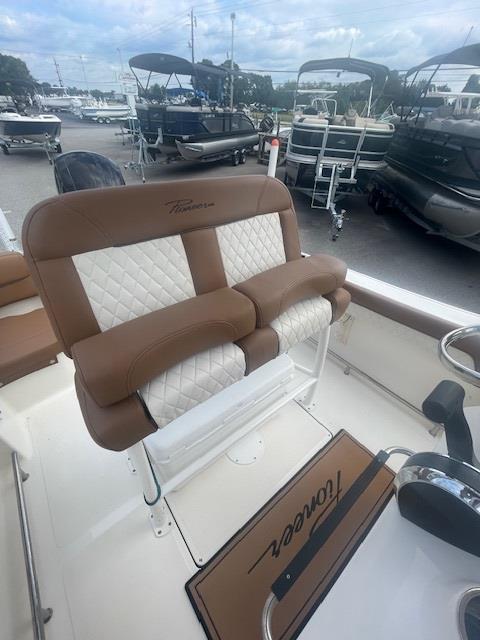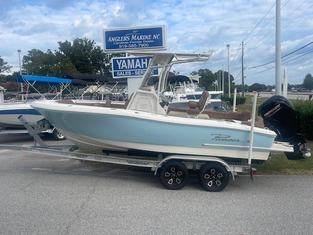 This 2022 Pioneer 202 Islander center console is powered by a Mercury 150 with 60 HOURS. It's already equipped with a power pole, Simrad GO7 GPS, and upgraded JL Audio sound system! This boat is ready to hit the water for a day of fishing or island hopping, and the family will enjoy comfortable seating at the bow with backrests. Come see this boat at our Clayton, NC location or call 919-585-7900 for more information.