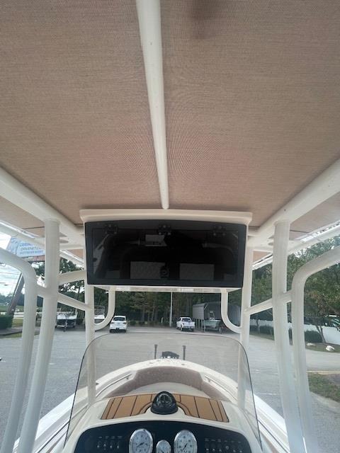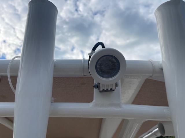 -Canvas t-top with rod holders, electronics box, and white powder coated frame