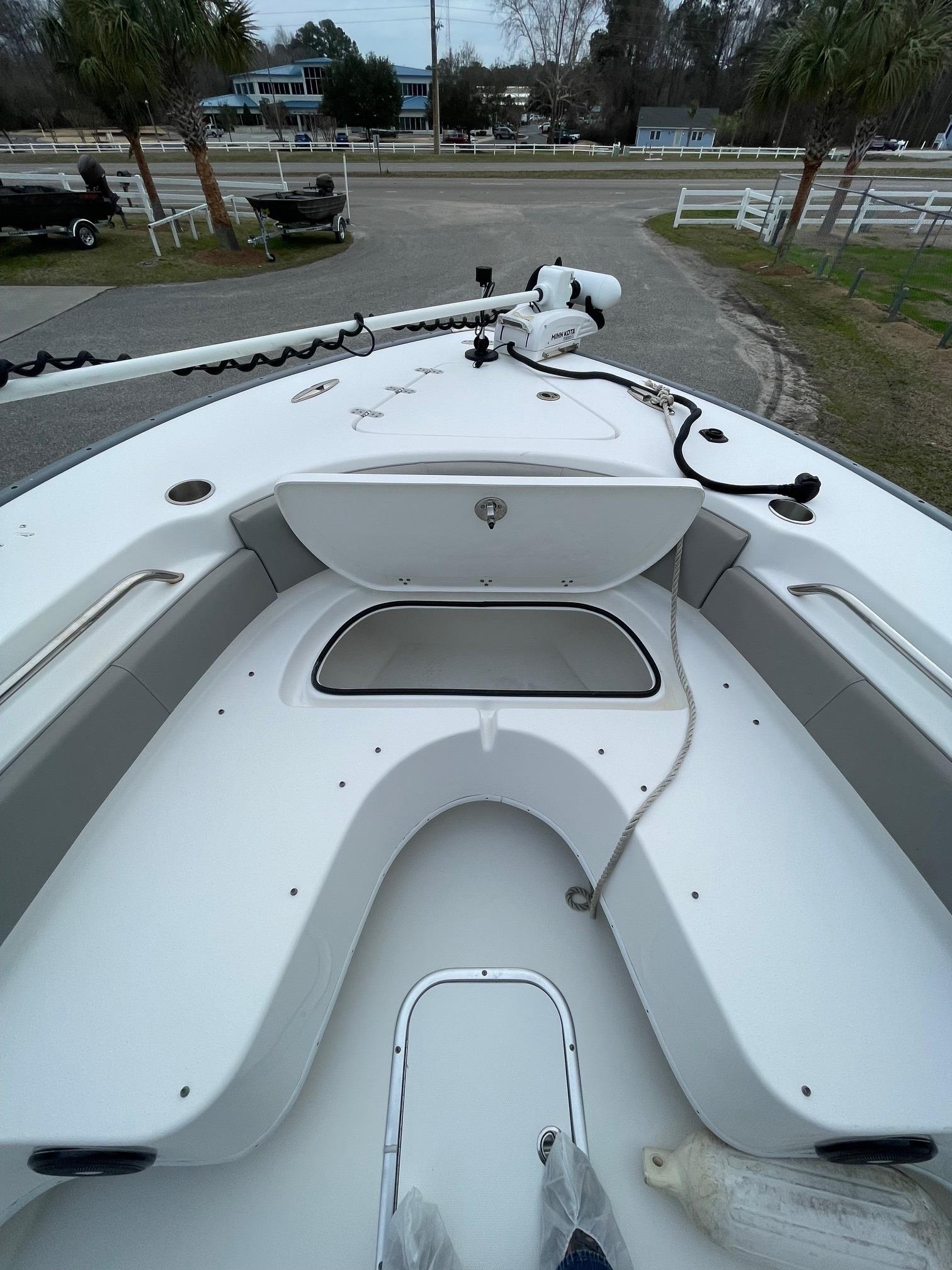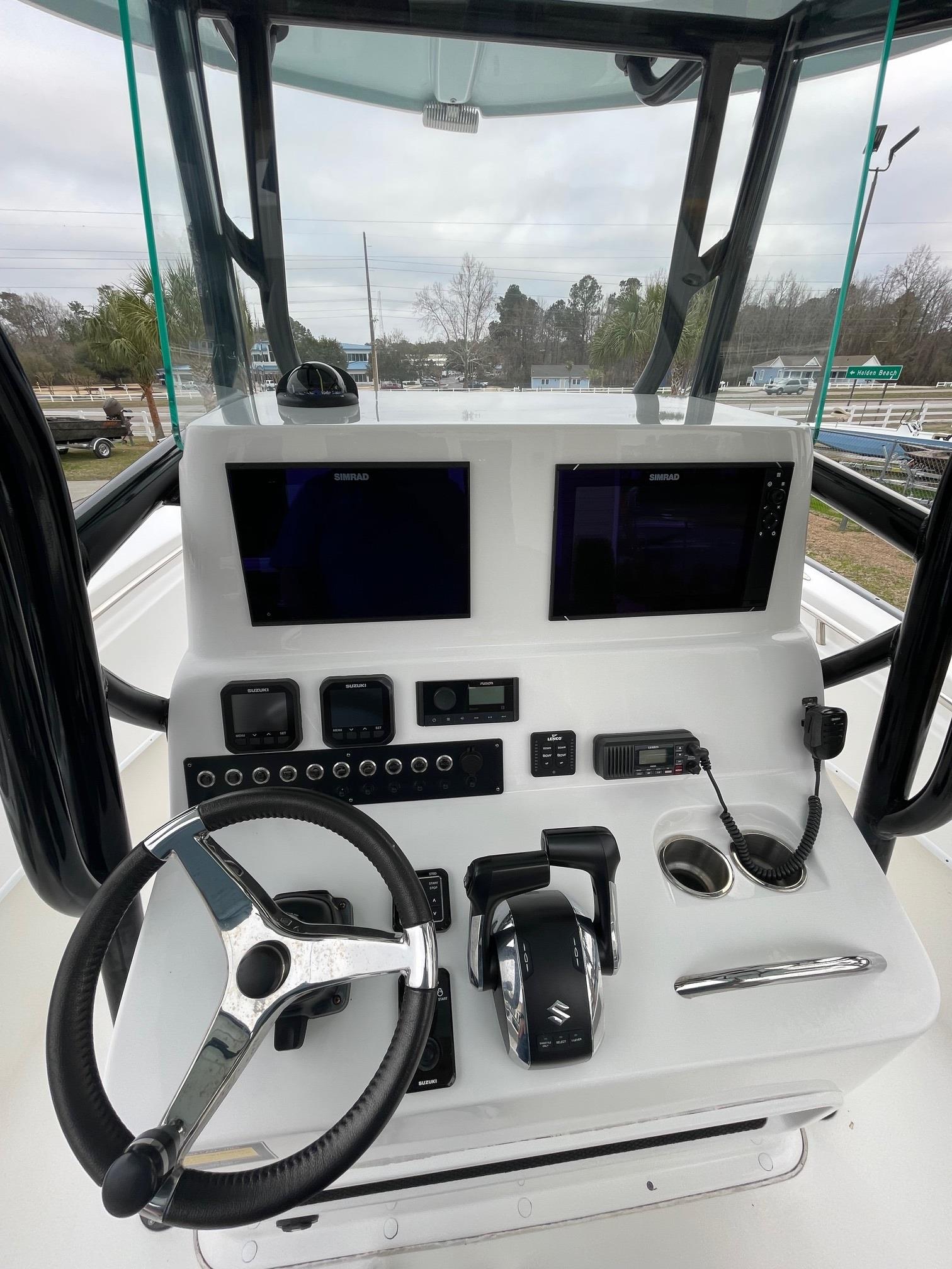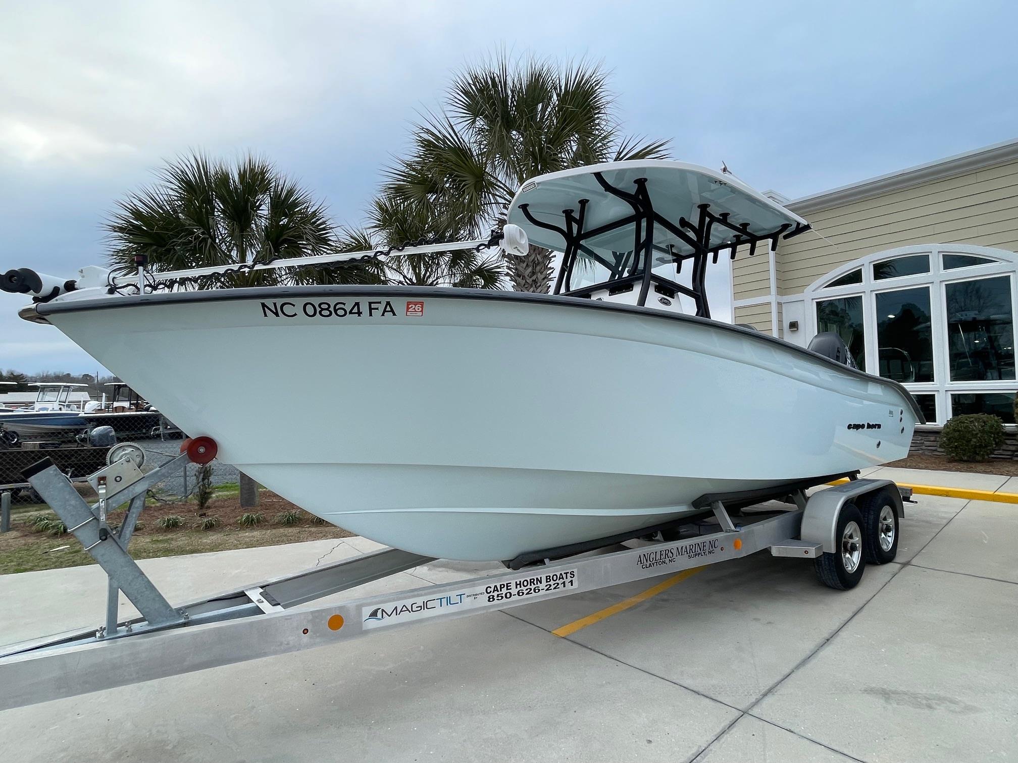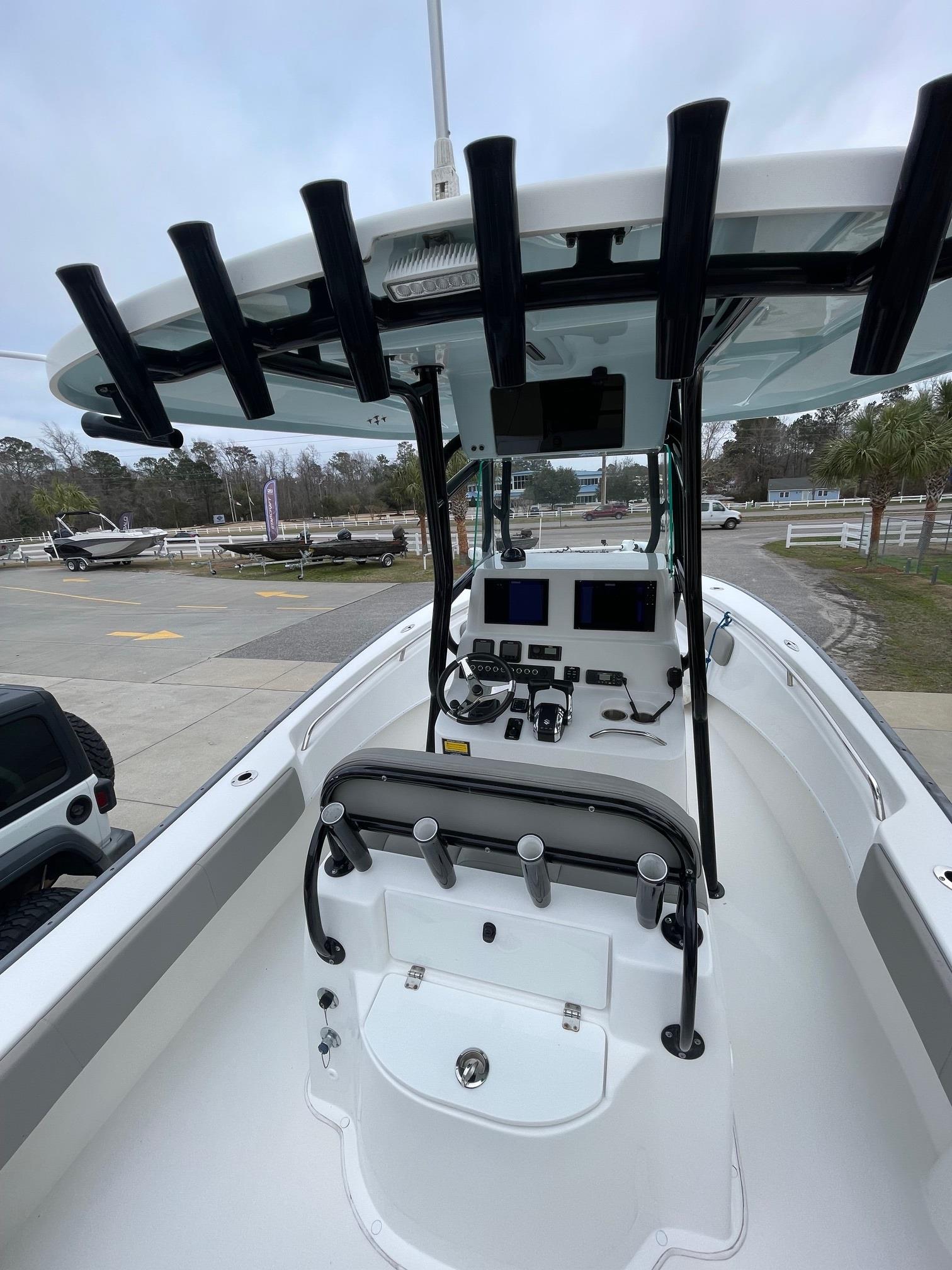 This 2023 Cape Horn 24XS center console is powered by twin Suzuki 200's with 156 HOURS. It's loaded with electronics including dual Simrad GPS/Fishfinders, Minn Kota Terrova trolling motor, VHF radio, and more! This boat comes loaded with standard features including electric trim tabs with indicators, a 20 Gallon freshwater system, and a transom tuna door. It's versatility is impressive due to it's ability to handle serious offshore fishing trips or a day out with family and friends. Come see this boat at our Supply, NC location or call 910-755-7900 for more information.