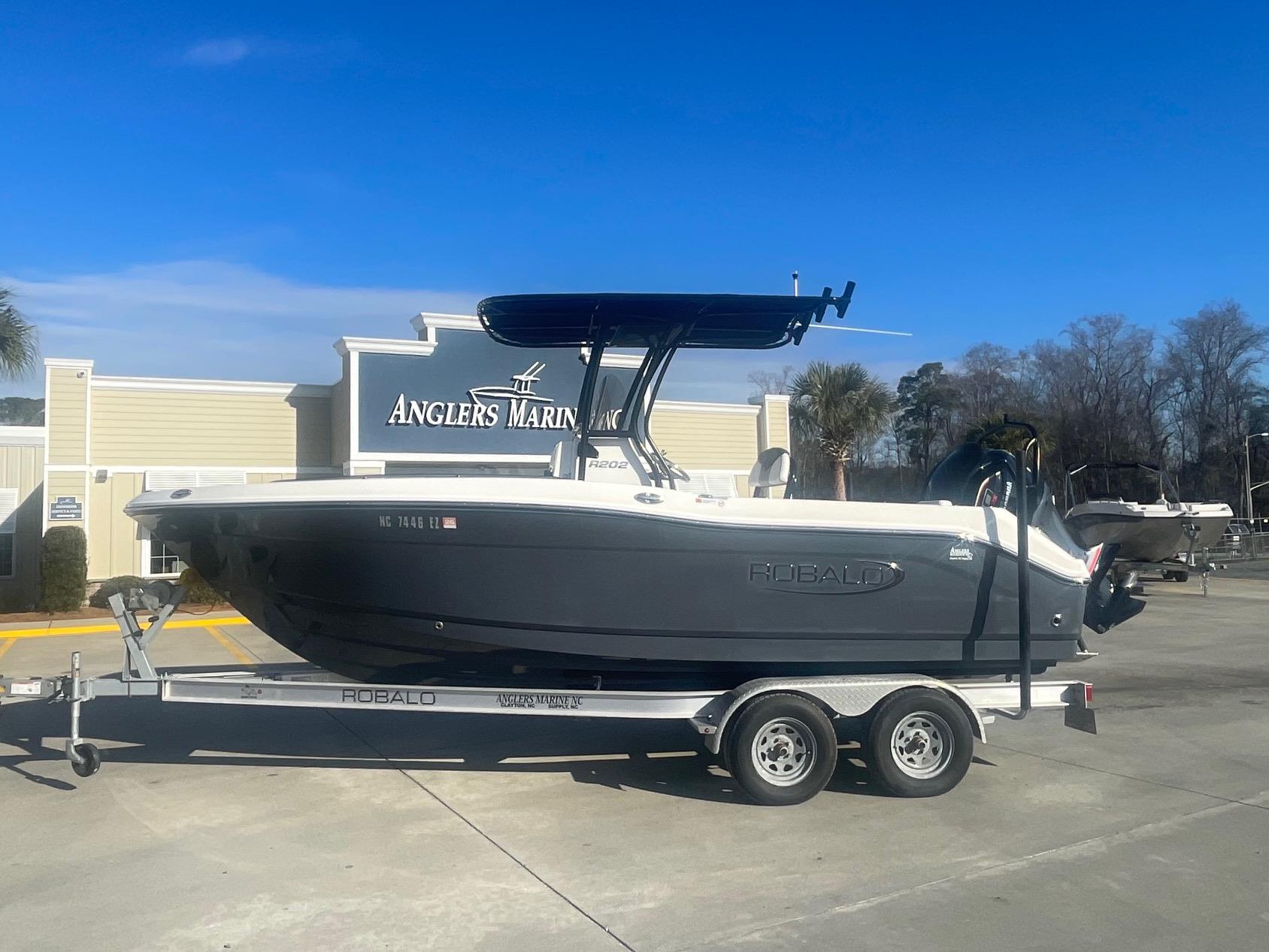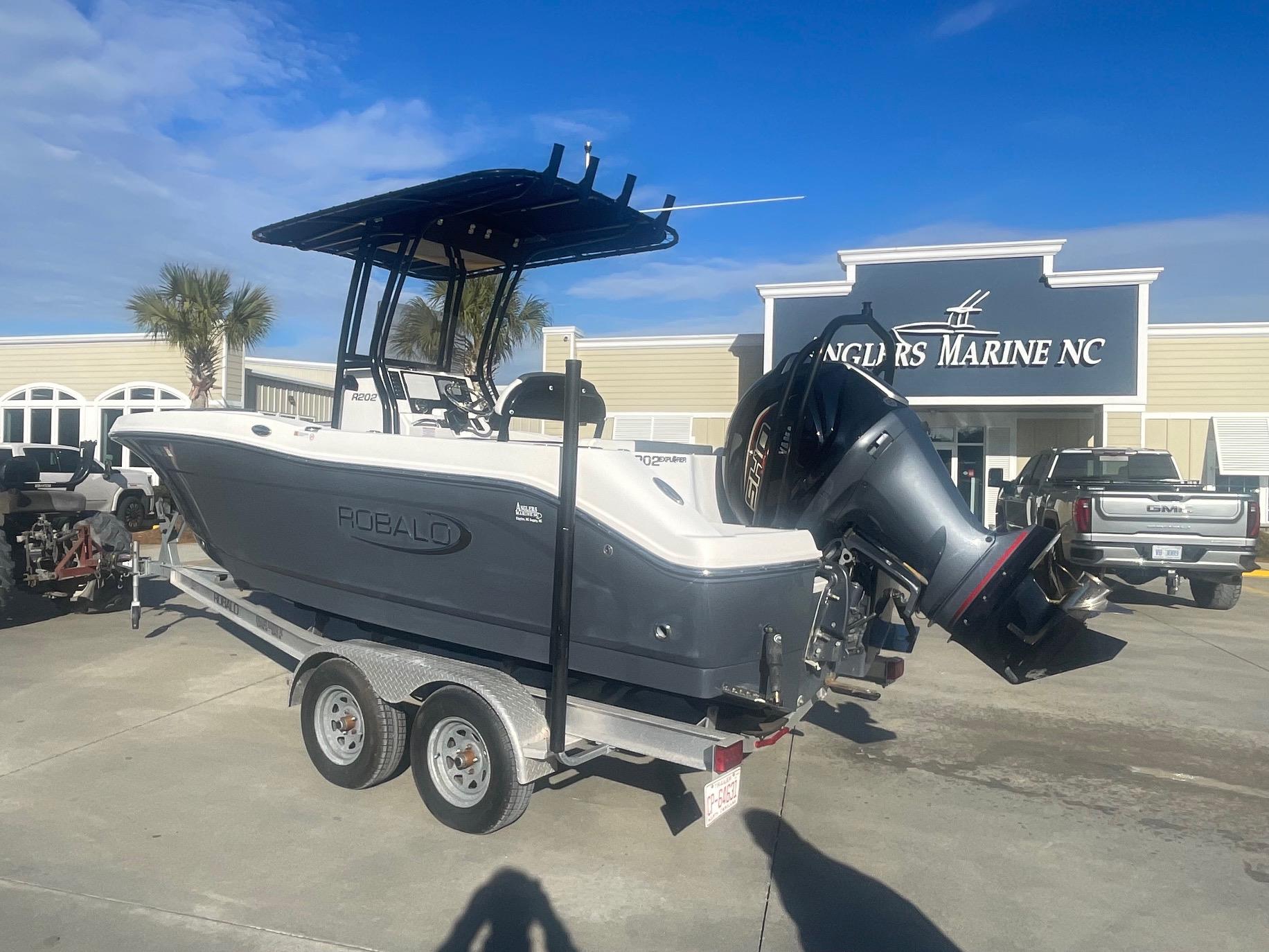 This 2023 Robalo R202 Explorer is powered by a Yamaha 200 SHO with ONLY 20 HOURS. It's loaded with options including a Simrad GO9 GPS/Fishfinder, powder coated ski tow arch, trim tabs, and more! Whether it's a family cruise or landing a trophy fish, the Robalo R202 Explorer can handle it all. It has the style, function, and luxurious appointments for all day family boating that the Robalo name is known for. Come see this boat at our Supply, NC location or call 910-755-7900 for more information.