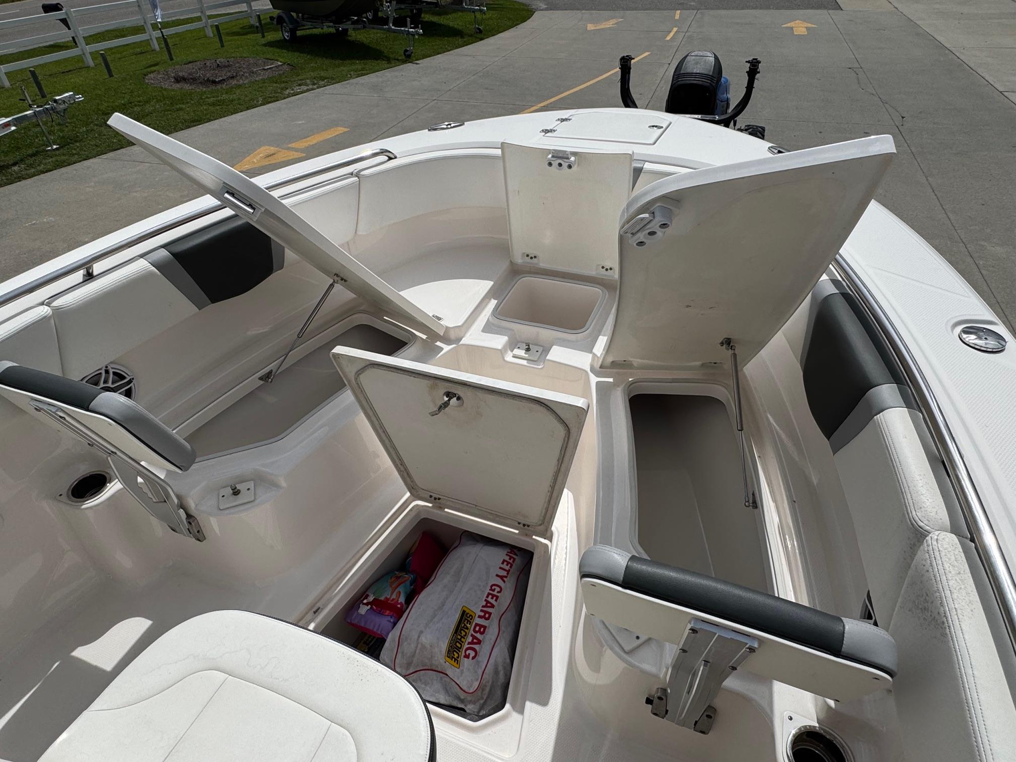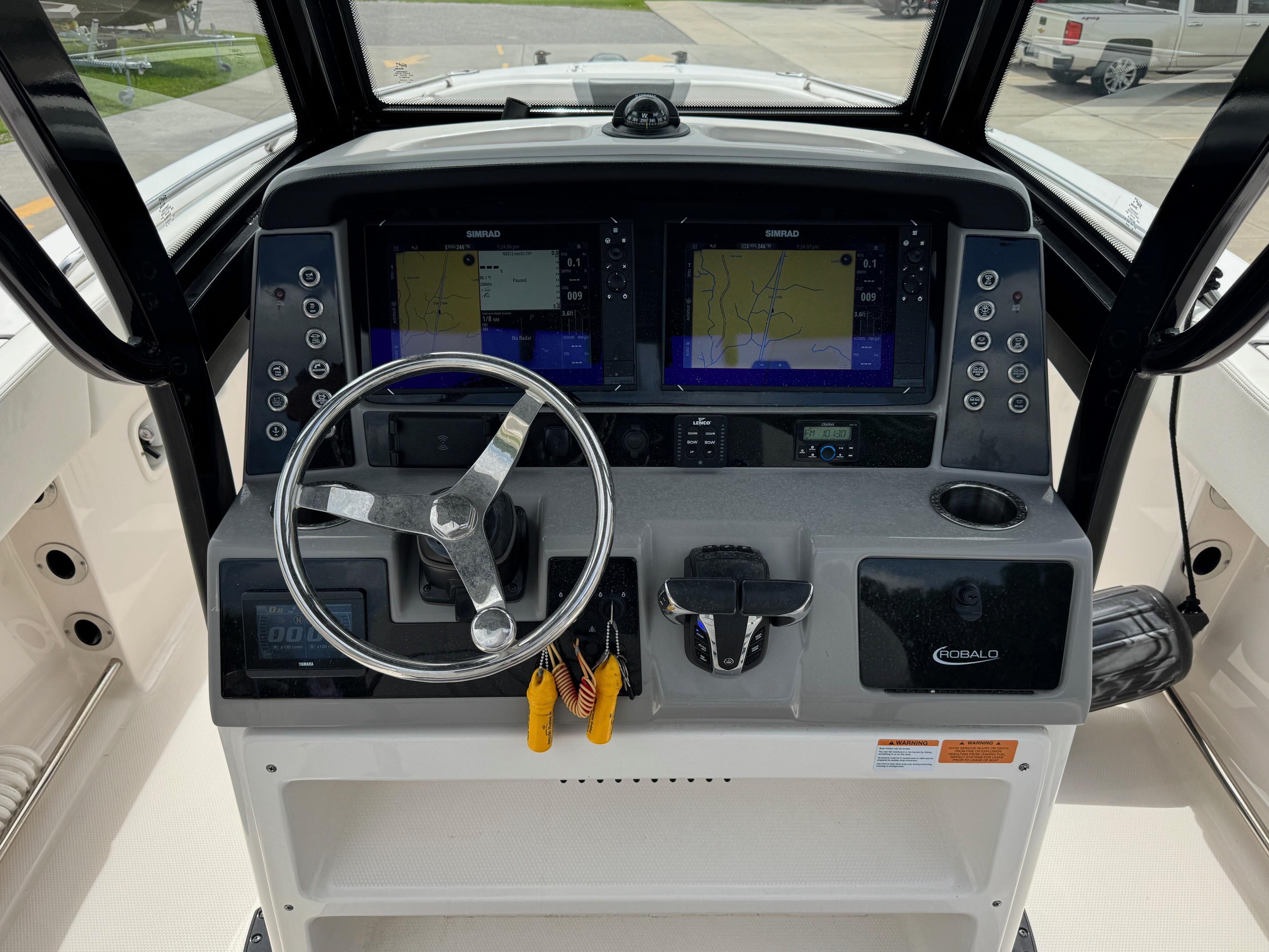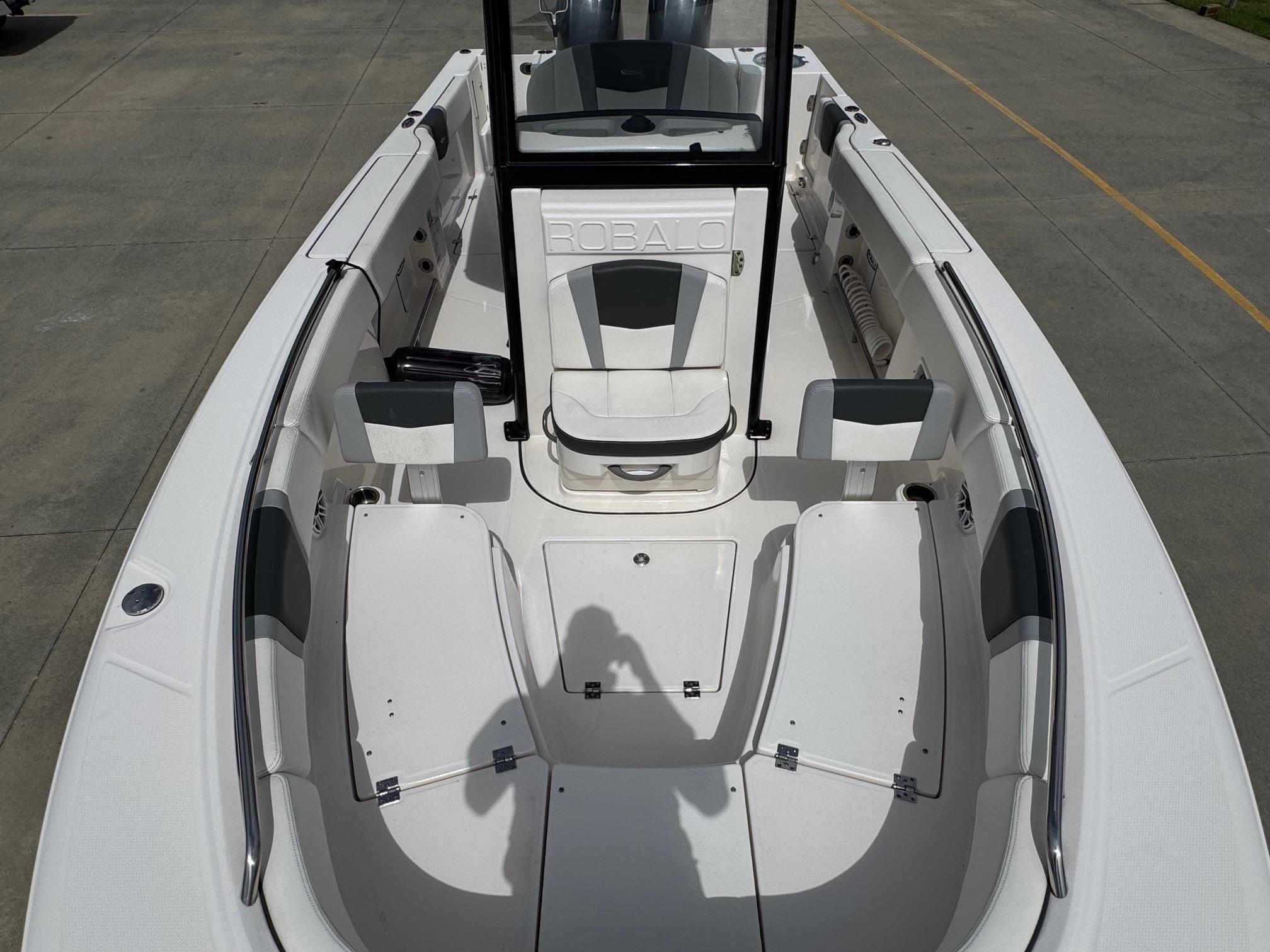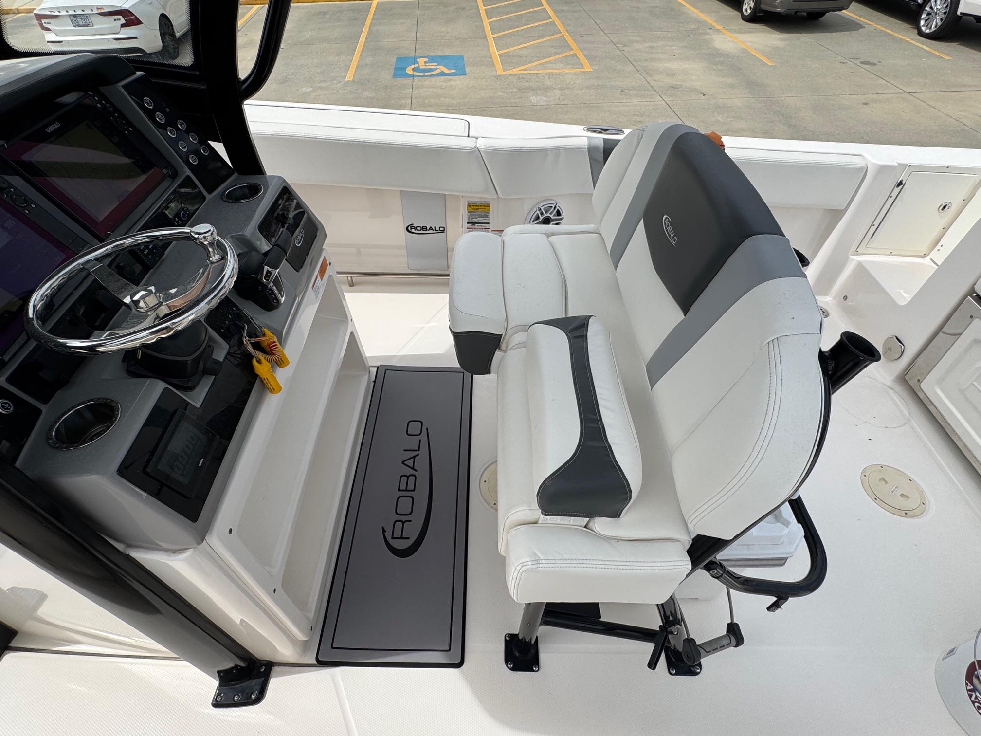 This 2023 Robalo R250 center console is powered by twin Yamaha 200's with 189 HOURS. It's loaded with electronics including dual Simrad 9-inch GPS/Fishfinders, Simrad auto pilot, Simrad VHF, and more! The boat is loaded with standard features including bow seating with storage under the cushions, fold down aft bench seat, easy access livewell, a Yamaha digital gauge, and more! Come see this boat at our Supply, NC location or call 910-755-7900 for more information.