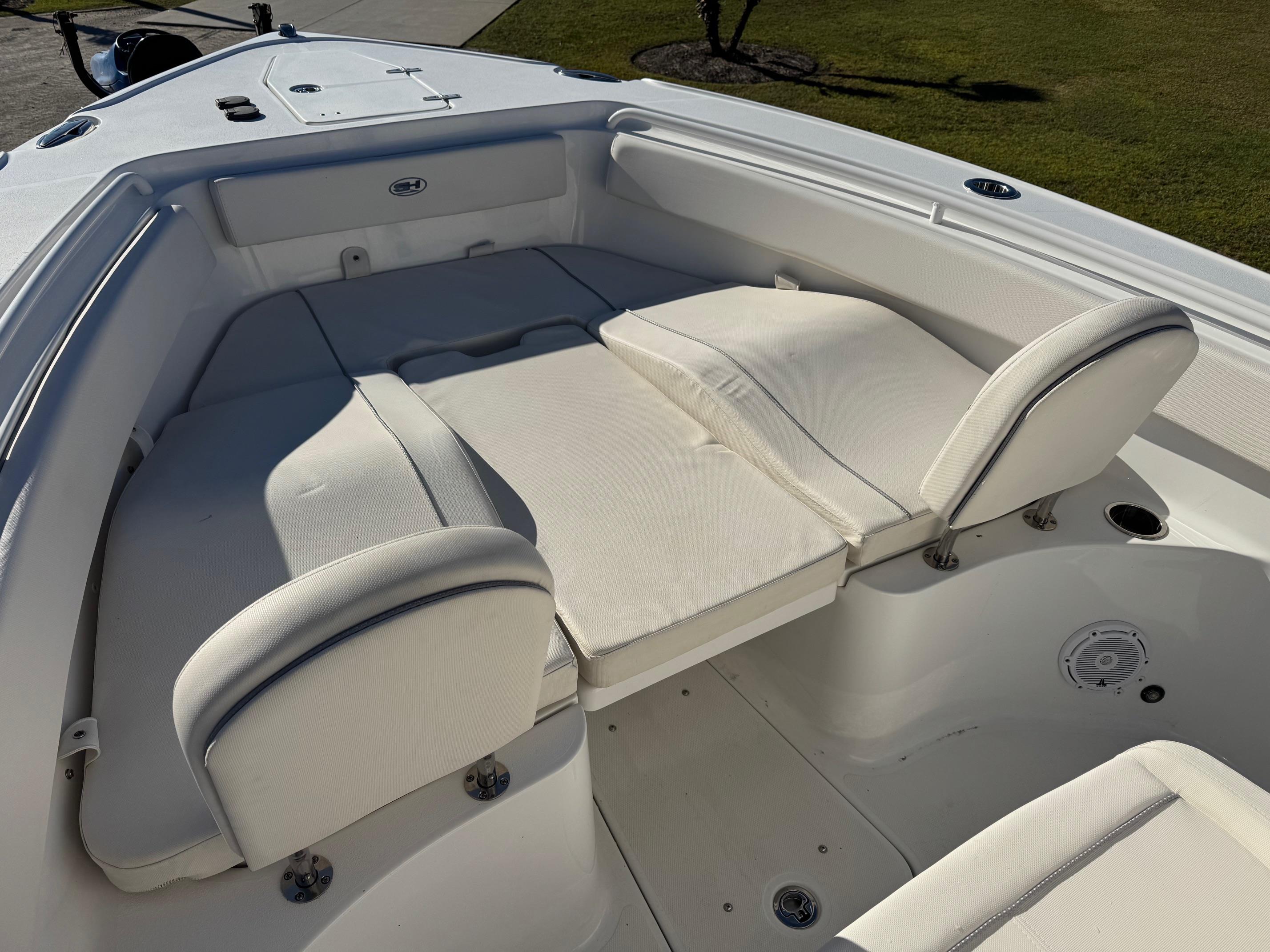 This 2023 Sea Hunt Ultra 265 center console is powered by twin Yamaha 150's with 137 HOURS and digital controls. It's already loaded with electronics including 2 12-inch Garmin GPS units, Garmin radar, and Garmin VHF! With this boat you can take the family out for a day of cruising and island hopping or fishing. It has plenty of seating and storage with full bow cushions and rear bench seat. Come see this boat at our Supply, NC location or call 910-755-7900 for more information.