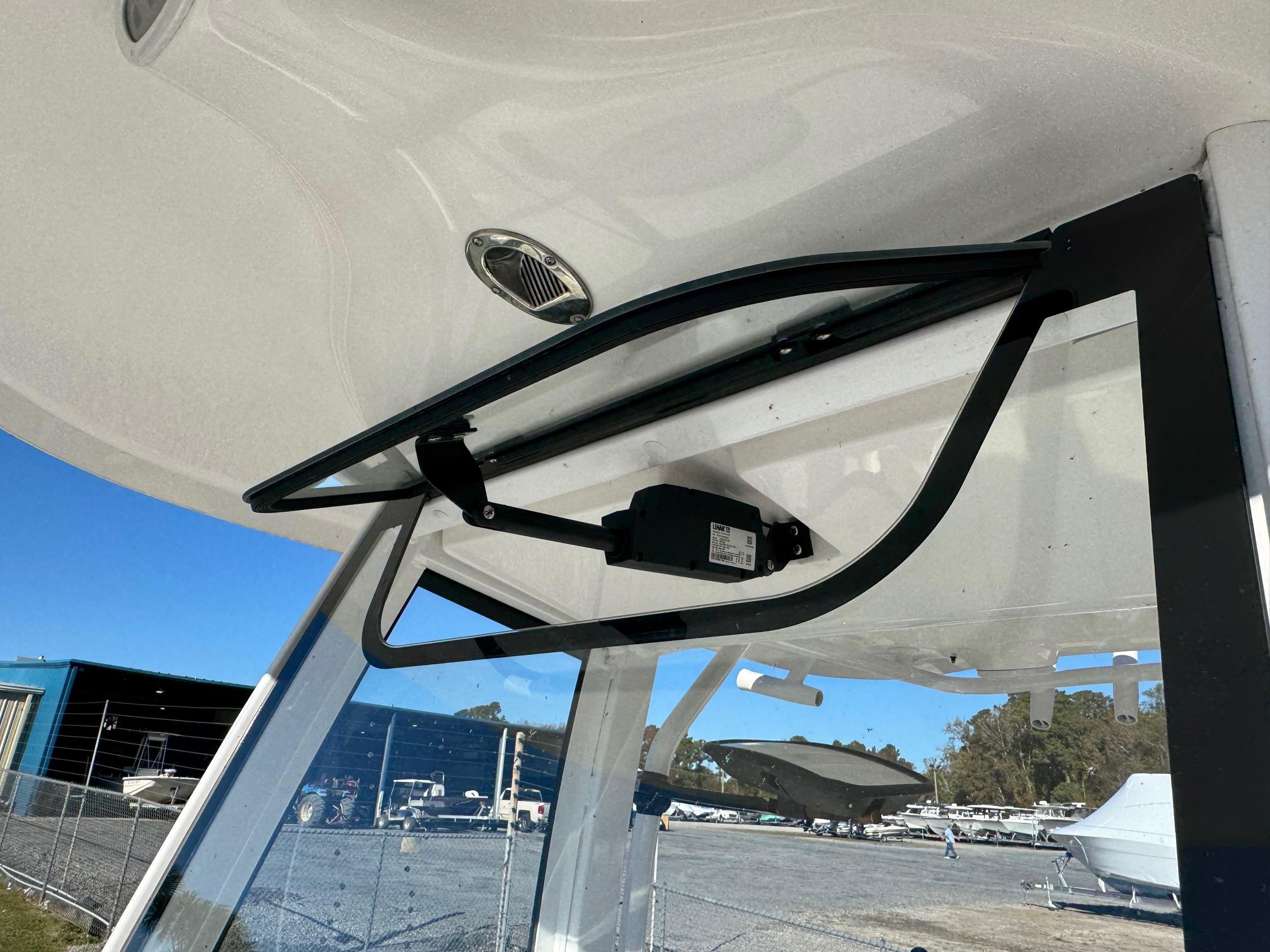 -Powder coated Hard top with tempered glass enclosure, top vent, rod holders, and LED spreader lights