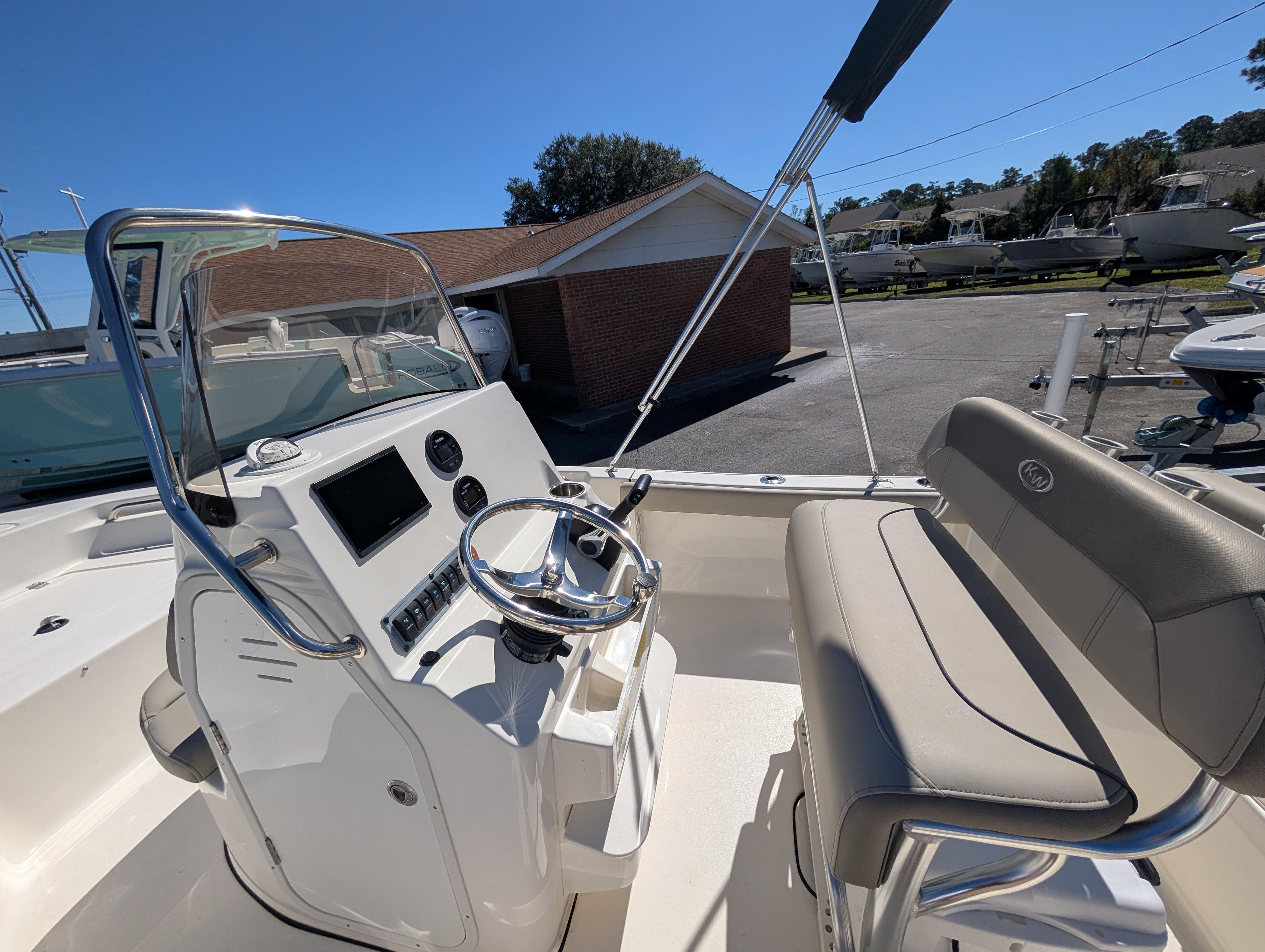 This 2024 Key West 189 FS center console is powered by a Yamaha F115XB. It's the smallest in the Family Sportsman fleet, but this boat comes loaded with standard features including a porta pottie room inside the console, full transom bench seating with storage and a livewell underneath, a molded in swim platform with a ladder, and more! Come see this boat in our showroom at our Supply, NC location or call 910-755-7900 for more information.