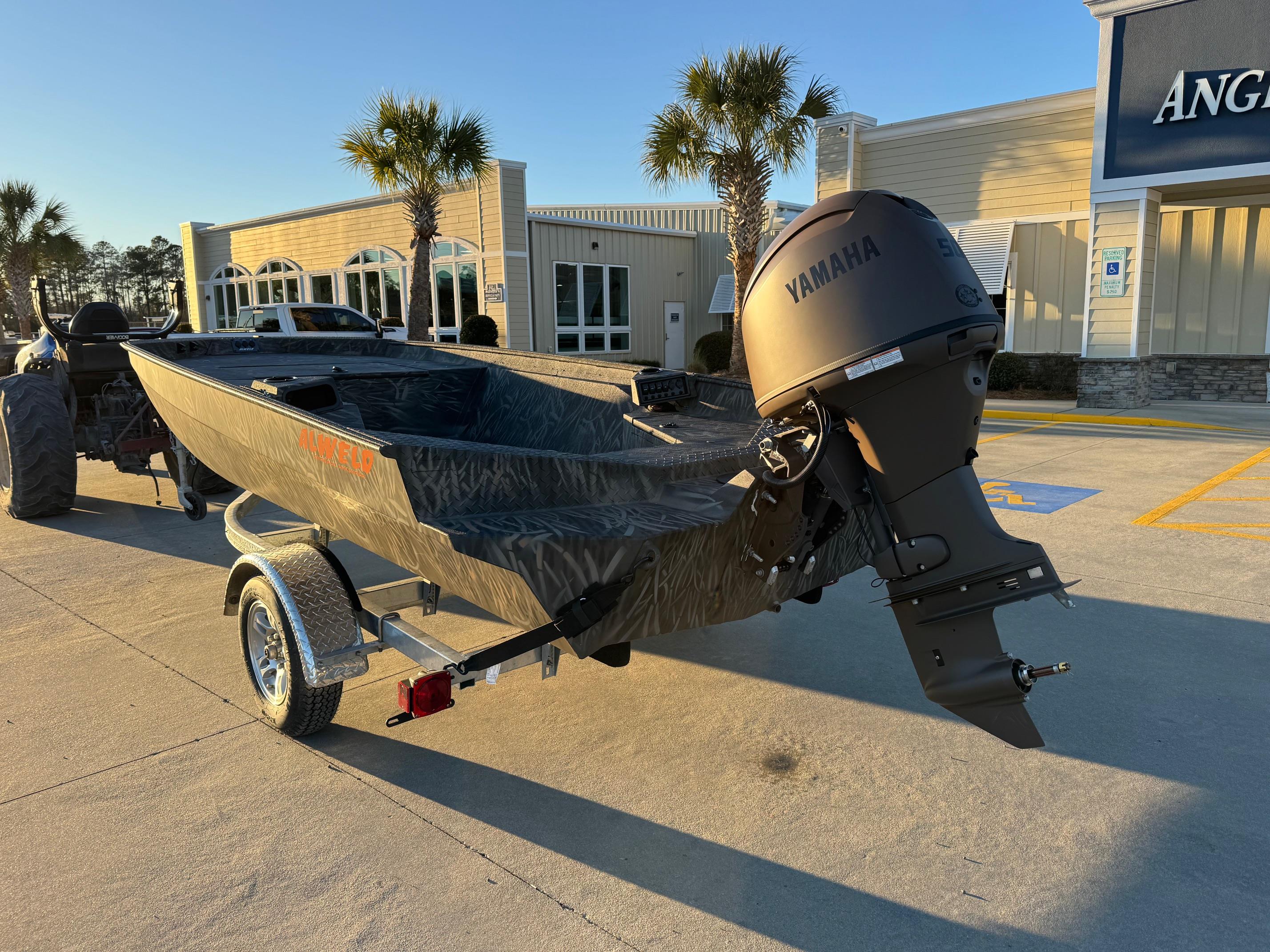 This 2026 Alweld 1652 Invader Jon boat is powered by a Matte Brown Yamaha 50HP tiller. The Invader series is built for serious duck hunting. It's sleek and rugged construction will ensure you get to your favorite spots fast and in one piece. The Invader series boats come standard with rear pod seating with storage underneath and a trolling motor bracket with plug. Come see this boat at our Supply, NC location or call 910-755-7900 for more information.