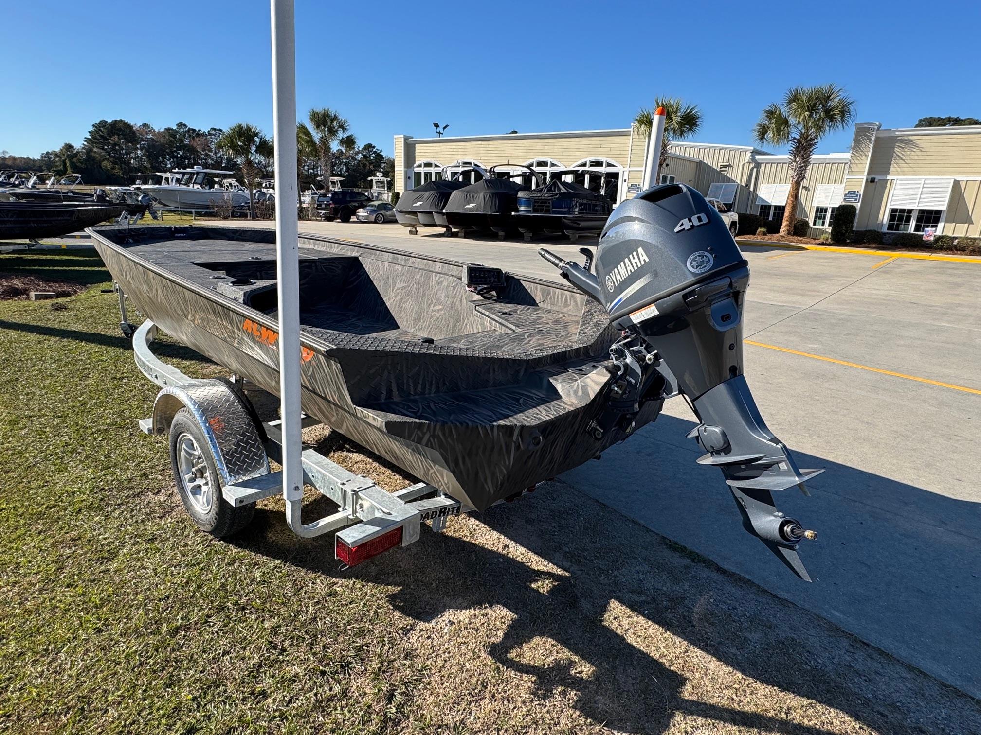 This 2026 Alweld 1652 Invader Jon boat is powered by a Yamaha 40HP tiller. The Invader series is built for serious duck hunting. It's sleek and rugged construction will ensure you get to your favorite spots fast and in one piece. The Invader series boats come standard with rear pod seating with storage underneath and a trolling motor bracket with plug. Come see this boat at our Clayton, NC or Supply, NC location or call 919-585-7900 for more information.