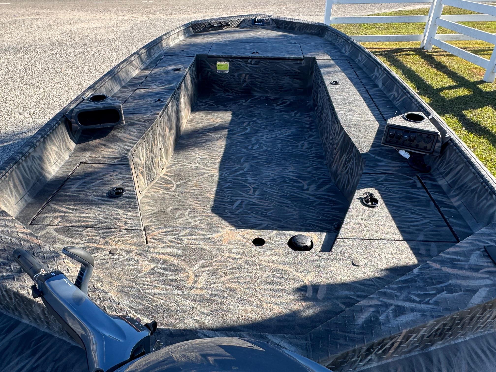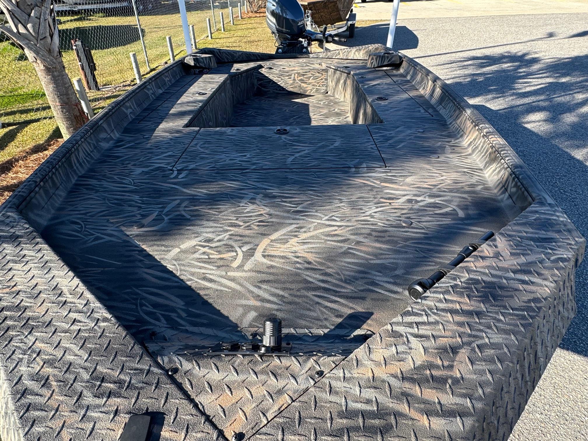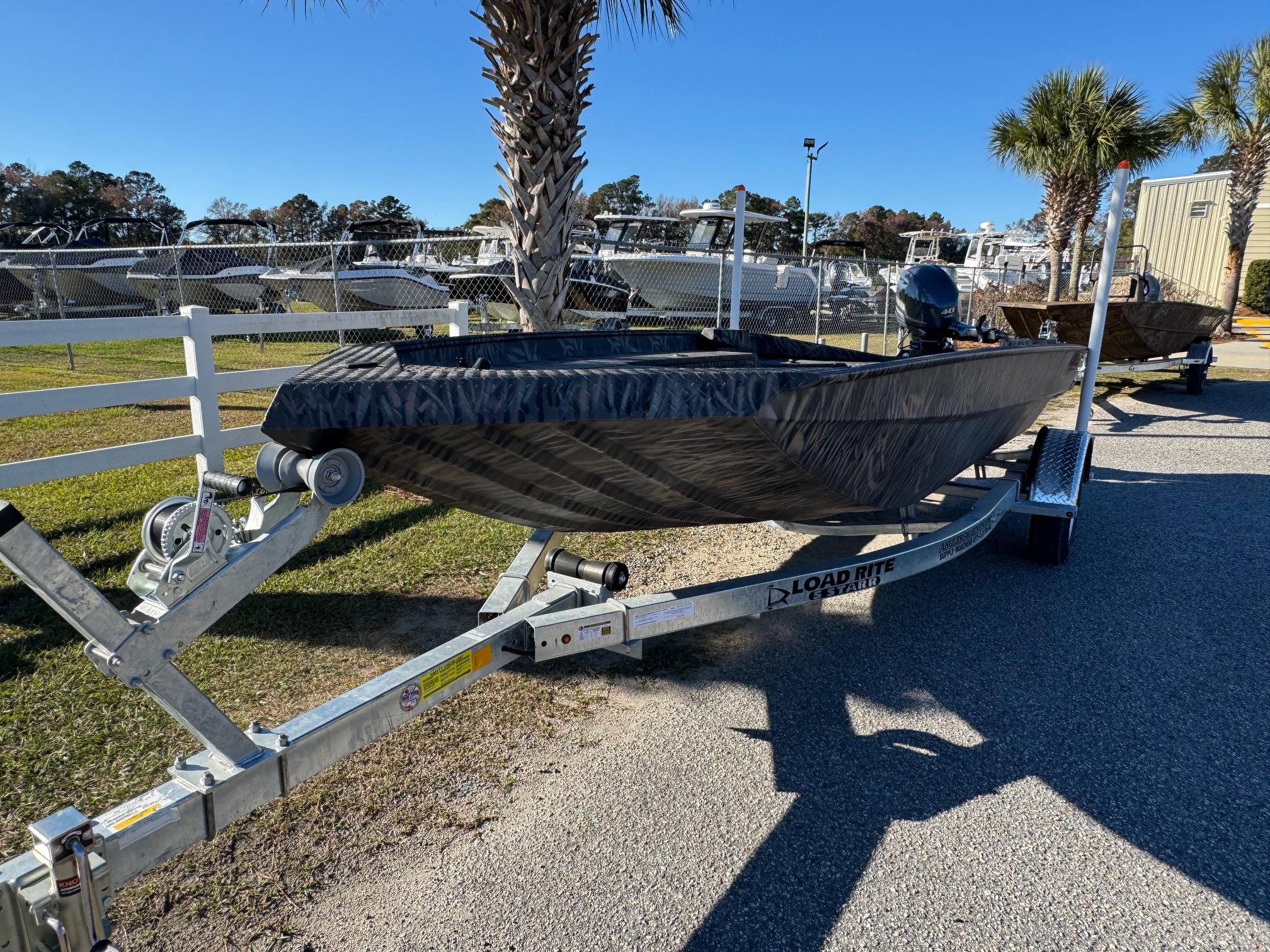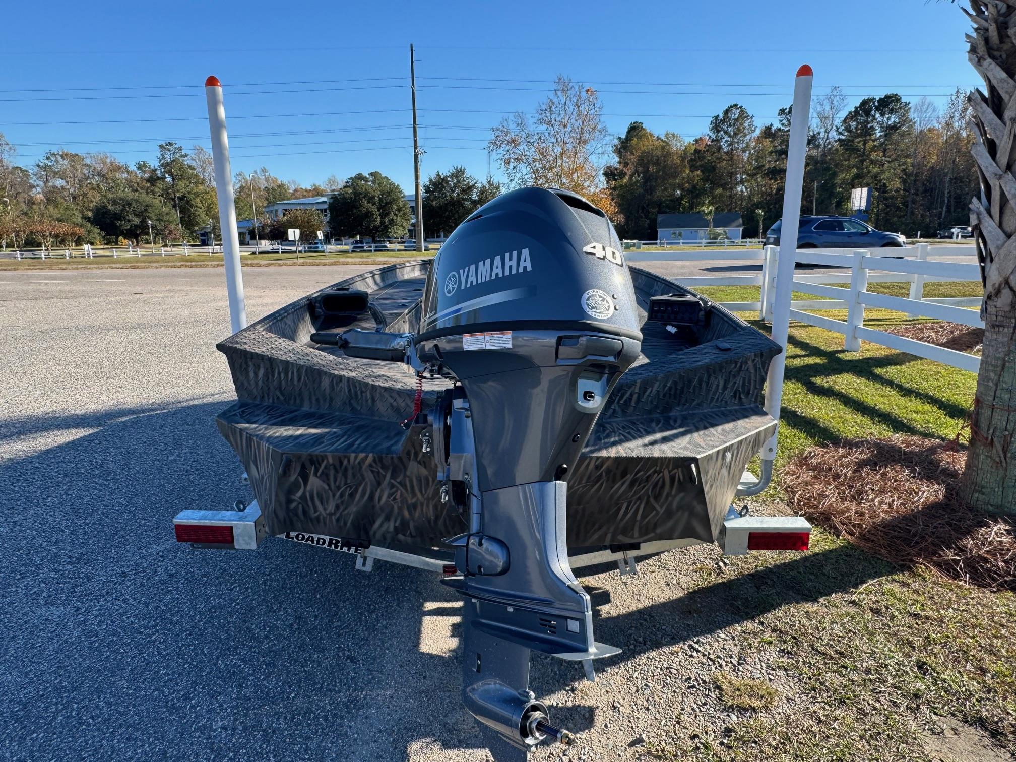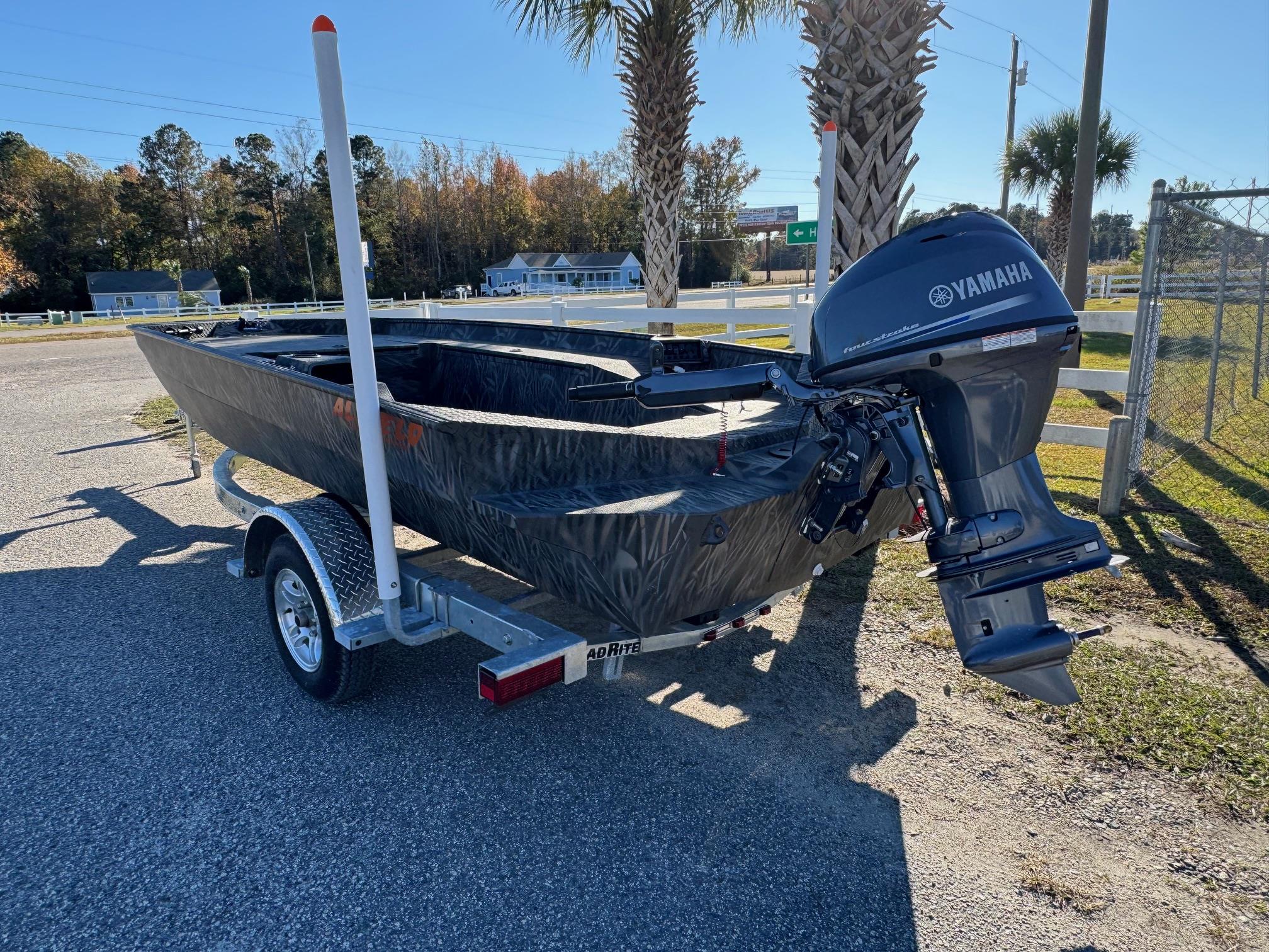 This 2026 Alweld 1756 Invader Jon boat is powered with a Yamaha 40HP tiller. The new Invader series is built for serious duck hunting. It's sleek and rugged construction will ensure you get to your favorite spots fast and in one piece. The Invader series boats come standard with rear pod seating with storage underneath and a trolling motor bracket with plug. Come see this boat at our Moorehead City, NC location or call 252-773-0099 for more information.