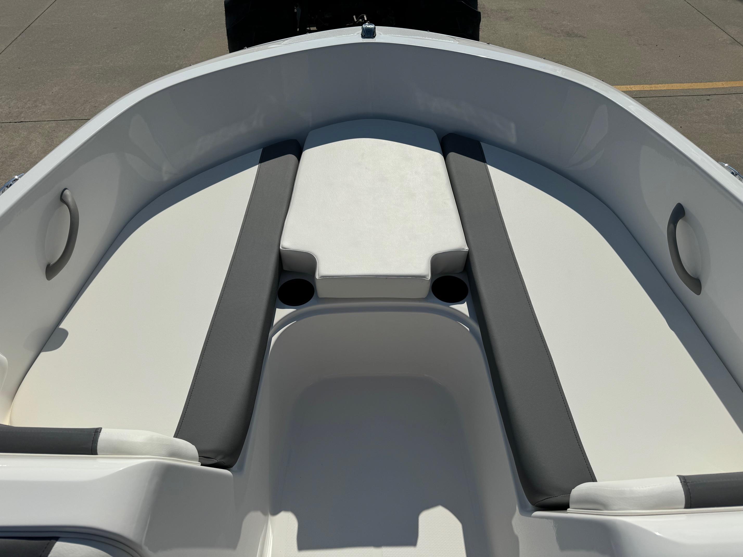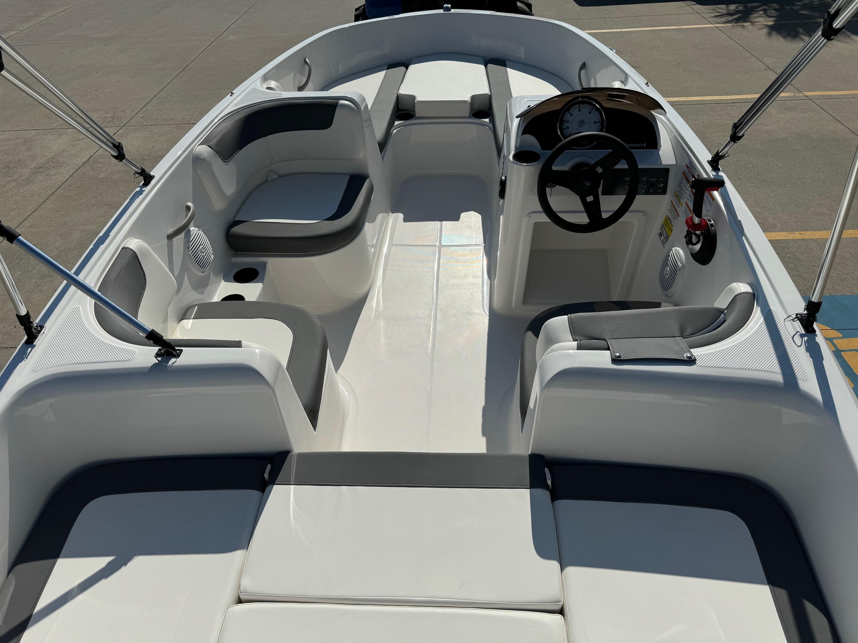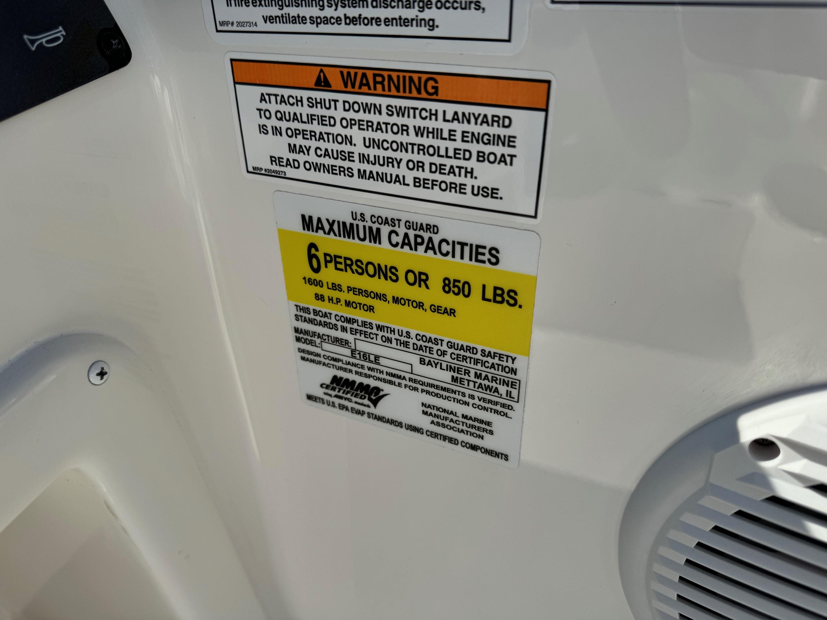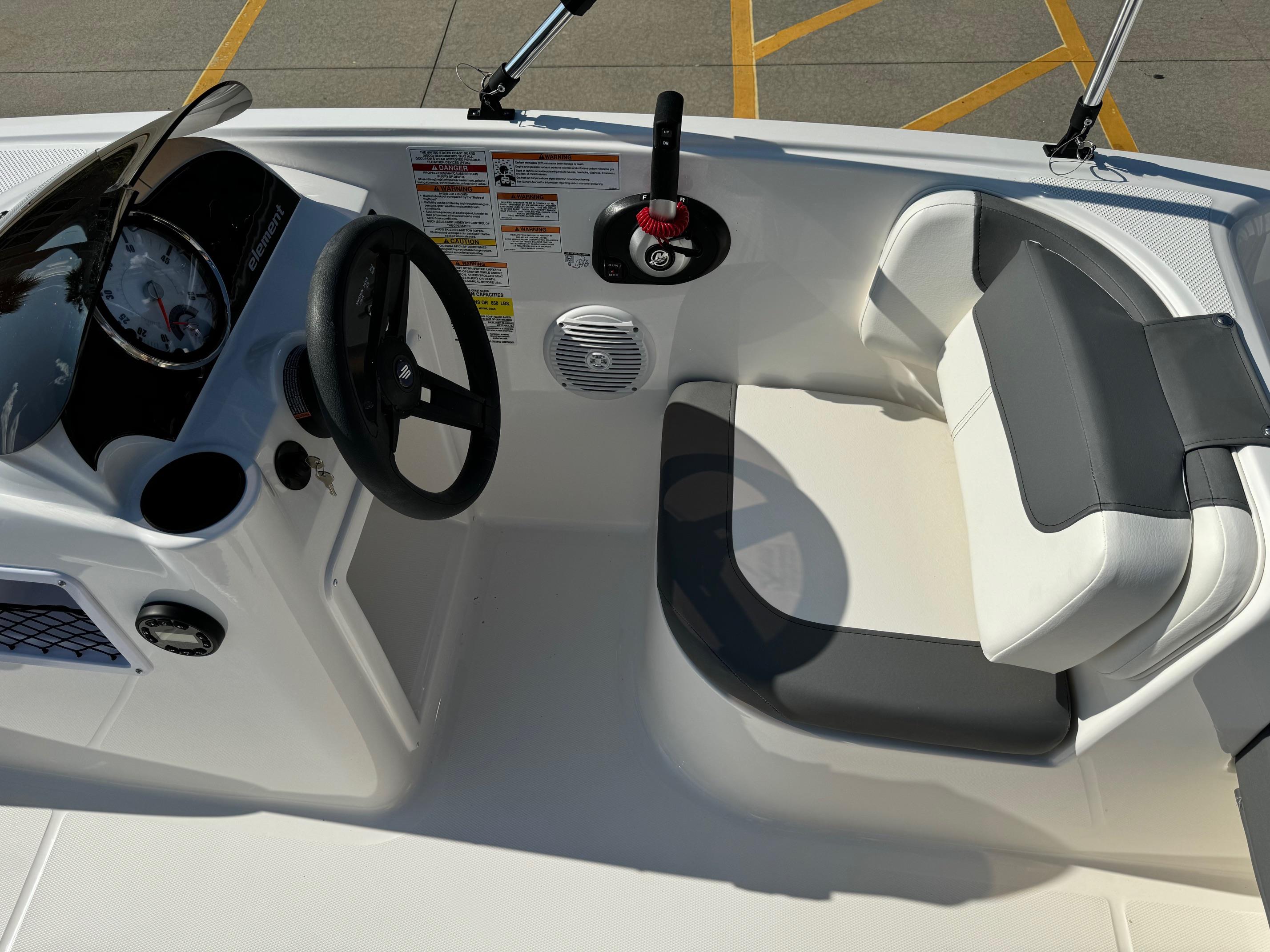 This 2026 Bayliner Element E16 deck boat is powered by a Mercury 75. The Element E16 combines a stunningly affordable price, familiar automotive-style handling, and class-leading stability and safety features. Plus, it has the power and comfort features to get you to the fun spots and enjoy every minute. This boat has storage space under all the cushions and comes with a Jensen bluetooth radio with 2 speakers. Come see this boat at our Morehead City, NC location or call 252-773-0099 for more information.