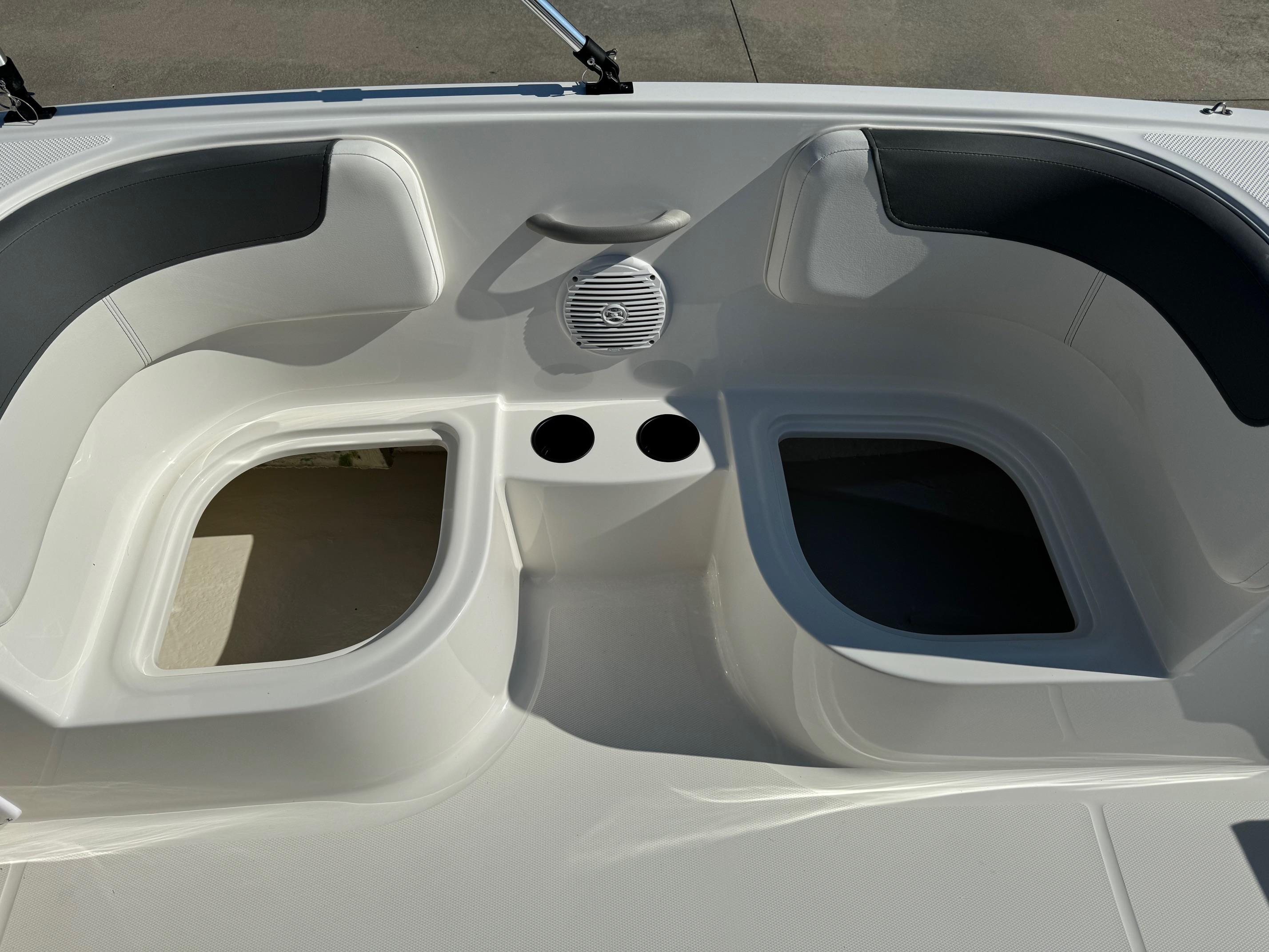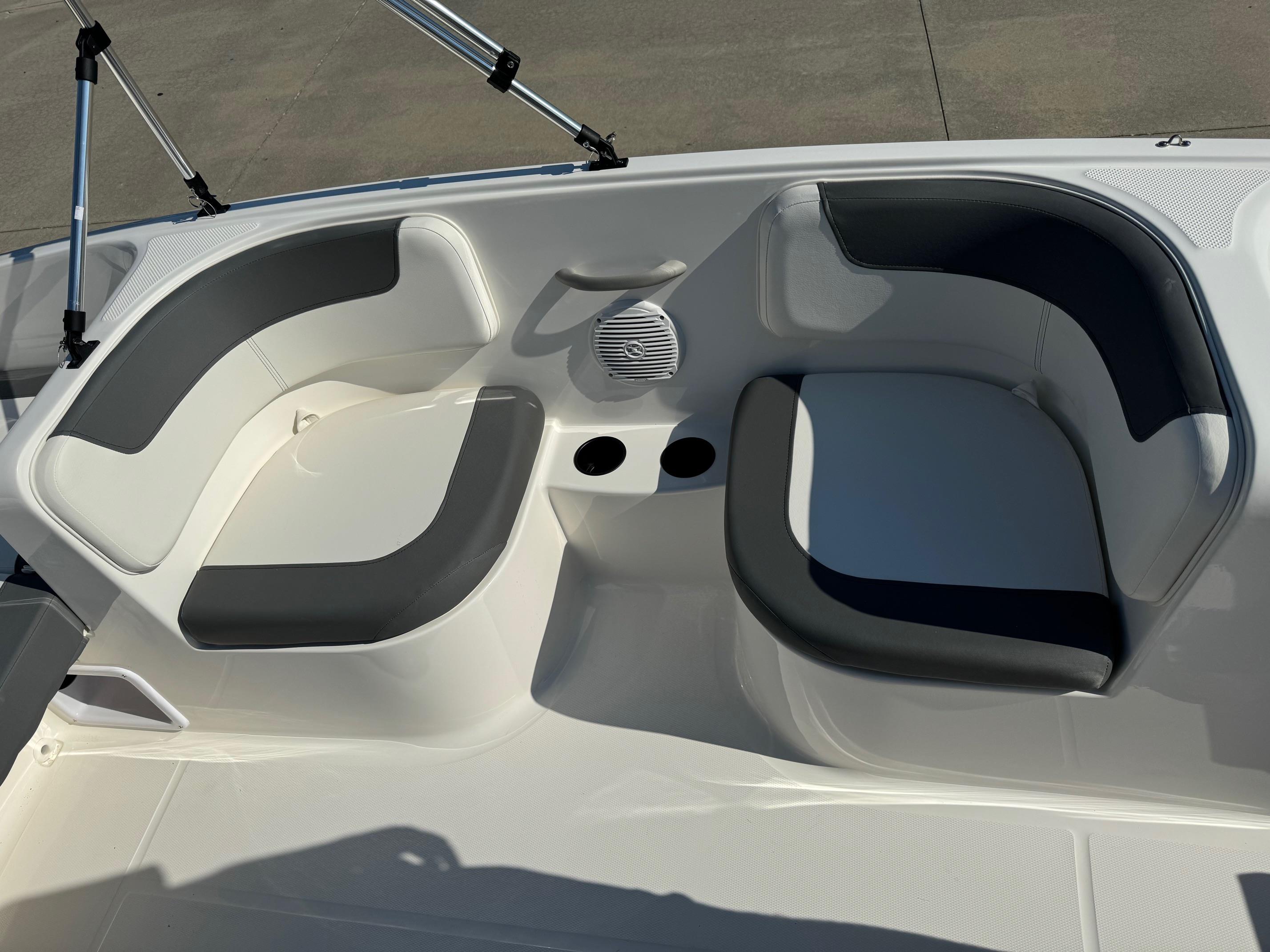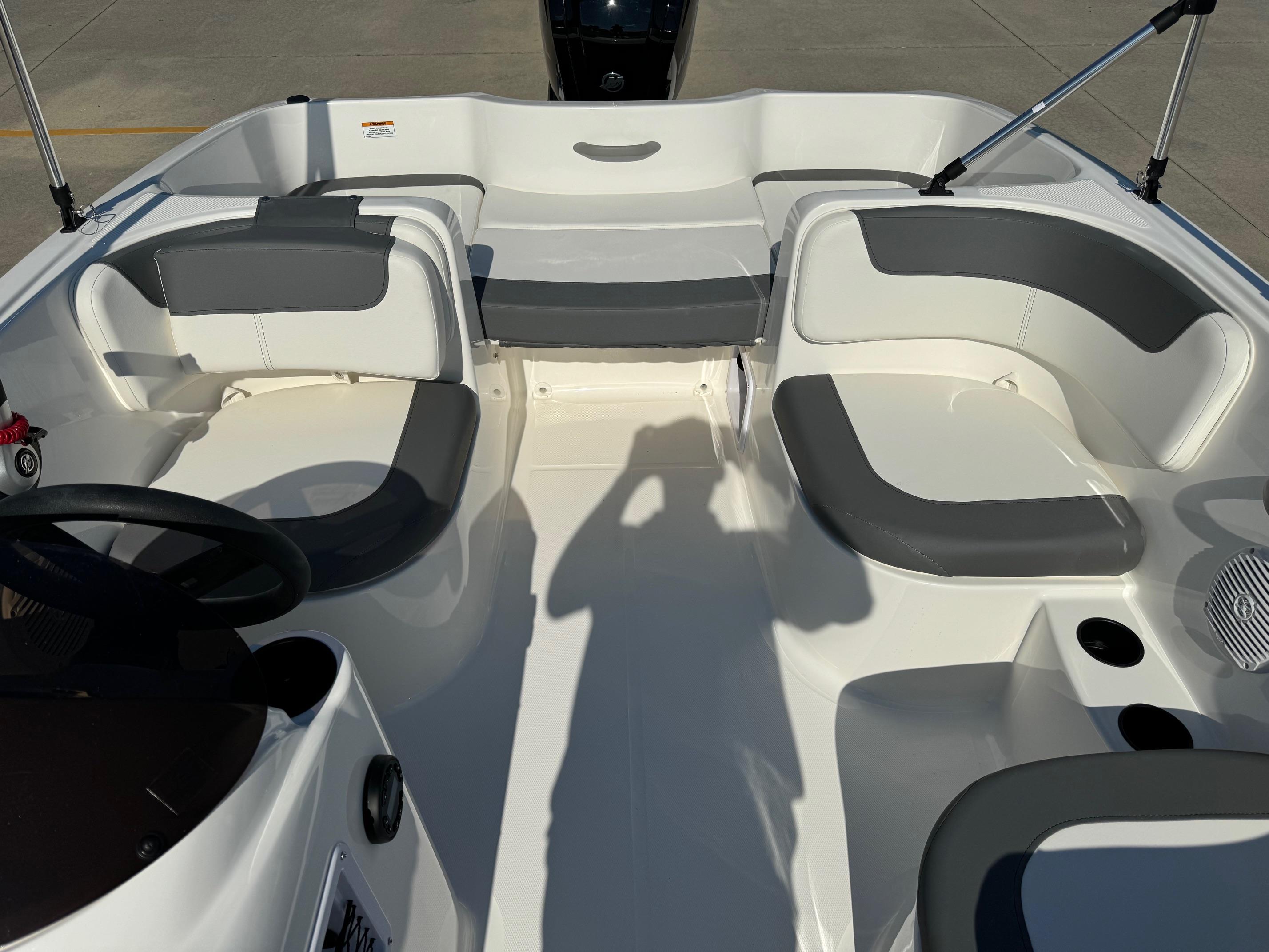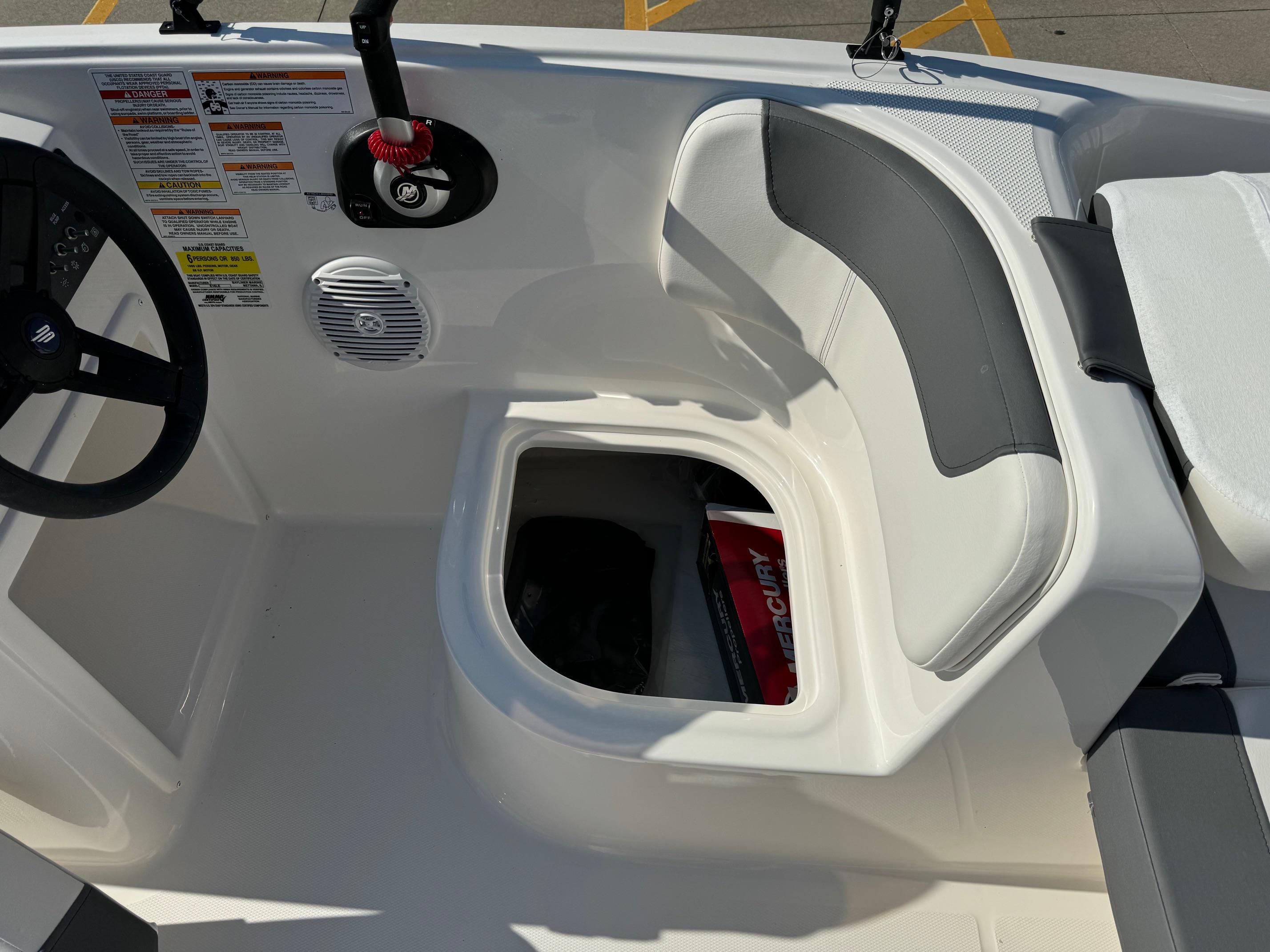 This 2026 Bayliner Element E16 deck boat is powered by a Mercury 75. The Element E16 combines a stunningly affordable price, familiar automotive-style handling, and class-leading stability and safety features. Plus, it has the power and comfort features to get you to the fun spots and enjoy every minute. This boat has storage space under all the cushions and comes with a Jensen bluetooth radio with 2 speakers. Come see this boat at our Morehead City, NC location or call 252-773-0099 for more information.