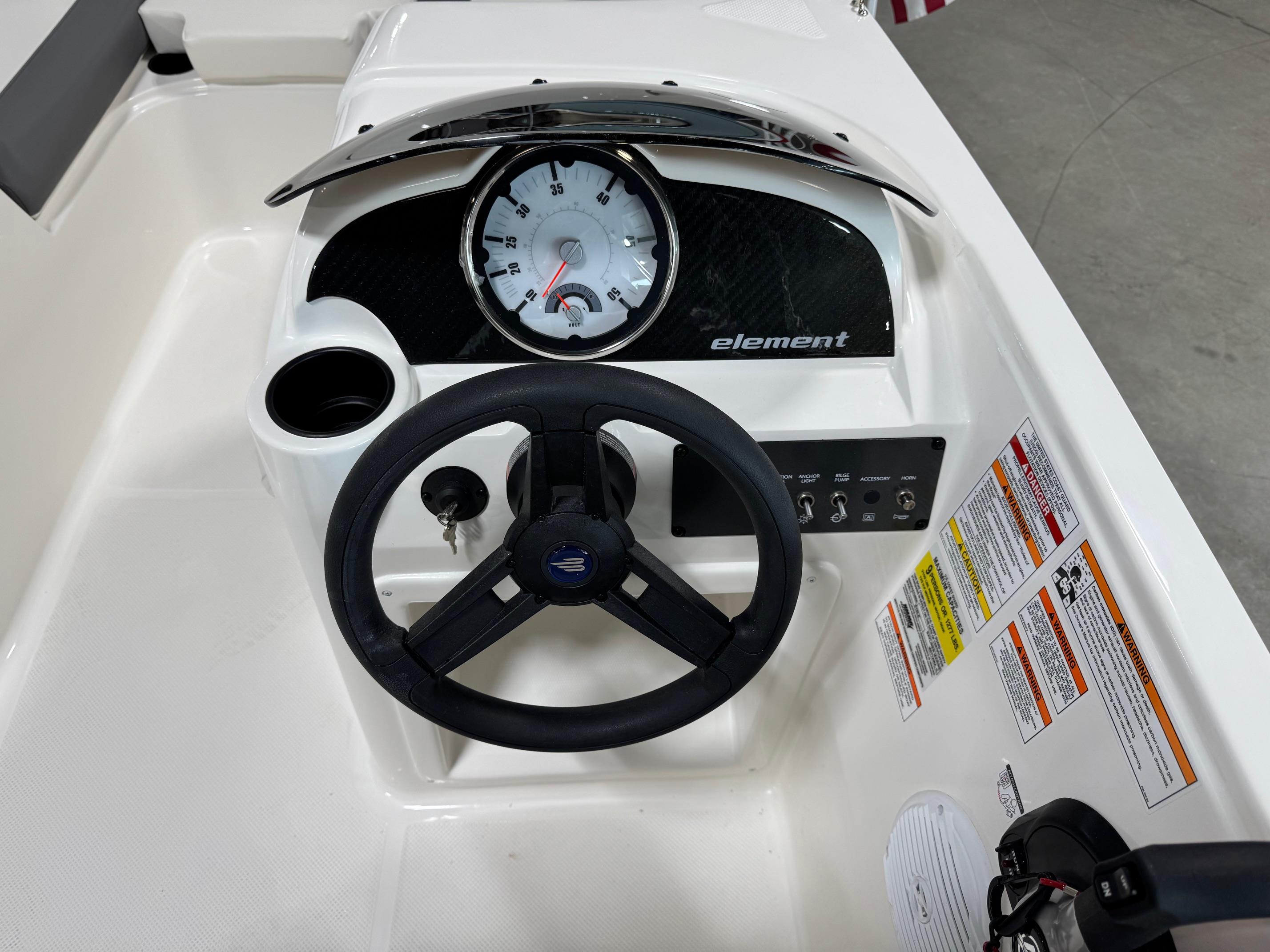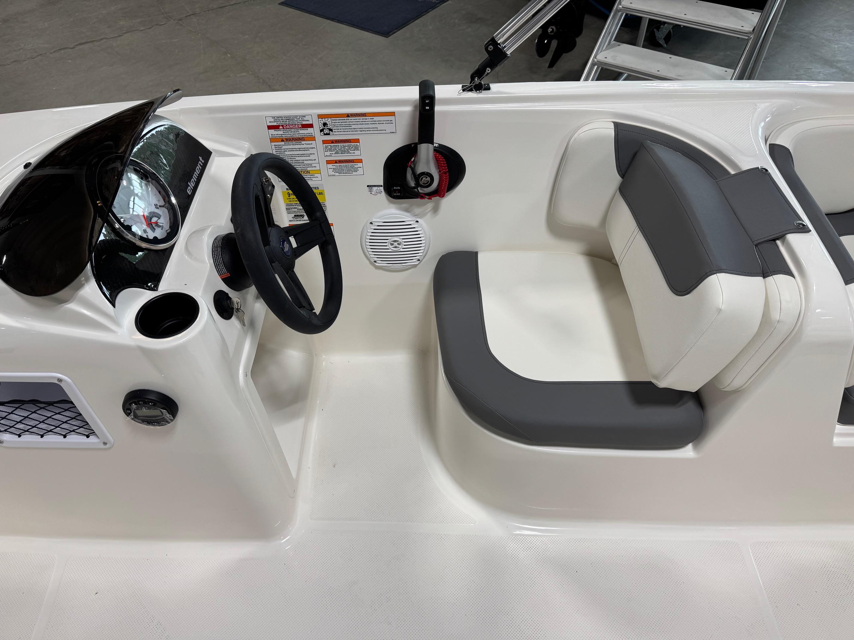 This 2026 Bayliner Element E18 deck boat is powered by a Mercury 115. The Element E18 combines a stunningly affordable price, familiar automotive-style handling, and class-leading stability and safety features. Plus, it has the power and comfort features to get you to the fun spots and enjoy every minute. This boat has storage space under all the cushions and comes with a Jensen bluetooth radio with 2 speakers. Come see this boat at our Supply, NC location or call 910-755-7900 for more information.