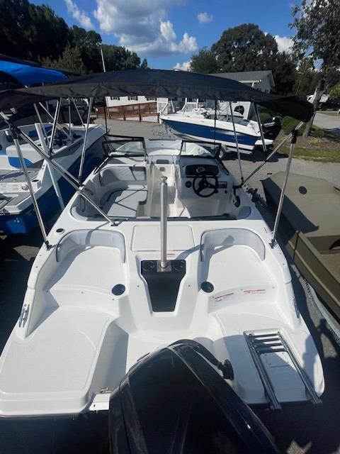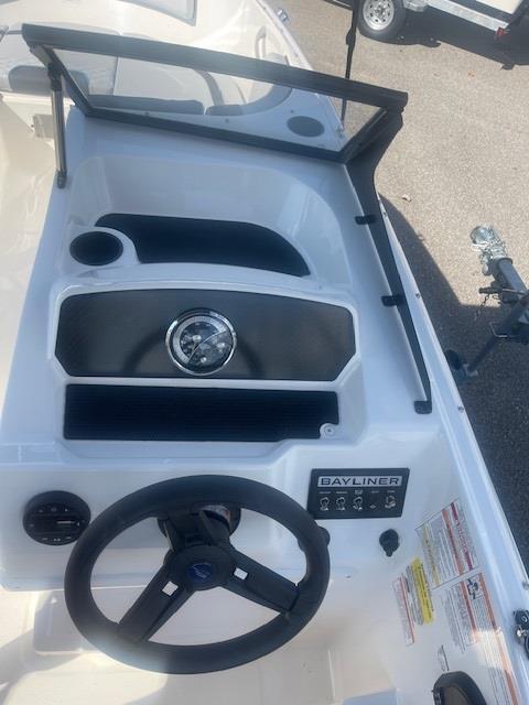 This 2026 Bayliner Element M17 deck boat is powered by a Mercury 90. It's a versatile 17-footer with comfortable seating and storage throughout. Standard features include a USB/12 volt charging ports, insulated rear cooler compartment, rear facing seats with cup holders, and more! Come see this boat at our Clayton, NC location or call 919-585-7900.