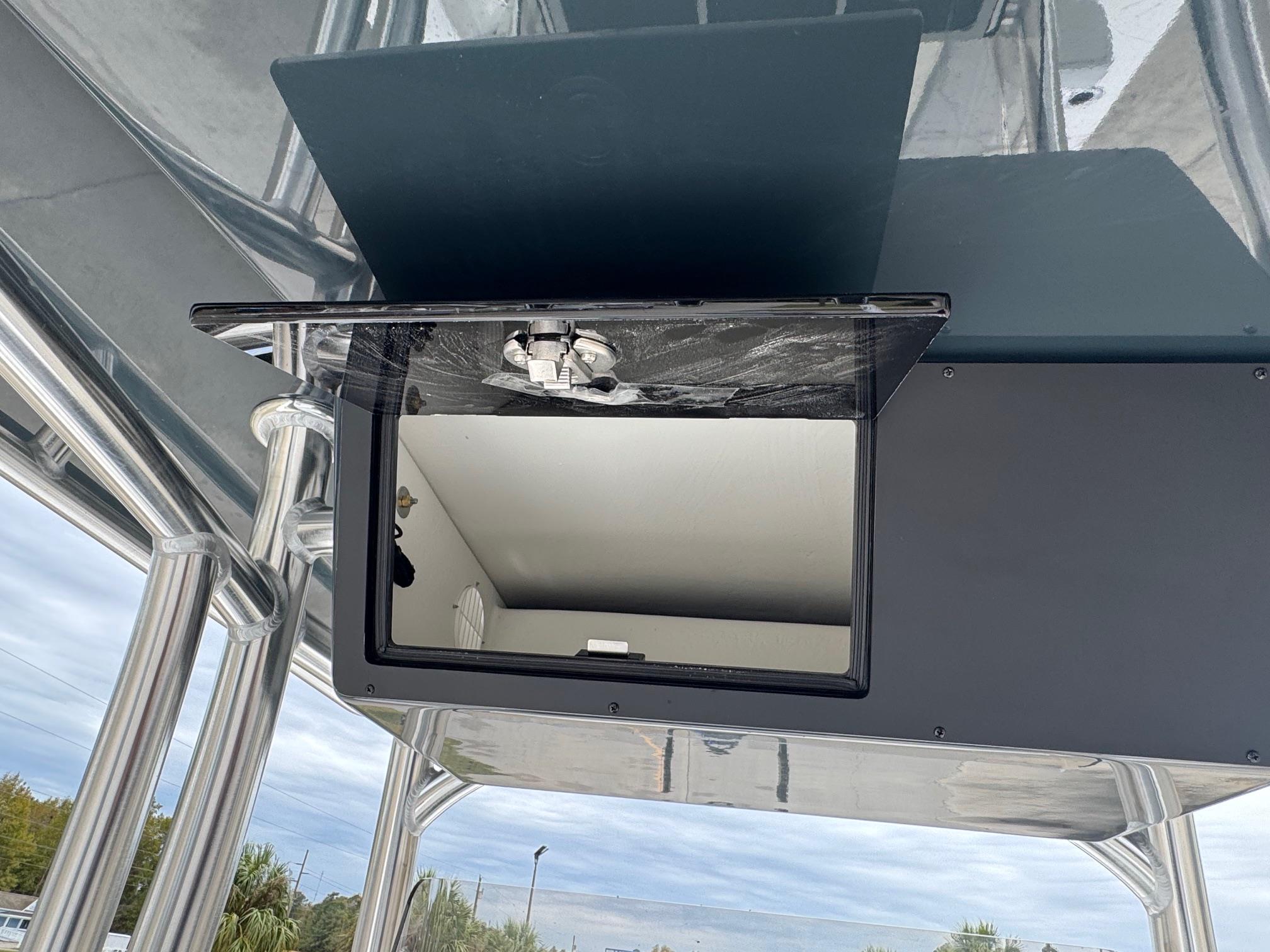 -Deluxe fiberglass hard top with finished underside, rod holders, forward & aft speakers, electronics box, and 2 Lumitec LED spreader lights