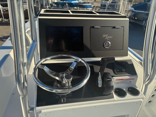 This 2026 Bay Rider Skiff 2260 center console is powered by a Yamaha F150XC. It's the best riding and best handling boat in it's class due to the unique design from the bottom up. There are 3 strategically placed ribs on the bottom of the boat that help it turn like a V-hull boat, instead of sliding like typical skiffs. This boat comes standard with a Yamaha CL5 digital gauge, a recirculating livewell, trolling motor pre-wiring, and much more! Come see this boat at our Morehead City, NC location or call 252-773-0099 for more information.