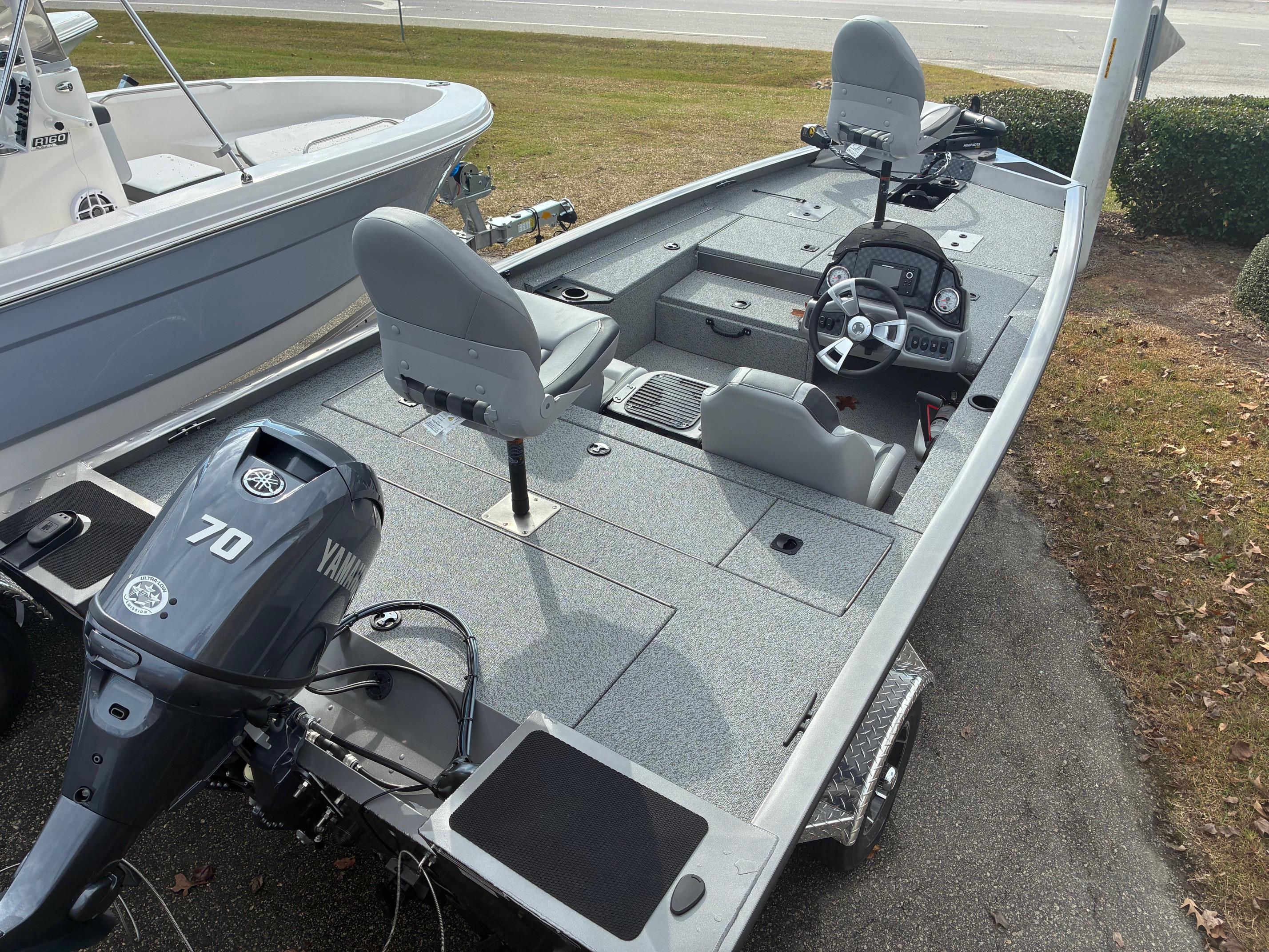 This 2026 G3 1710 Sportsman is powered by a Yamaha F70LB 70Hp outboard. It comes standard with two livewells, rod storage on the port side, step to front deck, and more! It is also equipped with a cooler seat in front of the console with cooler compartment underneath. This boat is located at our Clayton, NC location and for more information give us a call at 919-585-7900.