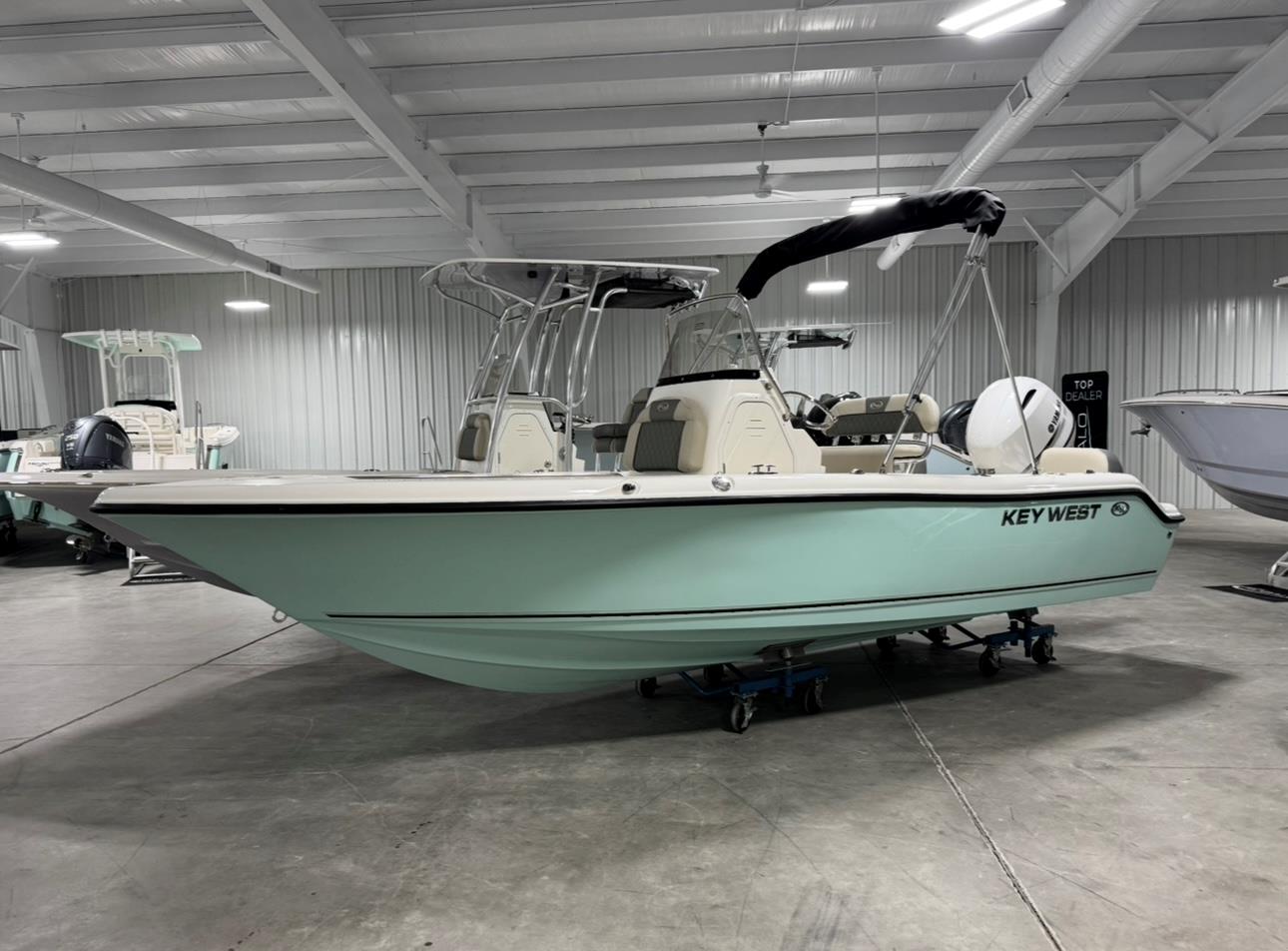 This 2026 Key West 189 FS center console is powered by a white Yamaha F115XB. It's the smallest in the Family Sportsman fleet, but this boat comes loaded with standard features including a porta pottie room inside the console, full transom bench seating with storage and a livewell underneath, a molded in swim platform with a ladder, and more! Come see this boat in our showroom at our Supply, NC location or call 910-755-7900 for more information.