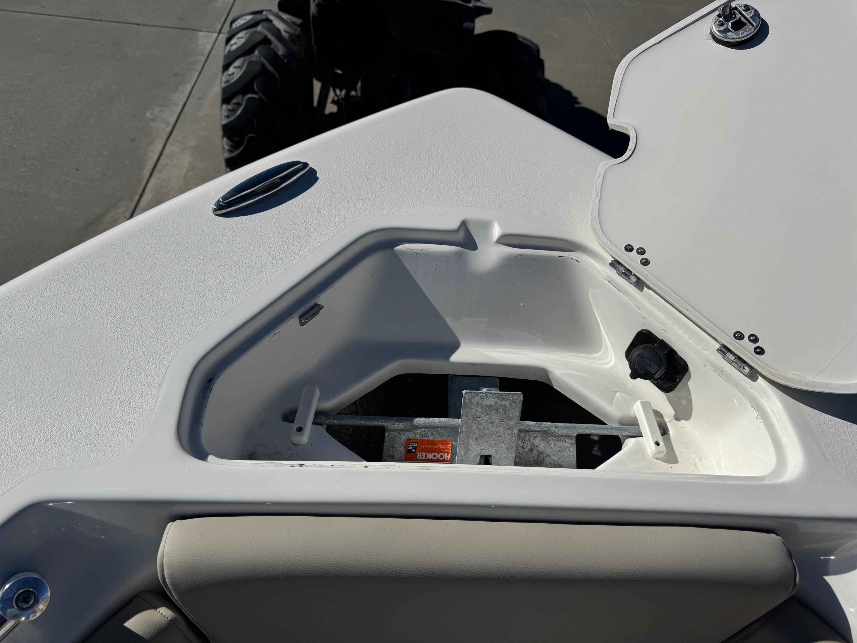 -White powder coated hard top with LED spreader lights/Rod holders/Cargo net