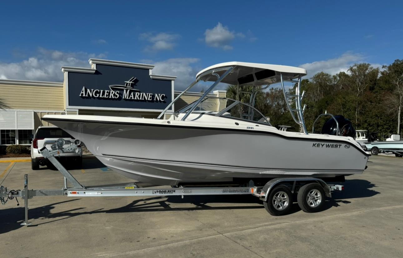 This 2026 Key West 239 DFS dual console is powered by a Yamaha VF250 SHO. It's the biggest dual console/bow rider model in the family sportsman fleet, with lots of versatility and amenities for the whole family. This boat has comfortable seating for the whole family, with bow seating and wrap around bench seating in the cockpit. When it's time to fish, you will enjoy the generous rod storage throughout the boat and access to a rear livewell. Come see this boat at our Morehead City, NC location or call 252-773-0099 for more information.