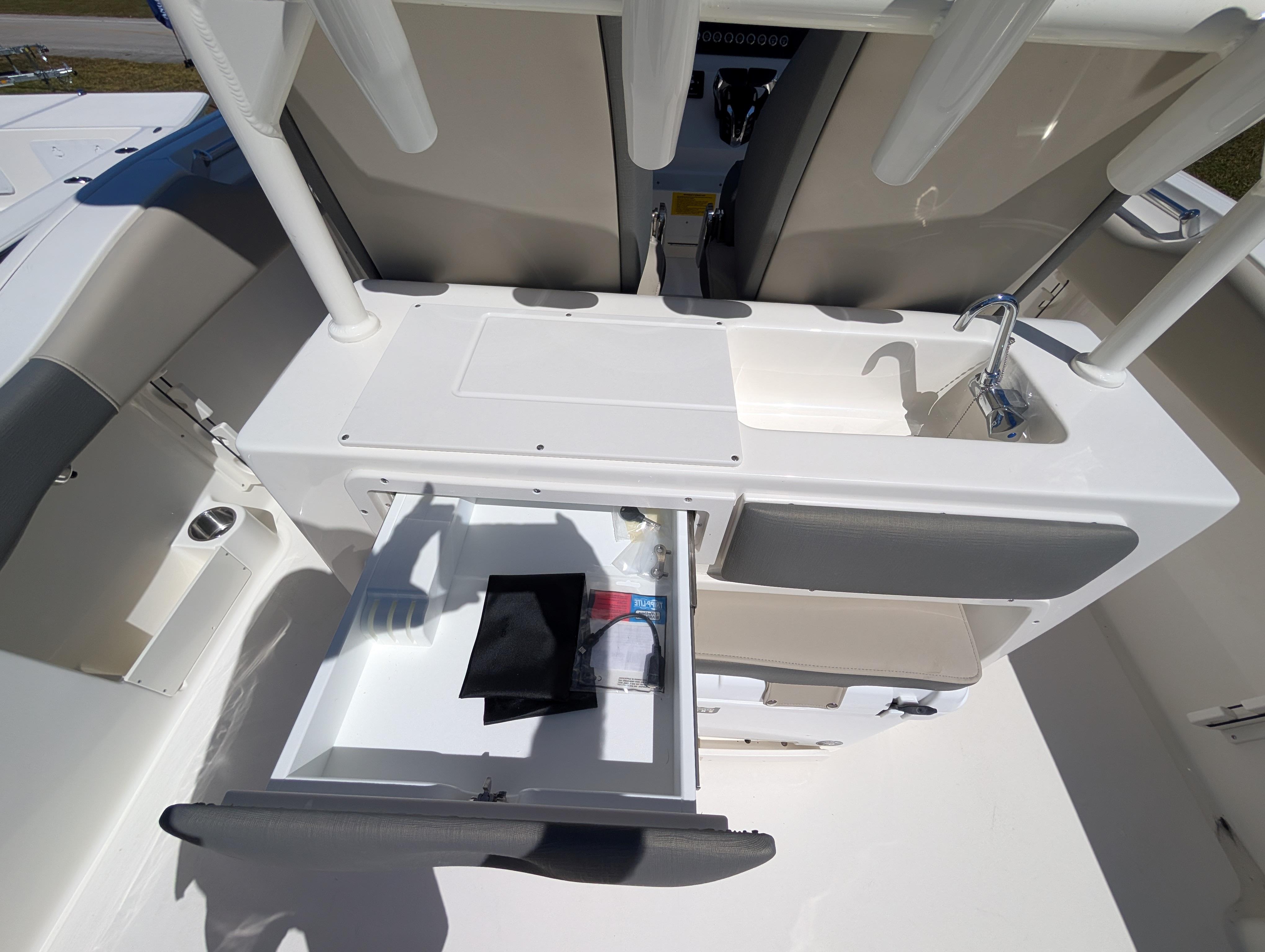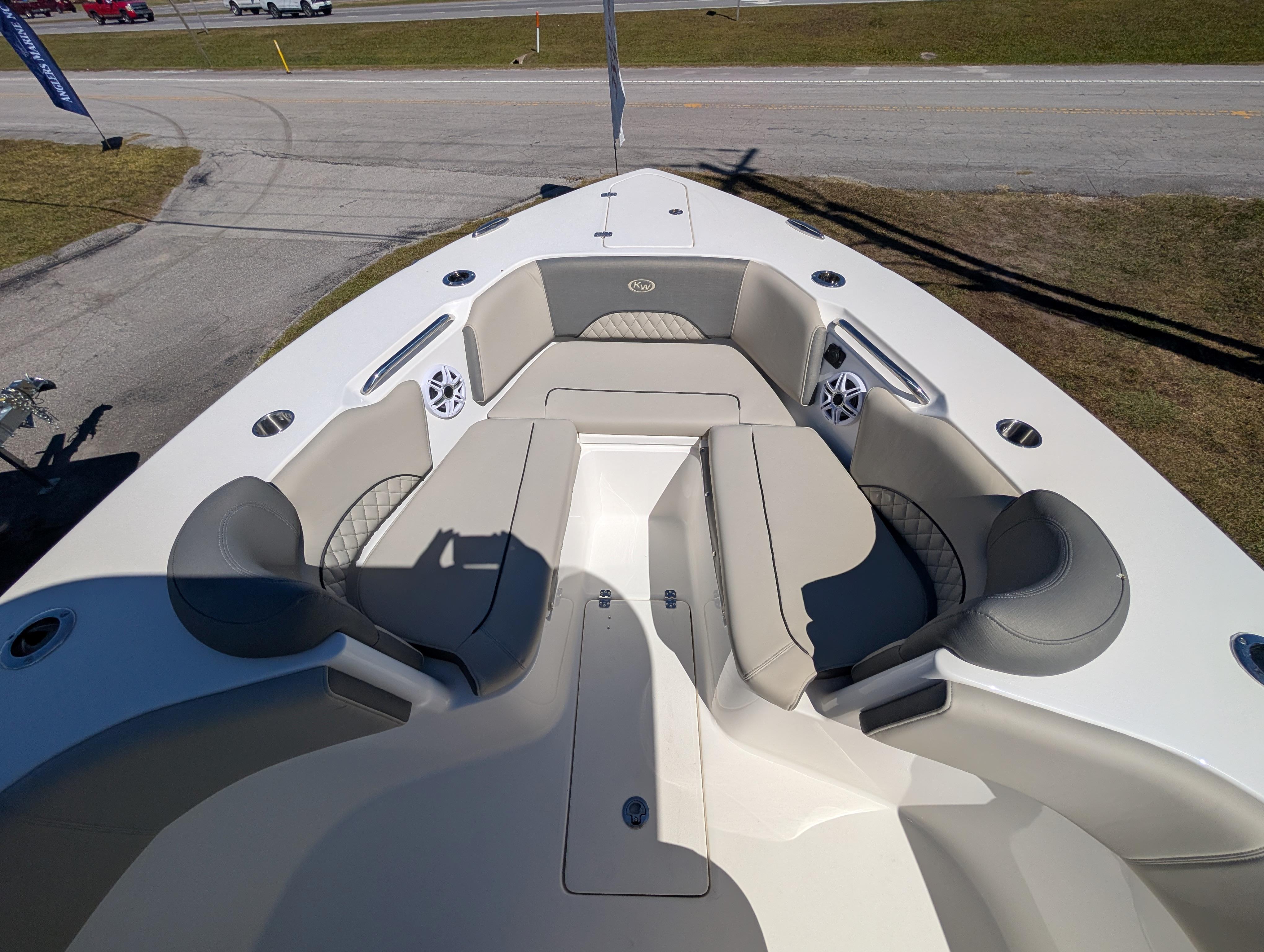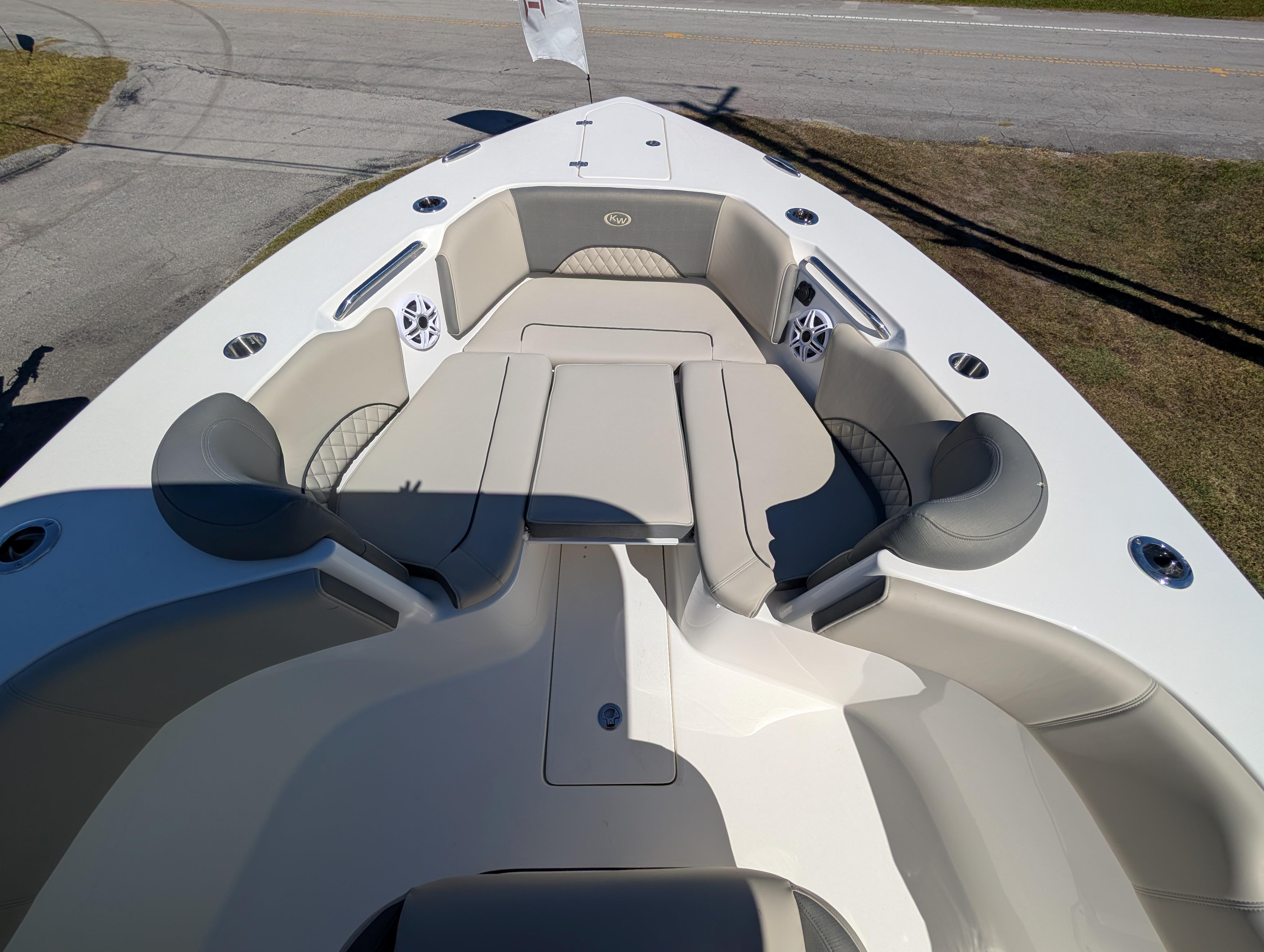 Equipped with twin Yamaha F200XSA's, this 2026 Key West 263 FS is designed for both offshore fishing and family fun, featuring a "no-wood, no-rot" construction, standard twin livewells, a macerated fish box, a side boarding door with a hidden ladder, and comfortable forward seating with molded backrests. It comes with a standard hardtop, and the Seakeeper Ride system for improved stability, offering a blend of performance, comfort, and safety for active families. Come see this boat at our Morehead City, NC location or call 252-773-0099 for more information.