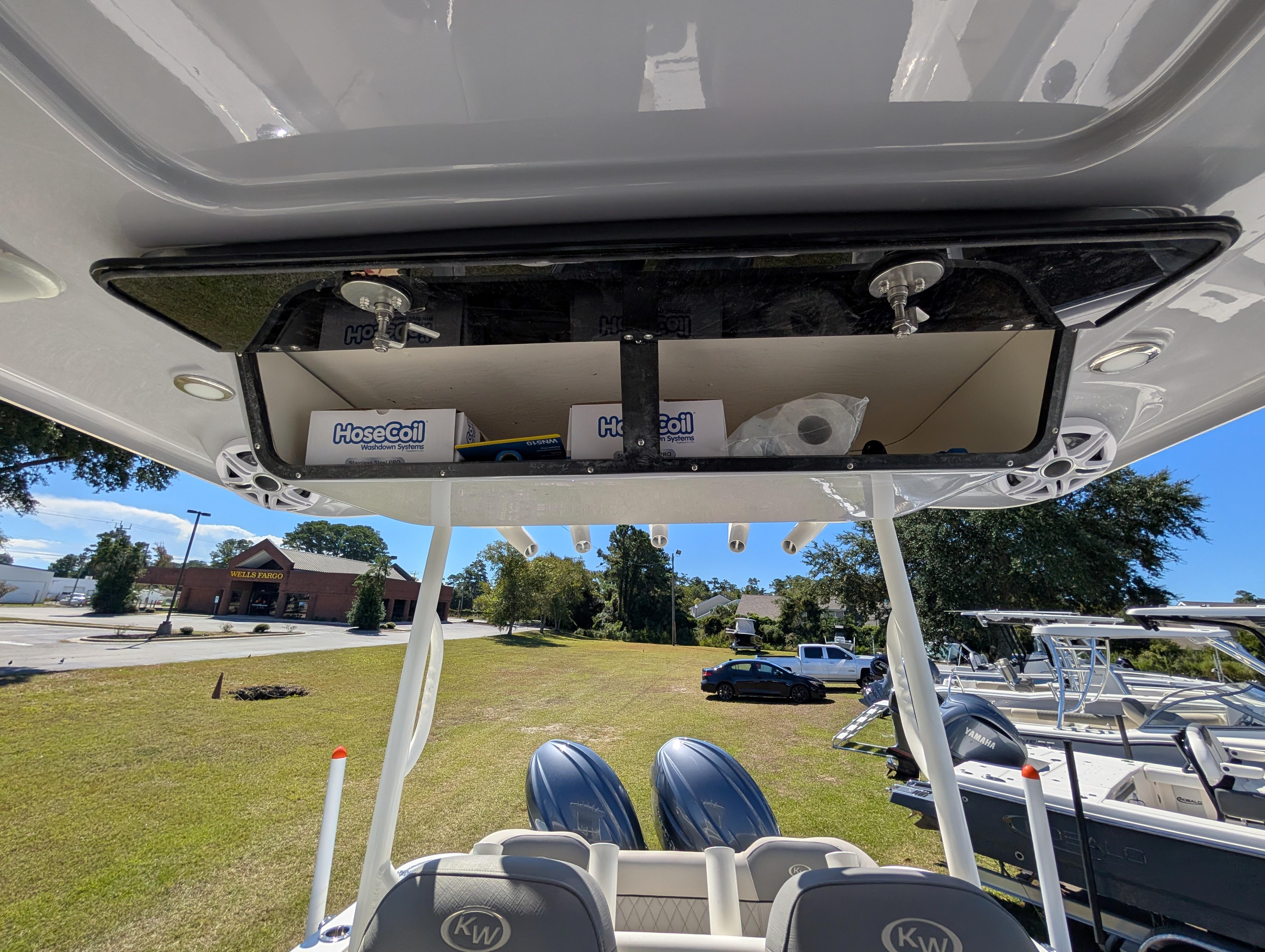 -White Powder coated hard top with rod holders/2 electronics boxes/LED lights