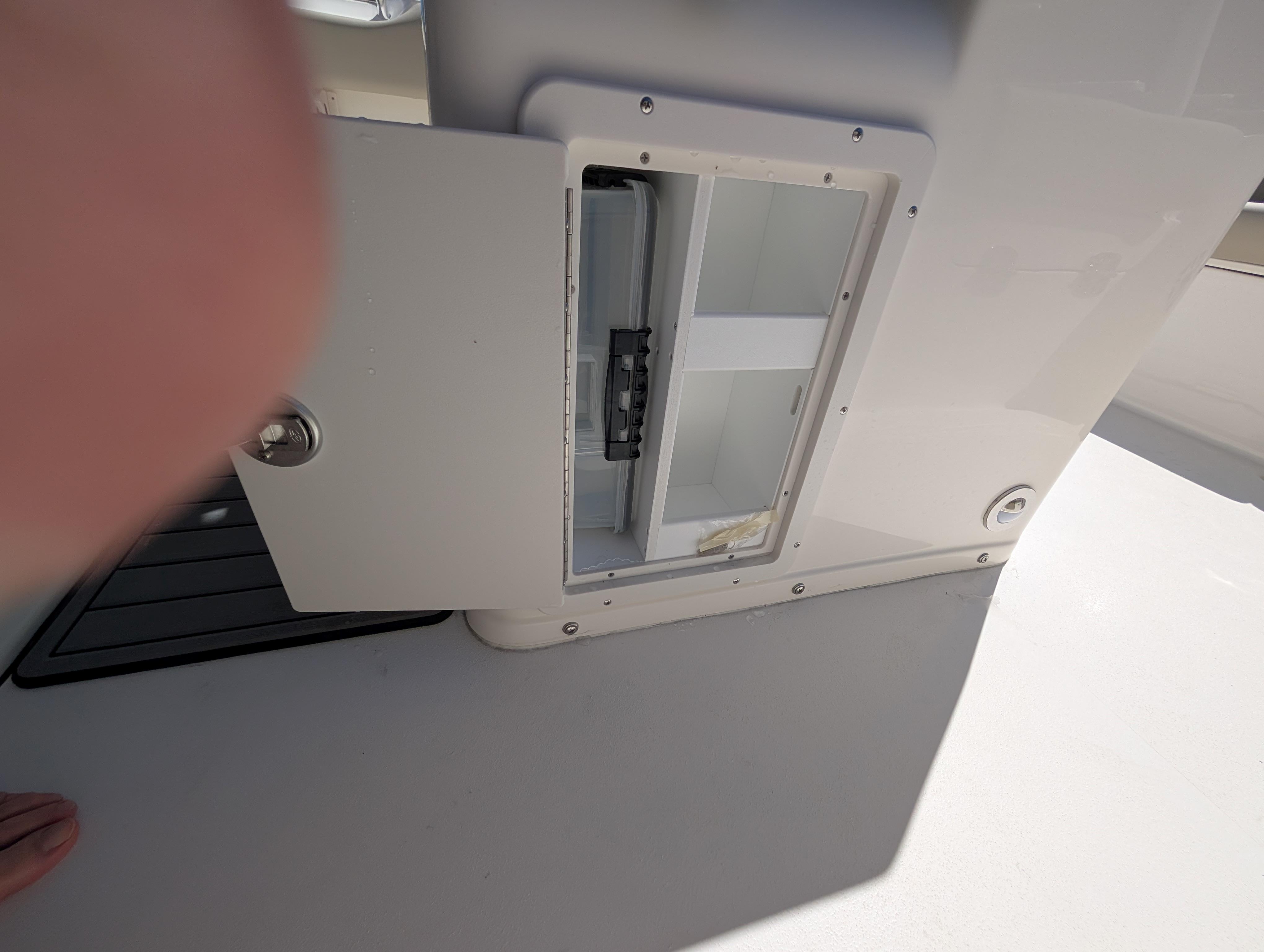 -White powder coated Convenience center leaning post with bait prep/sink station