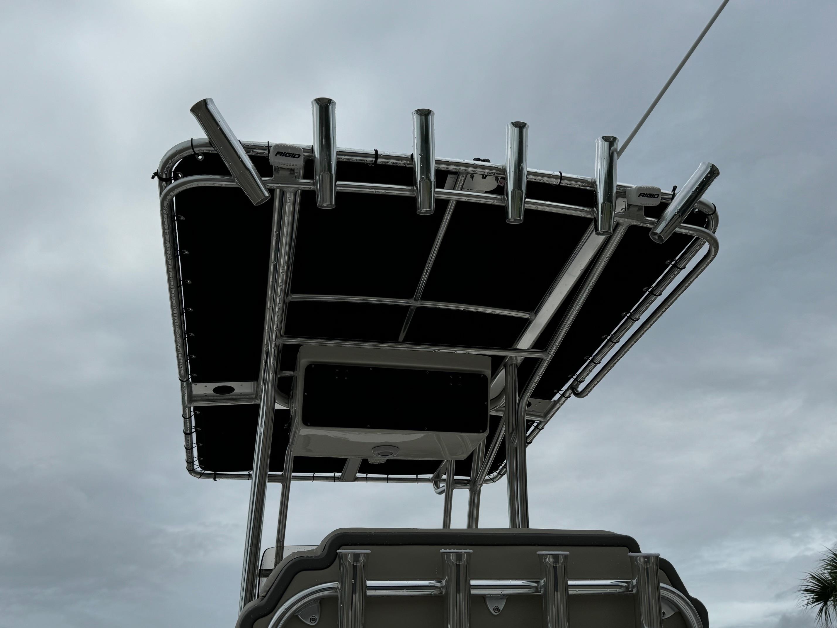 -Hard Top with LED spreader lights, electronics box, cargo net, and rod holders