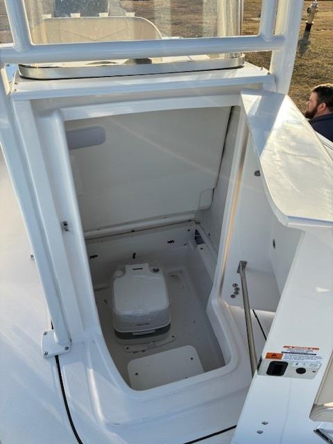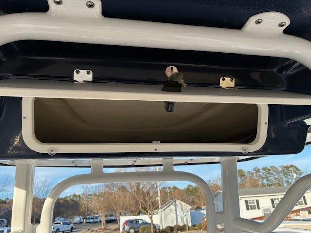 -White powder coated hard top with LED spreader lights, rod holders, electronics box