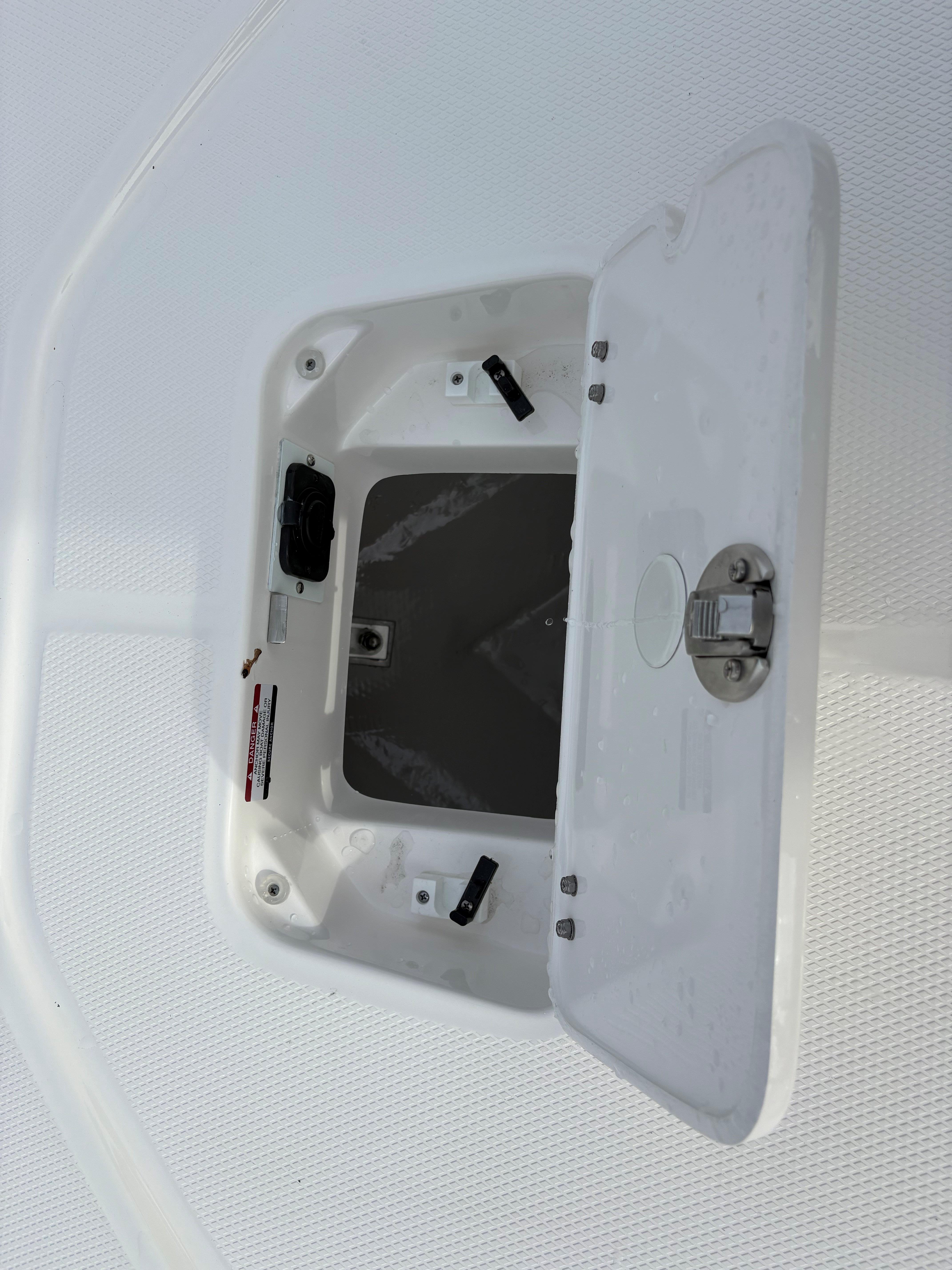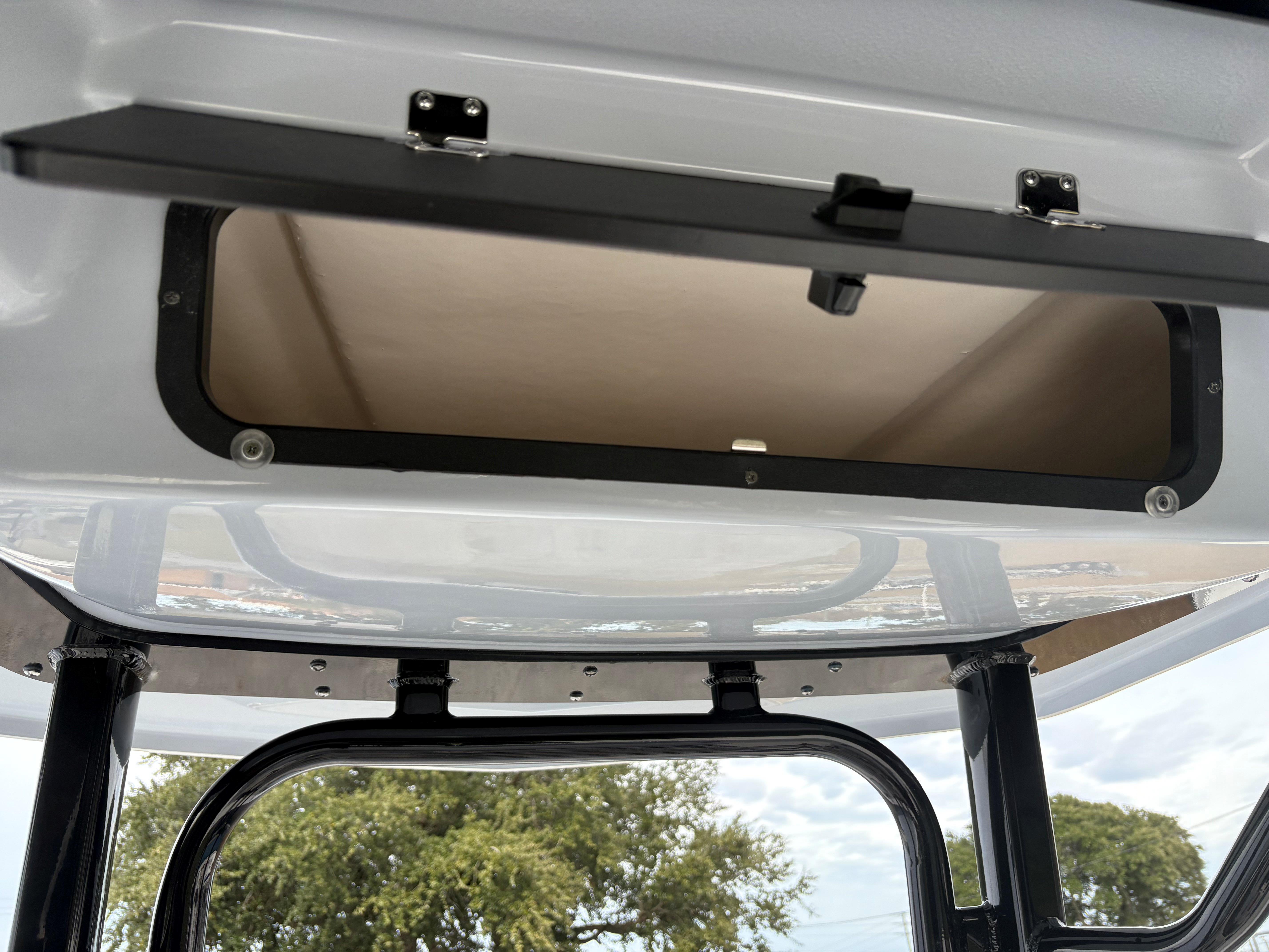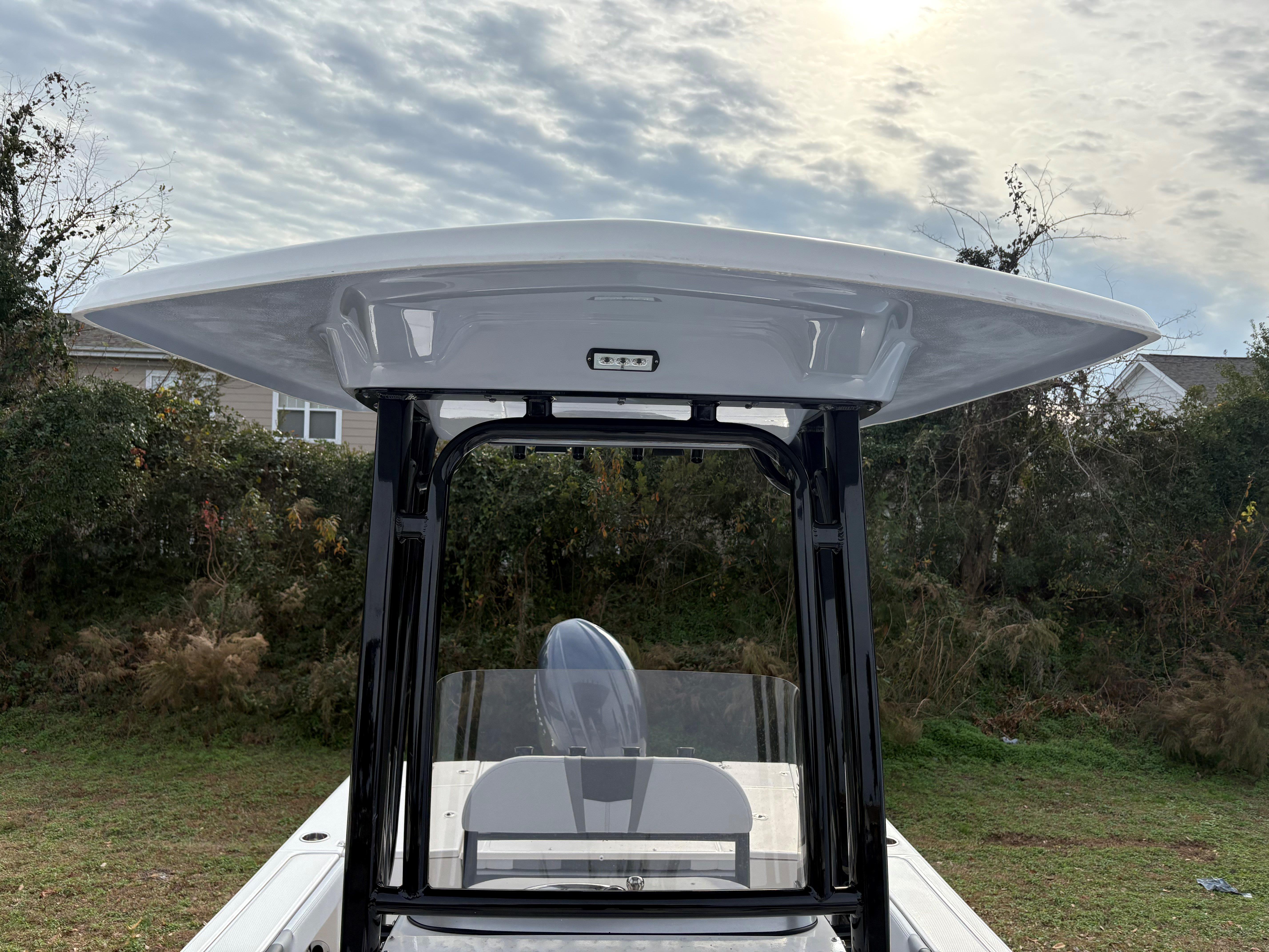 -Black Powder coated hard top with LED spreader lights, rod holders, and electronics box