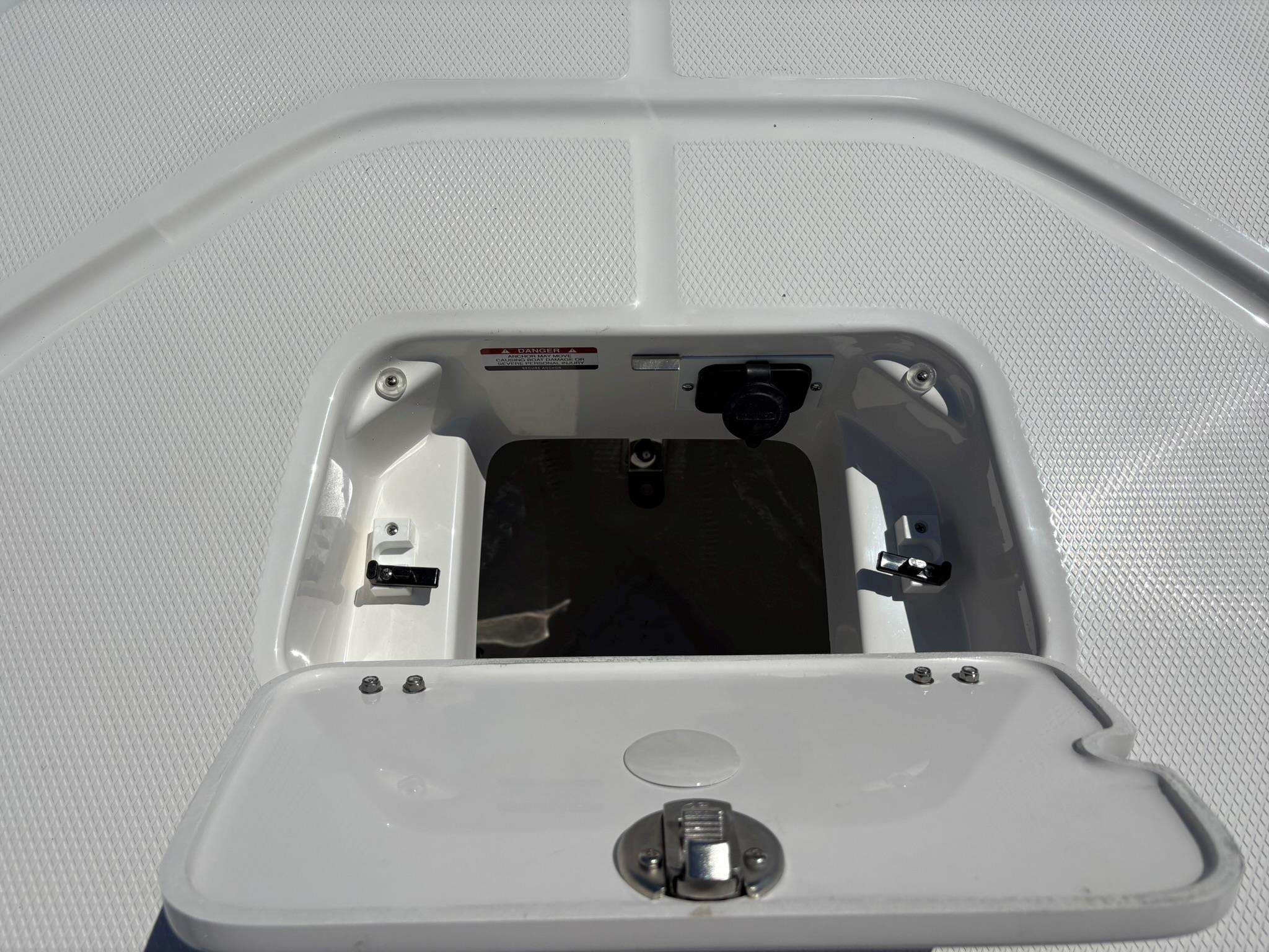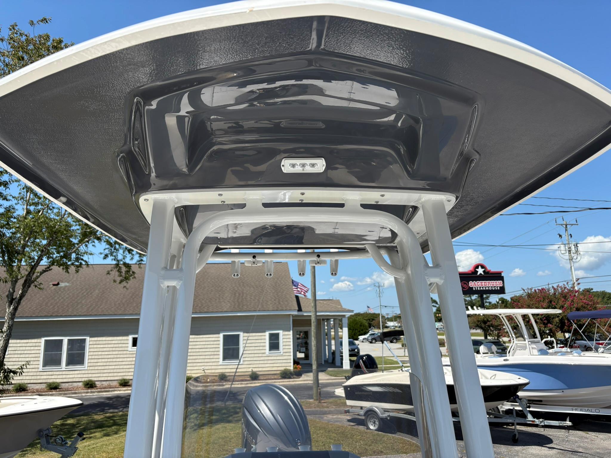 -White Powder coated hard top with LED spreader lights, rod holders, and electronics box