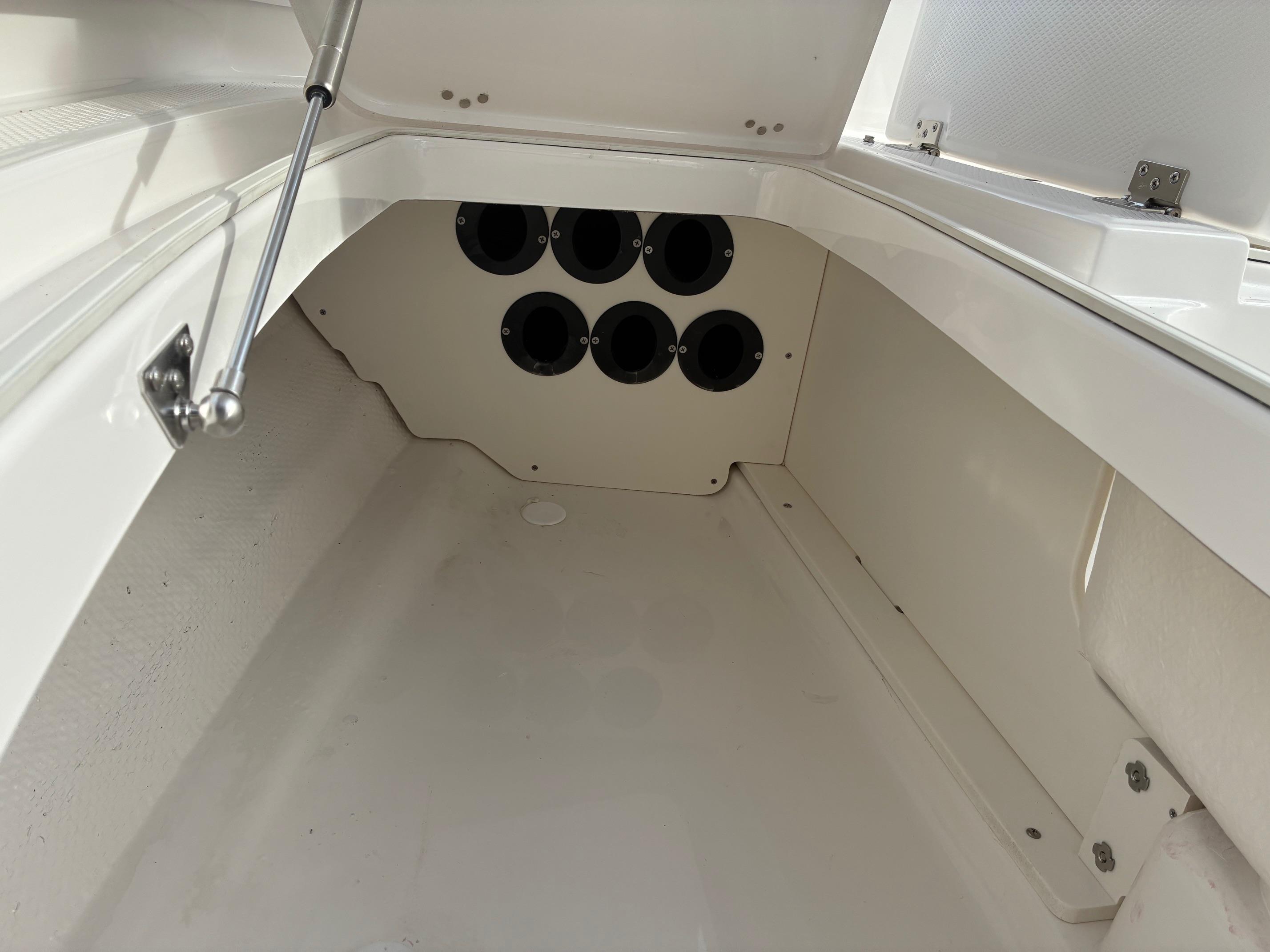 -Powder coated leaning post with rod holders, backrest, arm rests, flip-up bolsters, and cooler