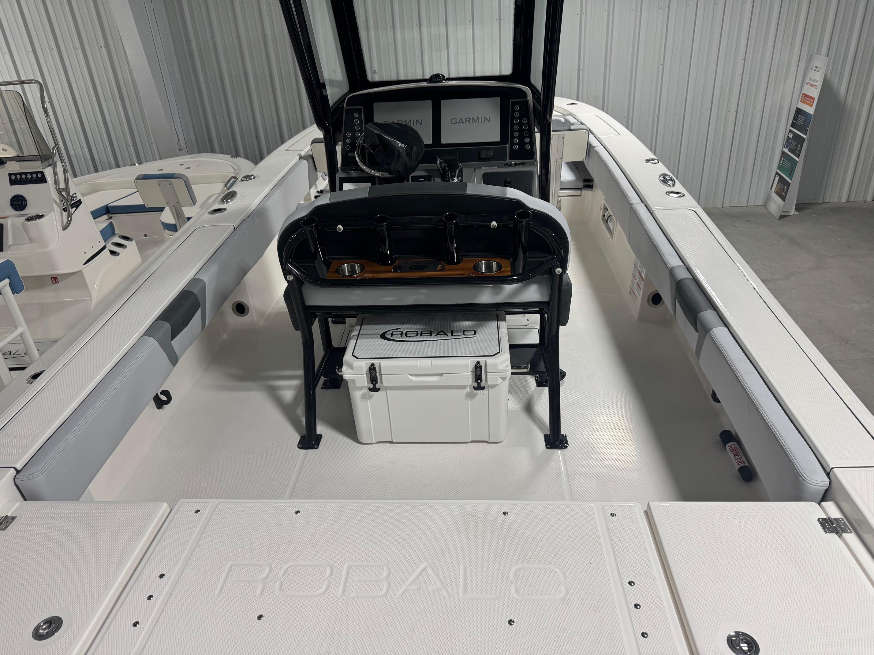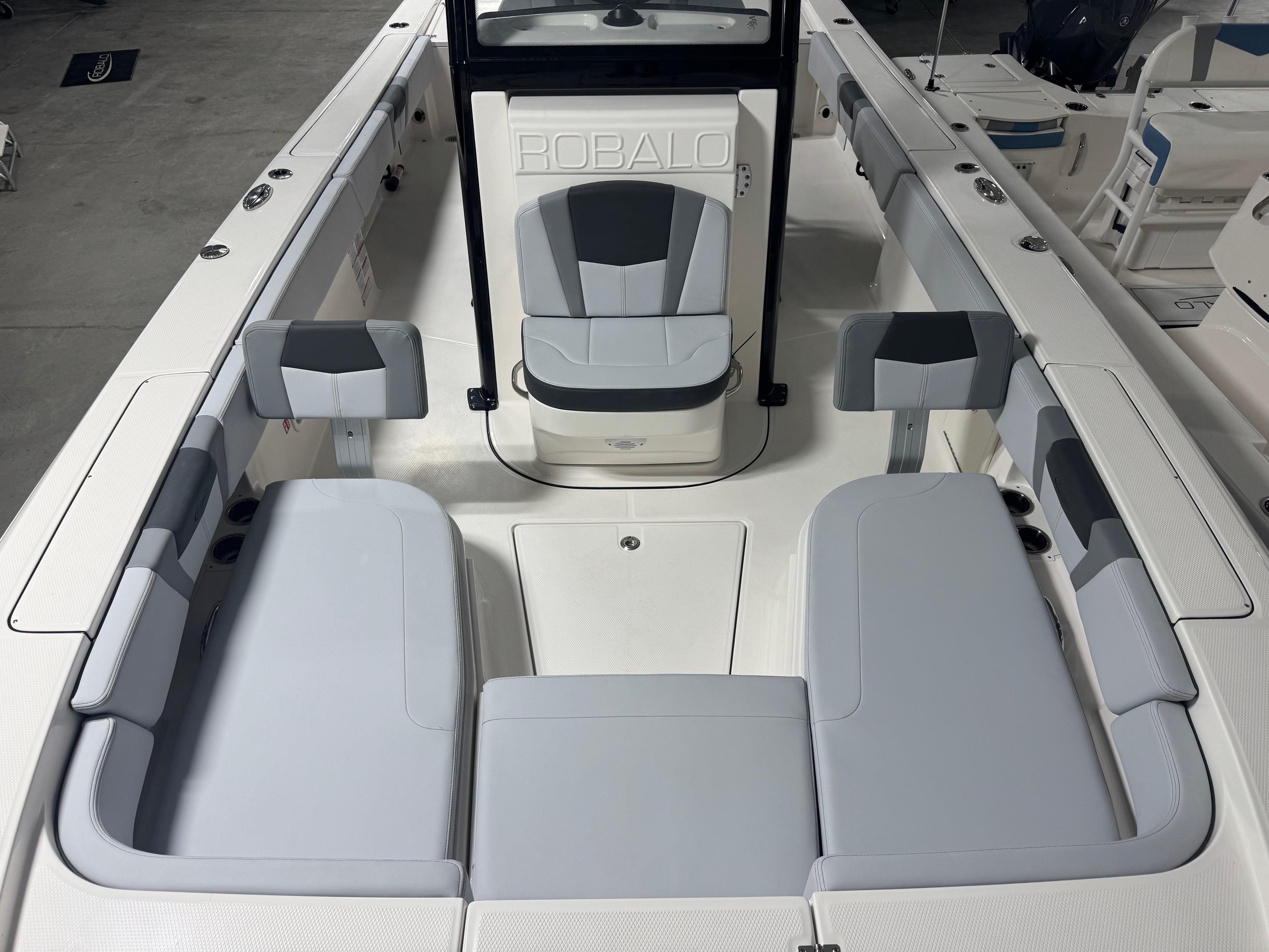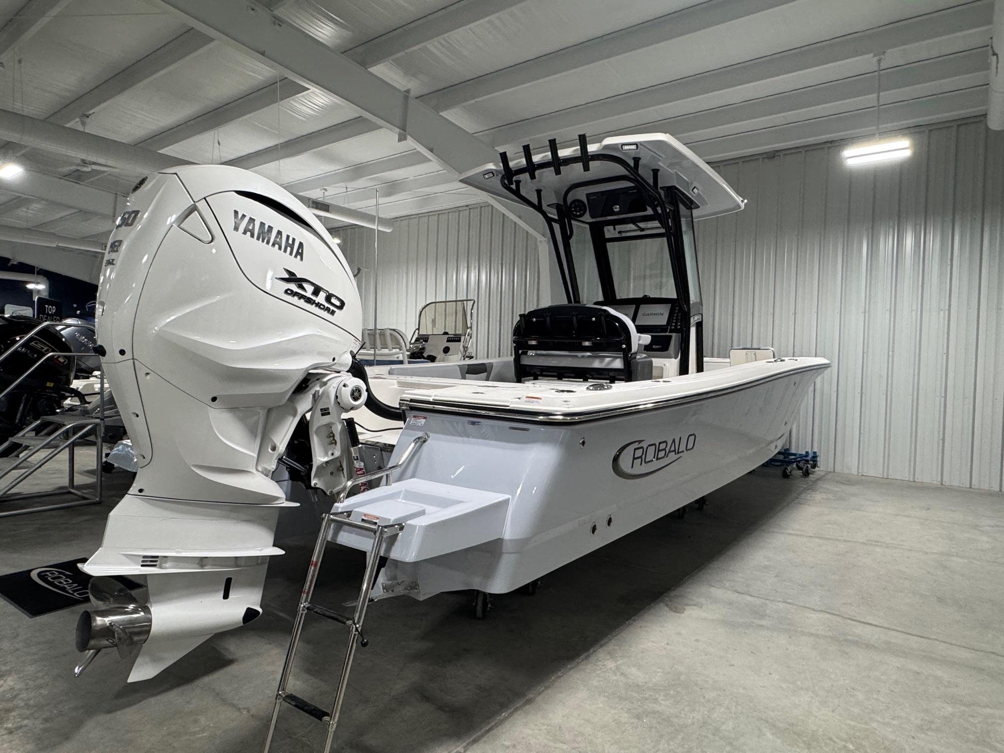 This 2026 Robalo 266 Cayman is powered by a Yamaha XTO Offshore 450. It's the new model in the Robalo Bay boat fleet, and it comes loaded with features ideal for offshore or inshore trips. You will be impressed with the comfortable bow and aft seating areas and the ability to convert them to large casting decks. Standard features include 3 livewells, large head compartment, hydraulic jack plate, Powder coated hard top with 3-panel glass windshield and much more!