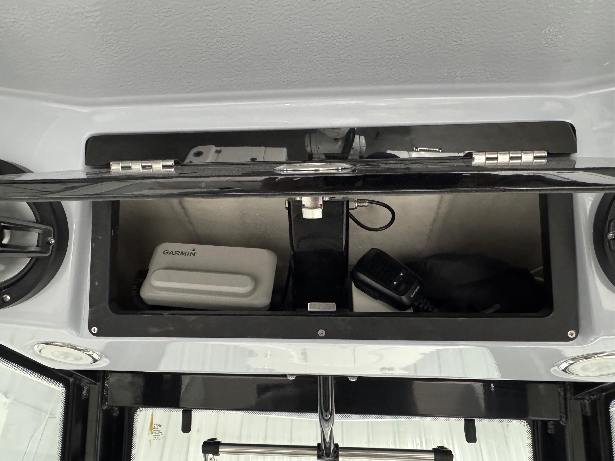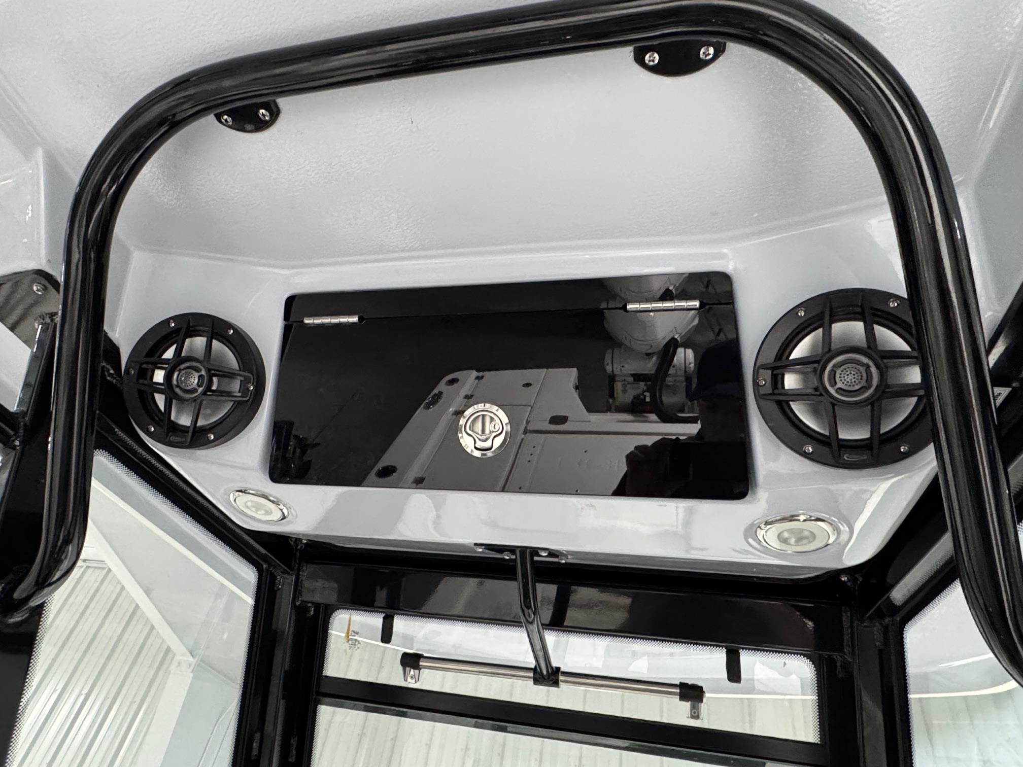 -Black powder coated hard top with LED spreader lights, Electronics box, rod holders