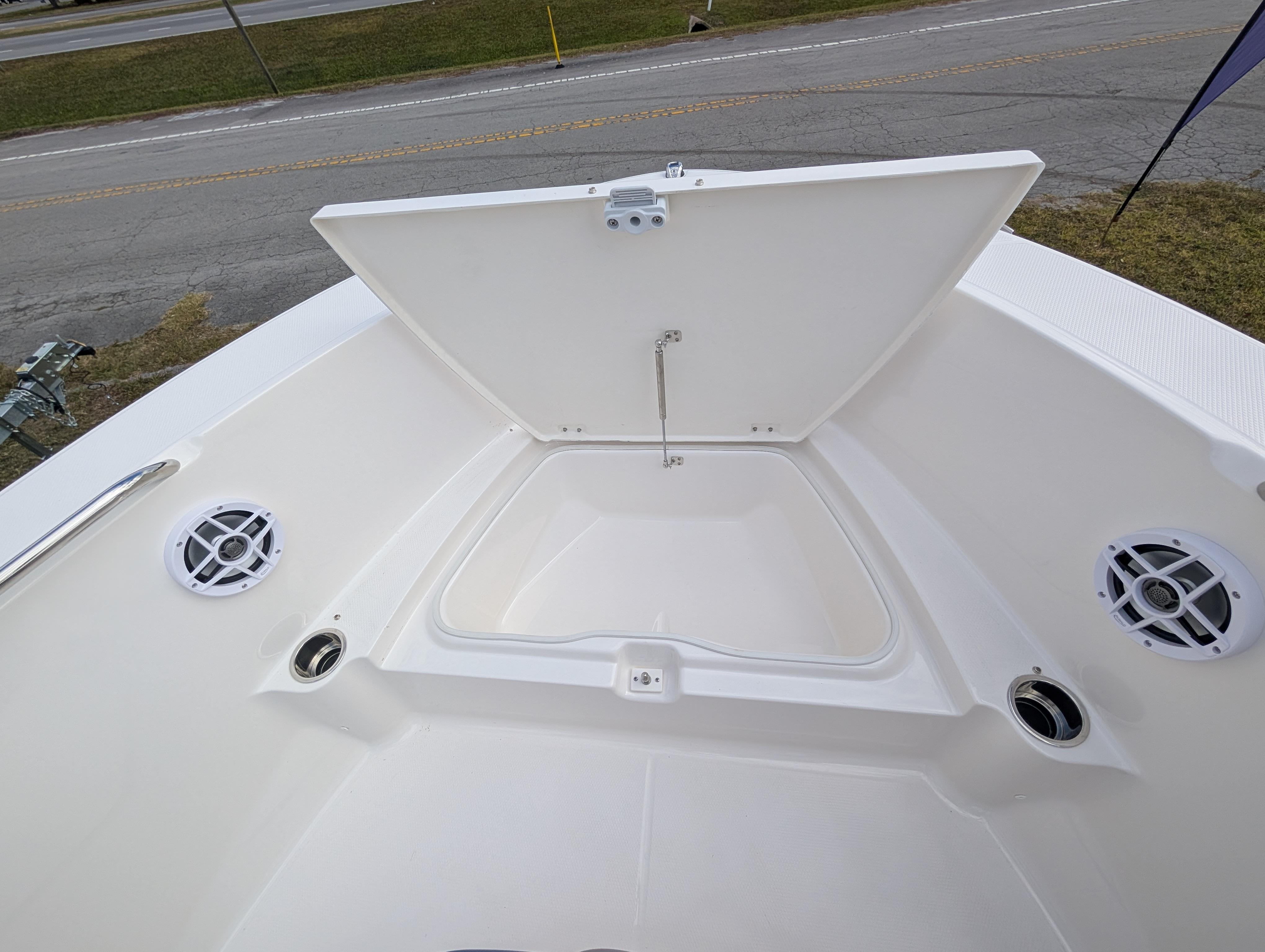 -Bow insulated storage compartment (25 gallons) with overboard drain