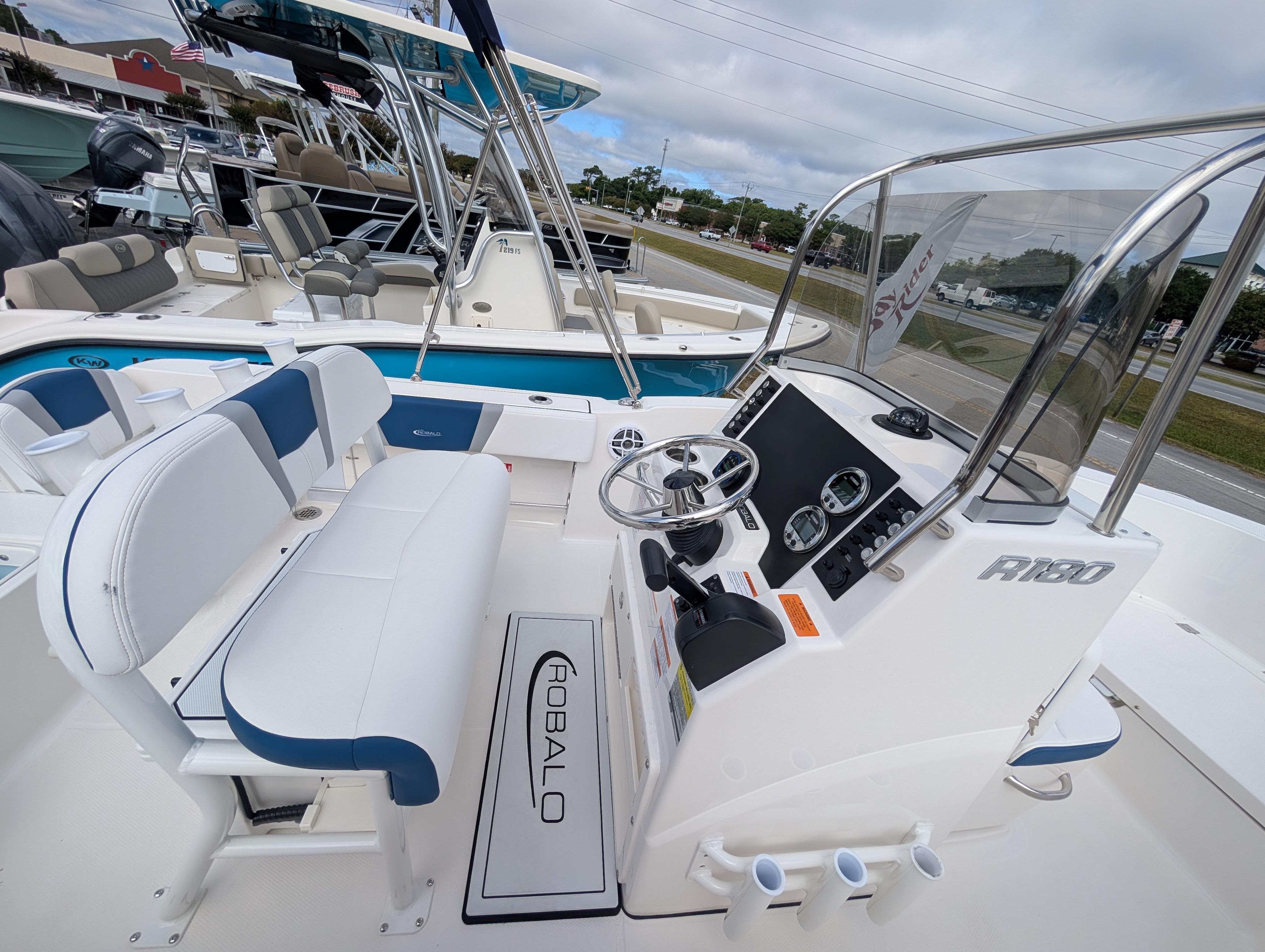 This Robalo R180 is powered by the NEW White Yamaha F115XB2 outboard. The R180 is equipped with twin aft seats with heavy duty hardware, making these seats durable as well as comfortable. The seats also fold away, allowing the boat to be very functional for fishing when you're not cruising the water. This boat is located at our Morehead City, NC location and for more information give us a call at 252-773-0099.