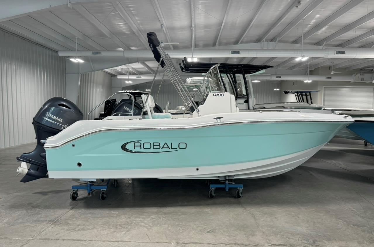 This 2025 Robalo R180 center console is powered by a Yamaha 115. It will have you thinking you're on a much bigger boat with it's deep gunwale height and large head area. This boat is the largest 18 footer in it's class, and with lots of room to fish and the deep V hull, you can cruise almost anywhere with confidence. To learn more, please visit our Supply, NC location, or give us a call at 910-755-7900!