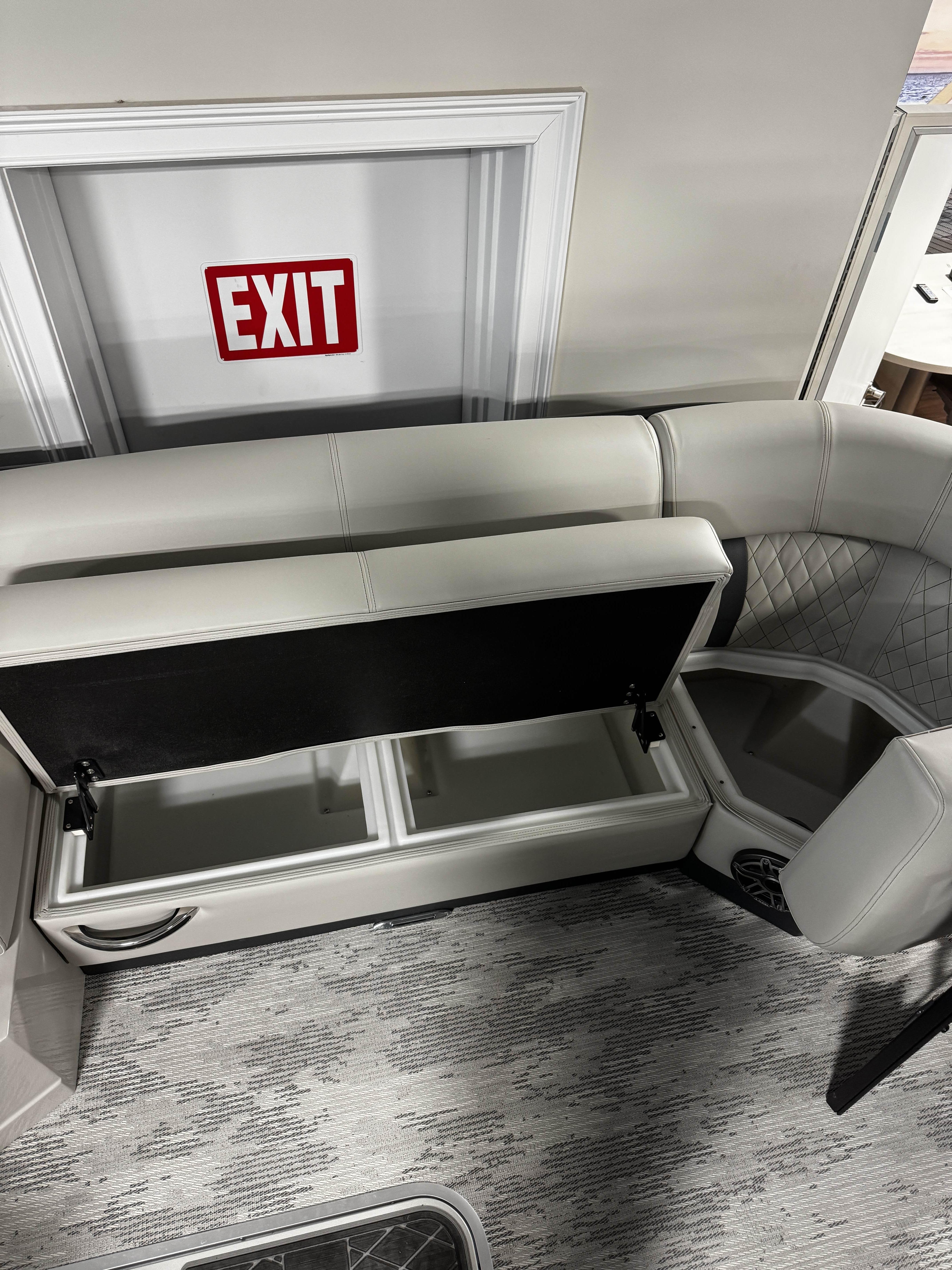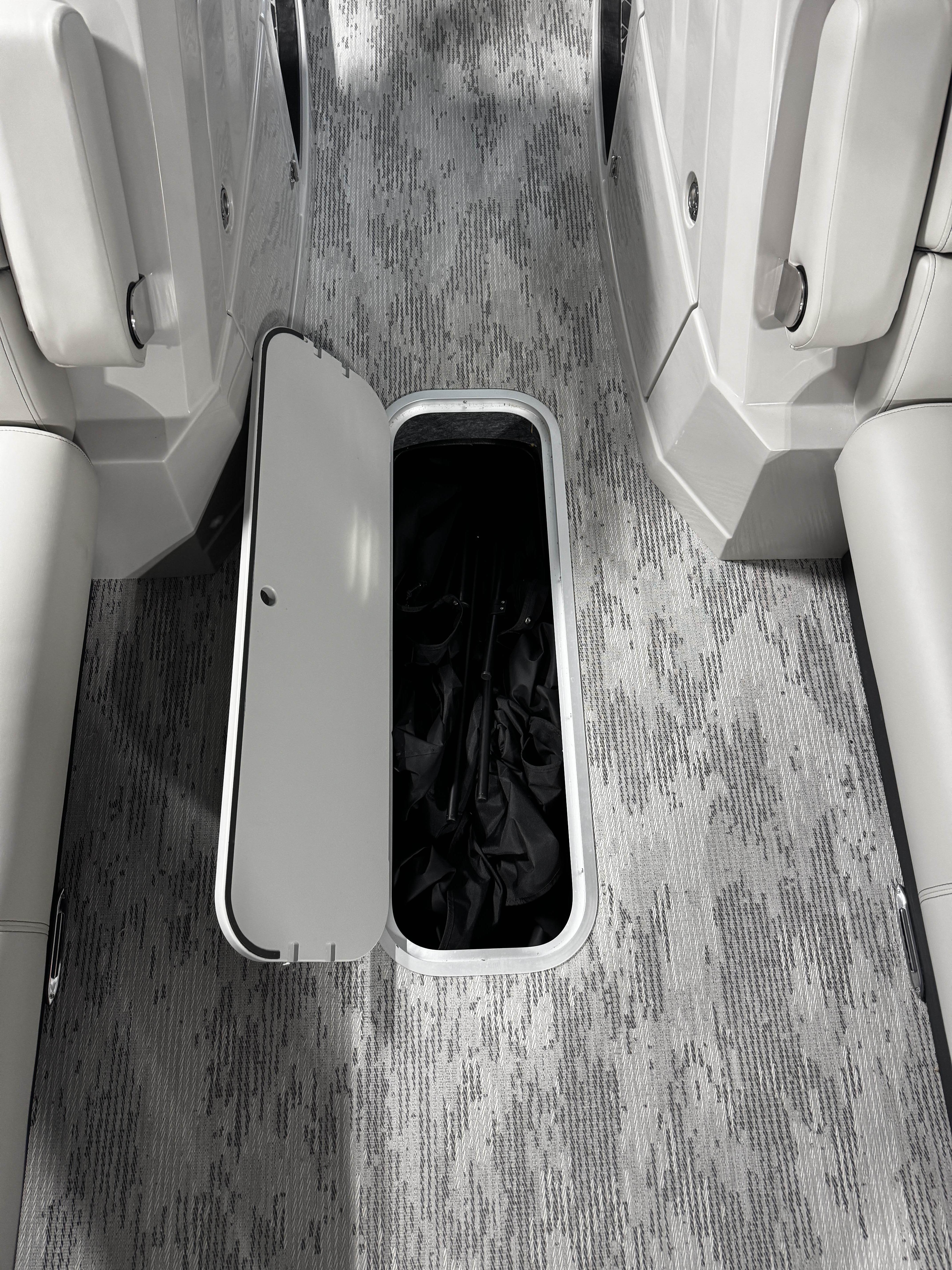 Plush wraparound seating in bow & stern with built-in storage beneath