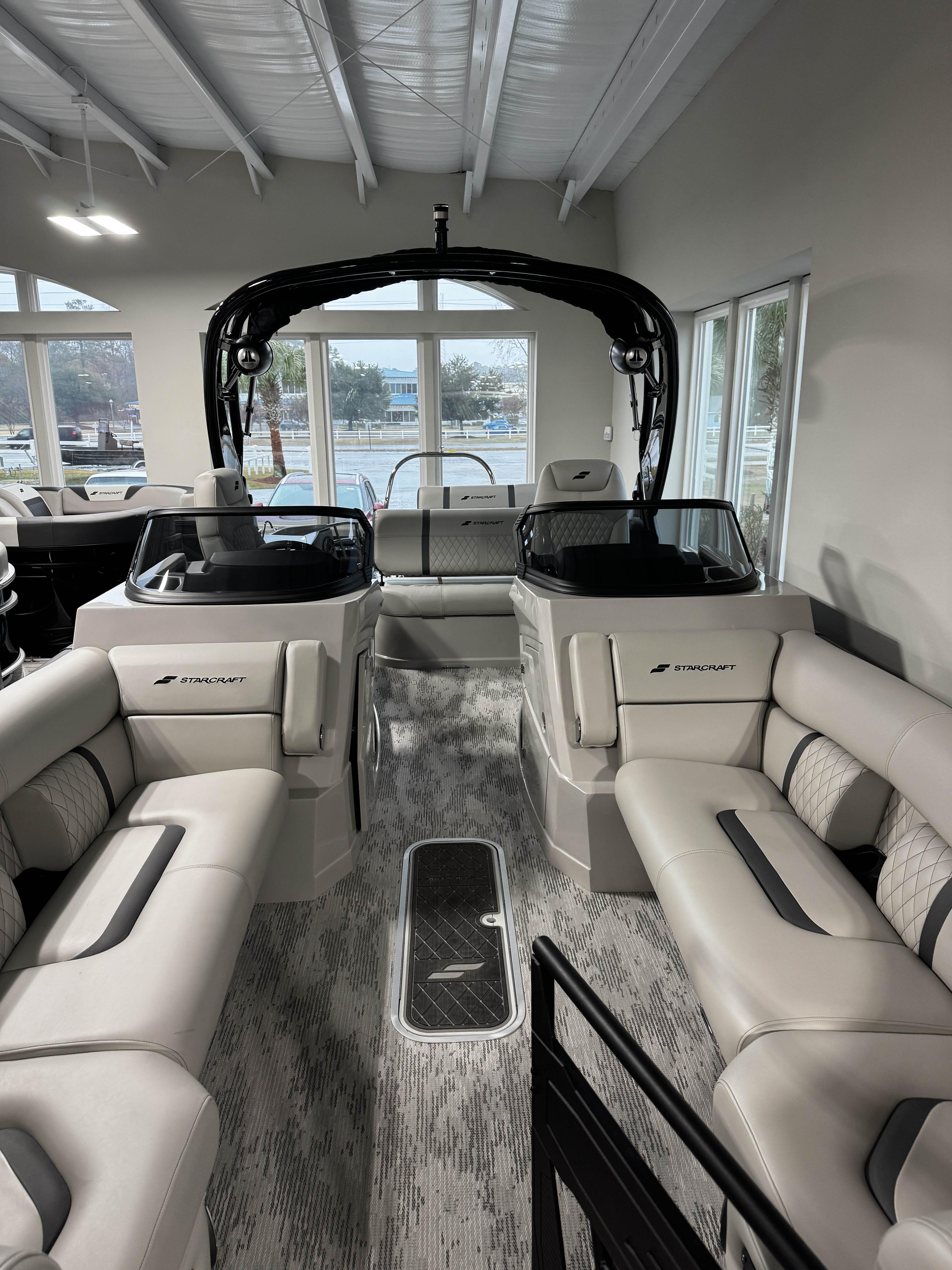 This 2026 Starcraft RX 25 powered by a Mercury 400 is Starcraft’s flagship luxury pontoon built for premium cruising, watersports, and entertaining. With comfortable seating, upscale finishes, and performance to match, this model blends elegance with capability. Come see it at our Supply, NC location or call 910-755-7900 for more information.