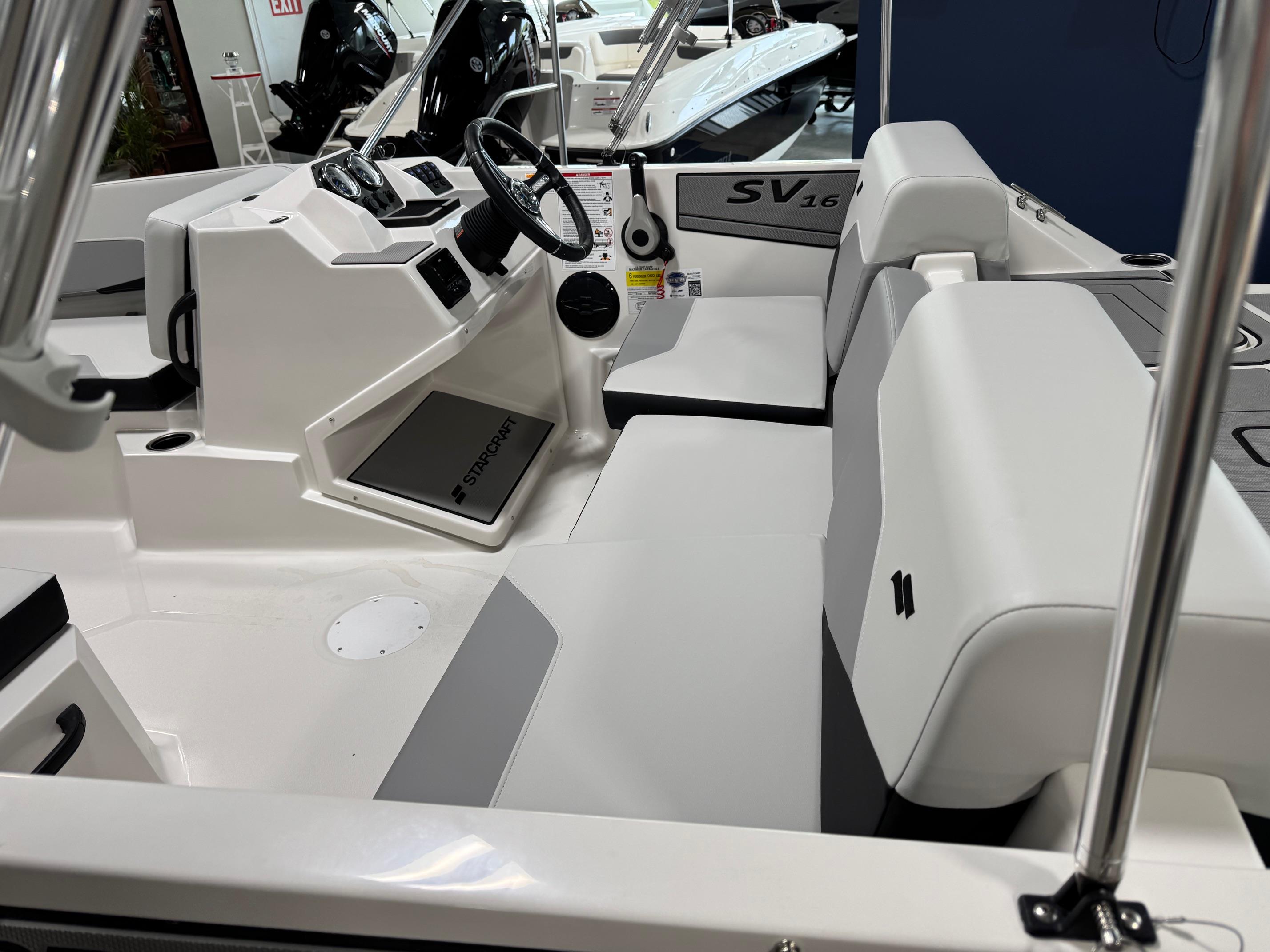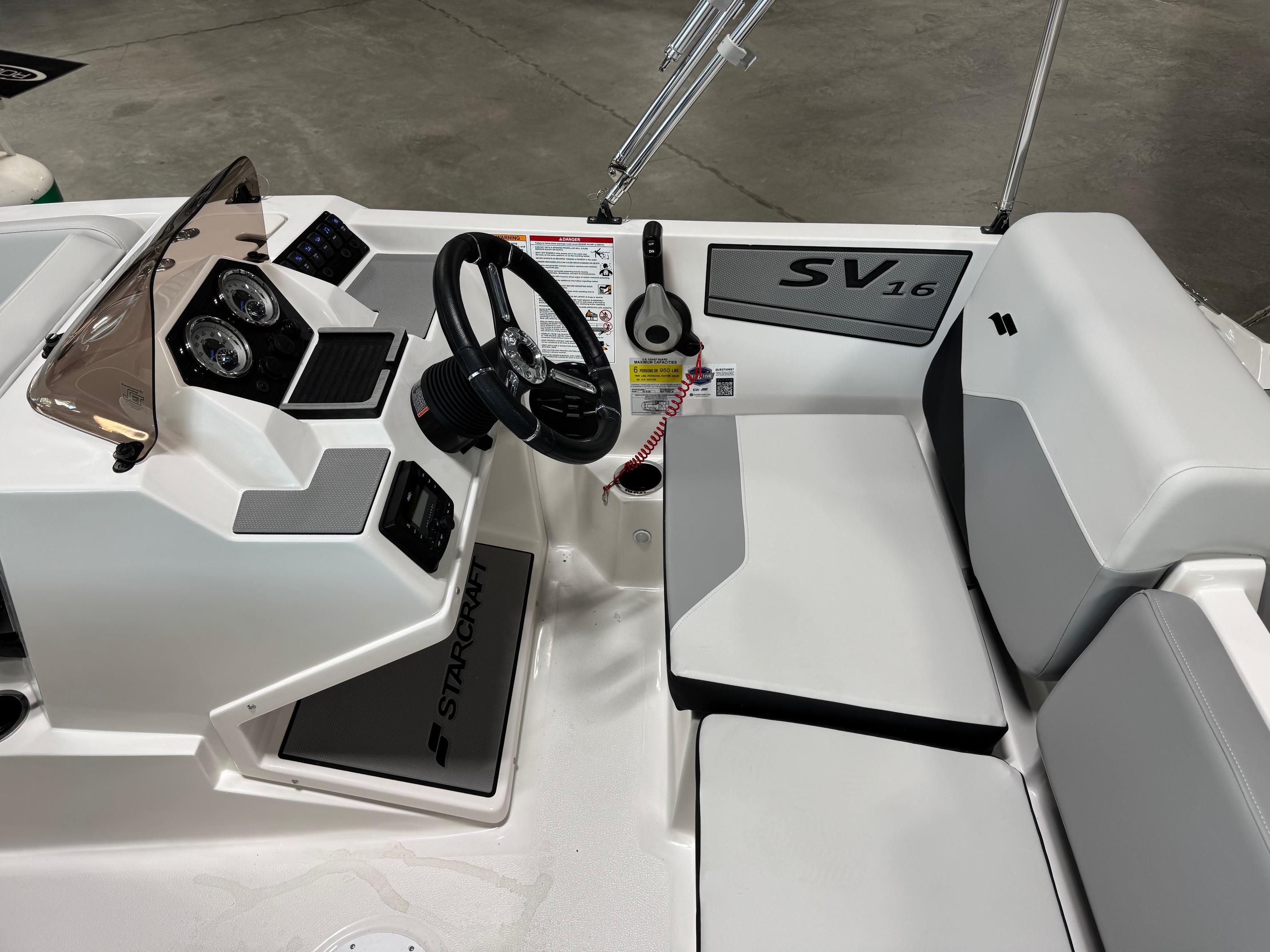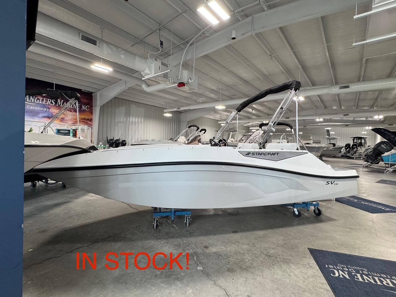 This 2026 Starcraft SV 16 is powered by a Yamaha F70LA 70Hp outboard. The new SV 16 deckboat is a perfect blend of affordability and family friendly features designed to provide maximum enjoyment without breaking the bank. This boat runs smooth with limited horsepower, making it an accessible choice for all boating enthusiasts! It comes standard with Wet Sounds bluetooth stereo, tilt steering, EVA soft touch traction mat, and more! Come by our Supply, NC location or for more information give us a call at 910-755-7900.