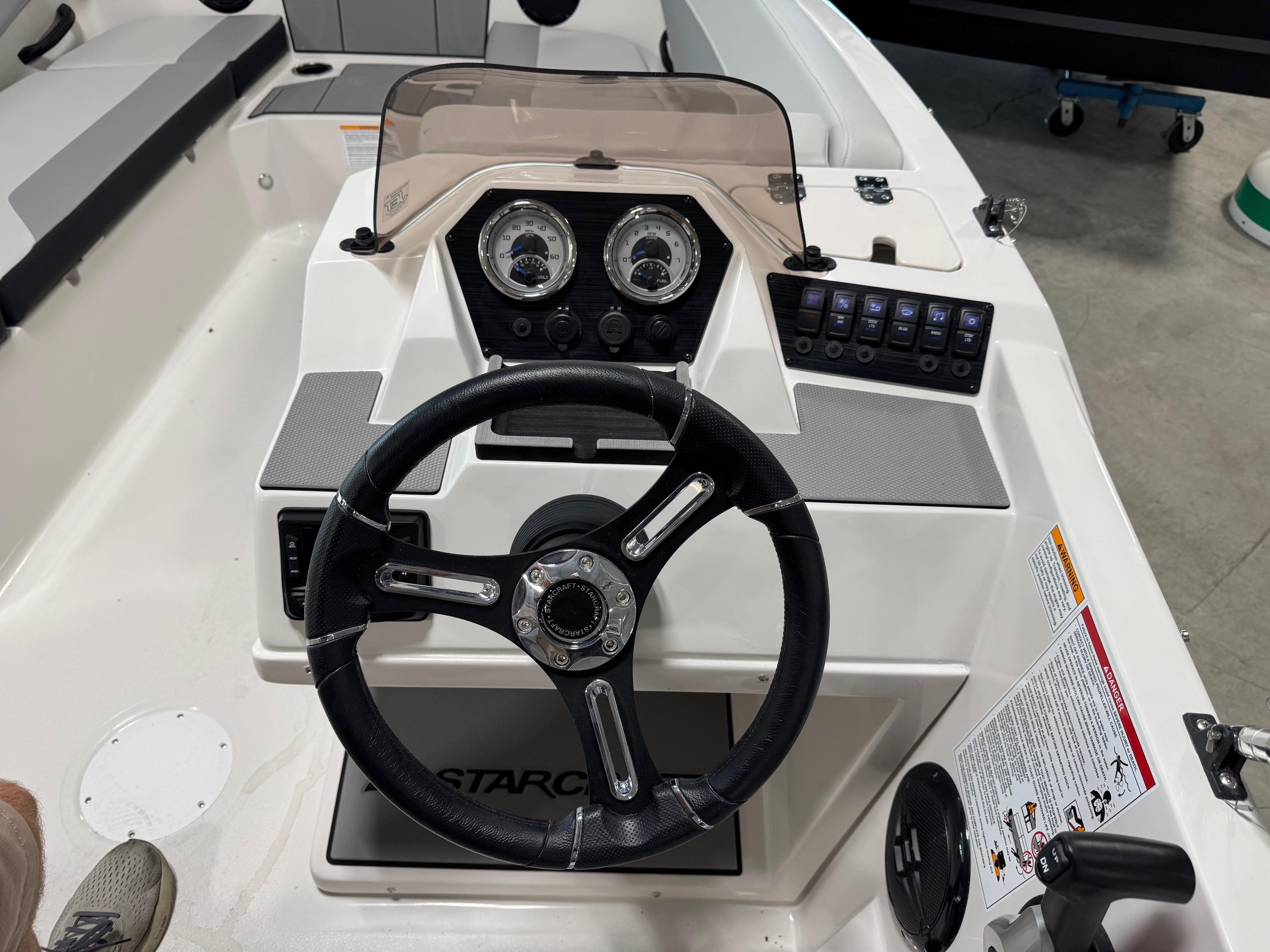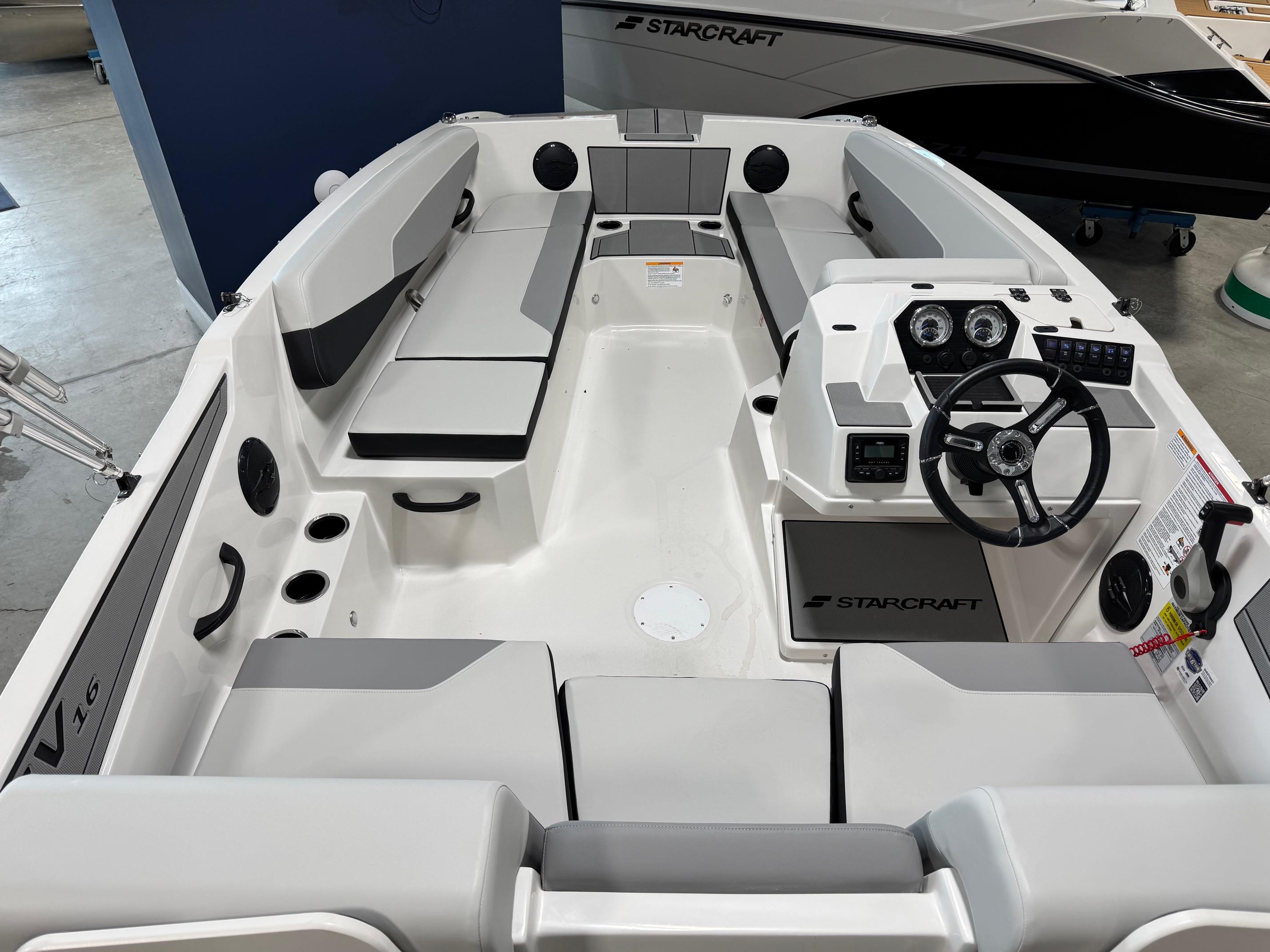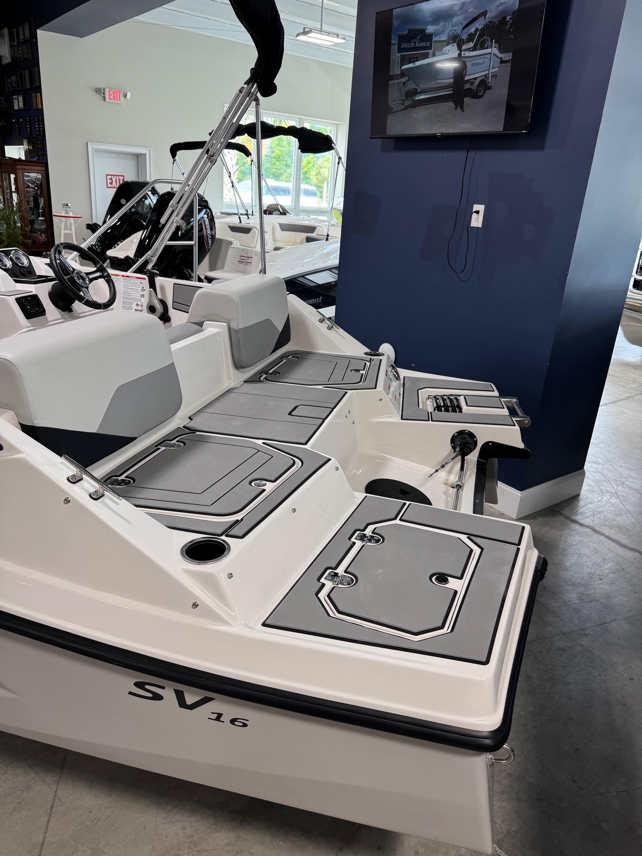 This 2026 Starcraft SV 16 is powered by a Yamaha F70LA 70Hp outboard. The new SV 16 deckboat is a perfect blend of affordability and family friendly features designed to provide maximum enjoyment without breaking the bank. This boat runs smooth with limited horsepower, making it an accessible choice for all boating enthusiasts! It comes standard with Wet Sounds bluetooth stereo, tilt steering, EVA soft touch traction mat, and more! Come by our Supply, NC location or for more information give us a call at 910-755-7900.