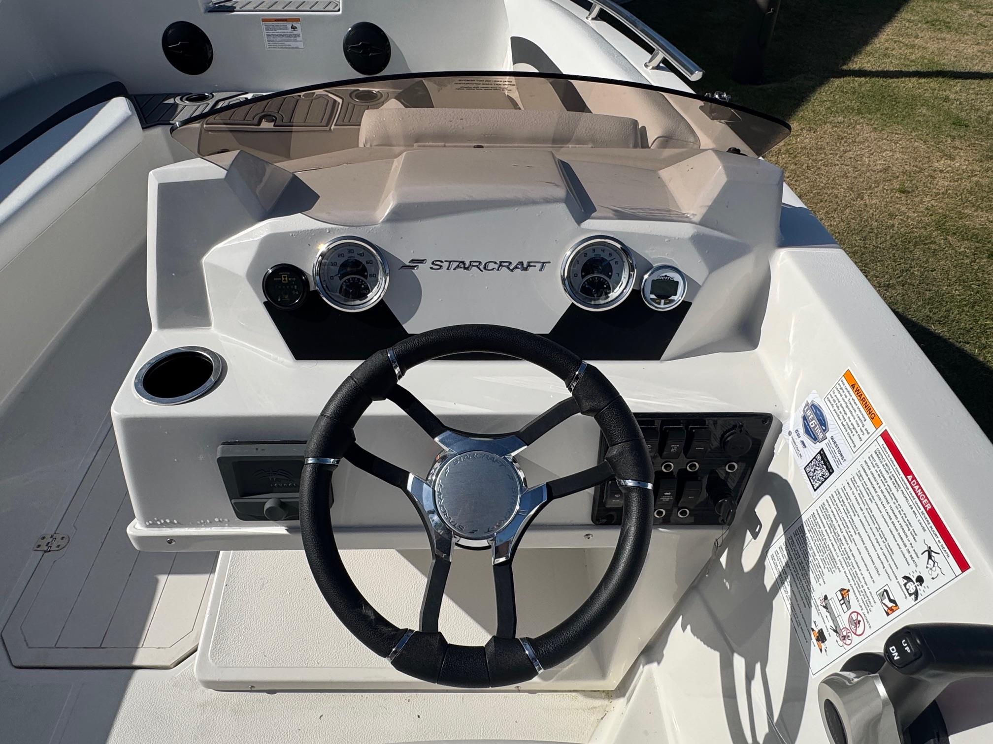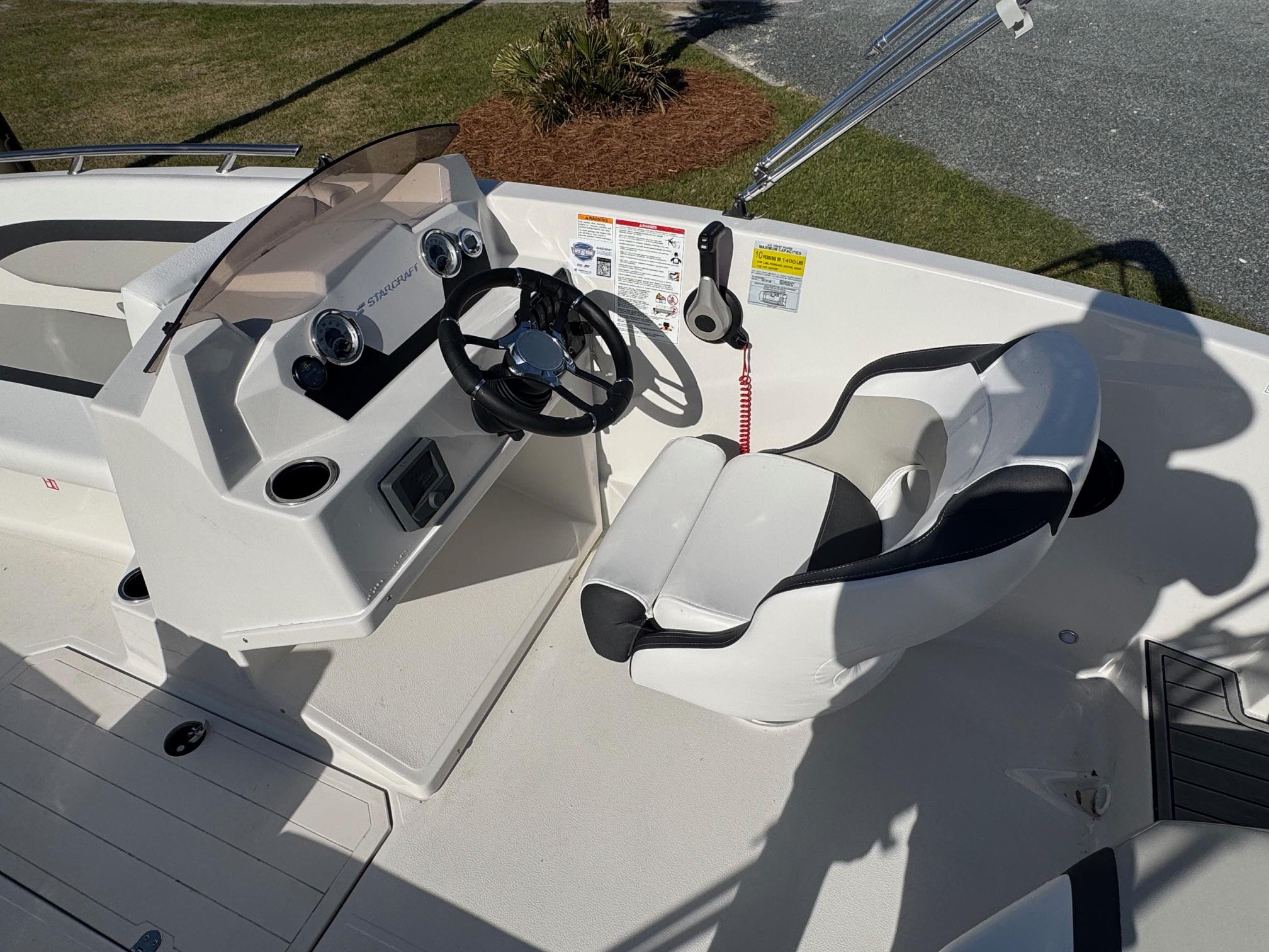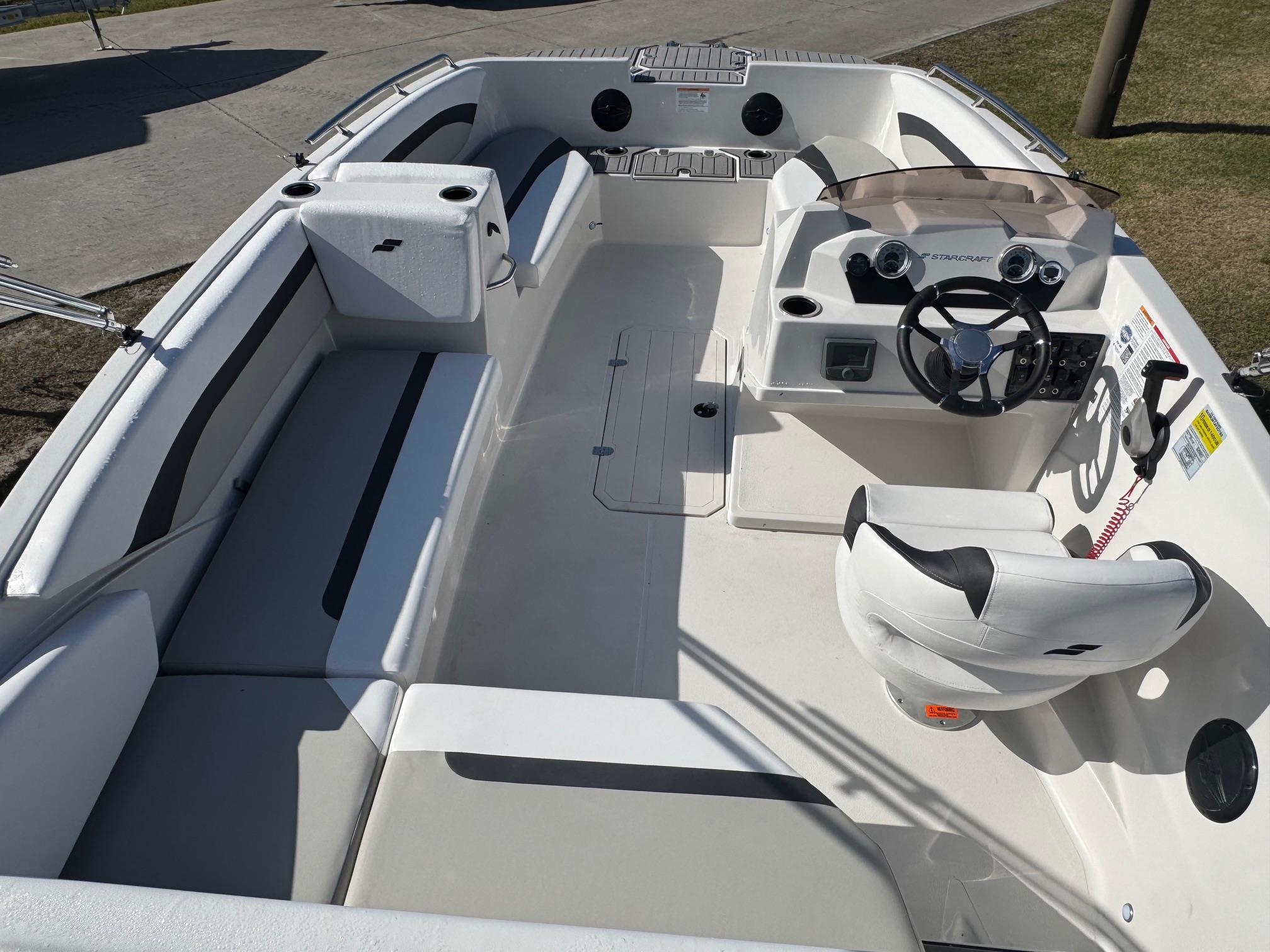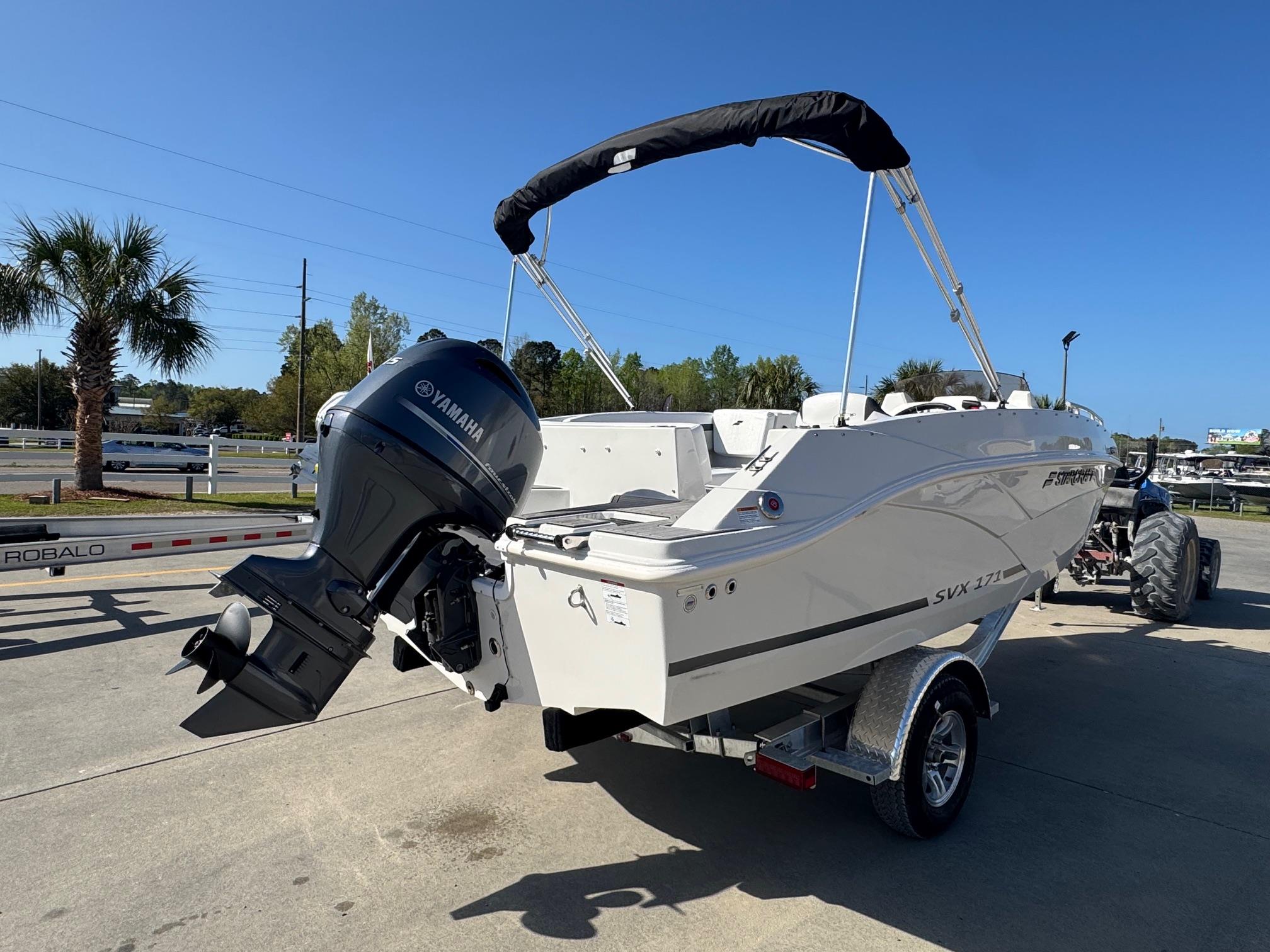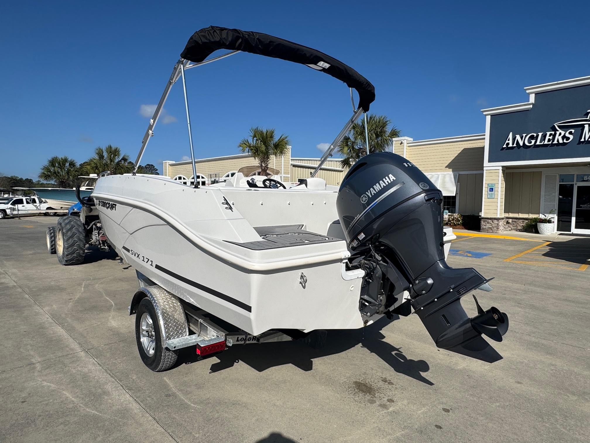 This 2026 Starcraft SVX 171 comes with a Yamaha F115LB. The SVX lineup features seven different models of spacious deck boats that come loaded with value; with a large bimini top for sun protection, and AM/FM stereo system with bluetooth, and EVA soft touch marine flooring at the bow and stern. Come see this boat at our Supply, NC location or call 910-755-7900.