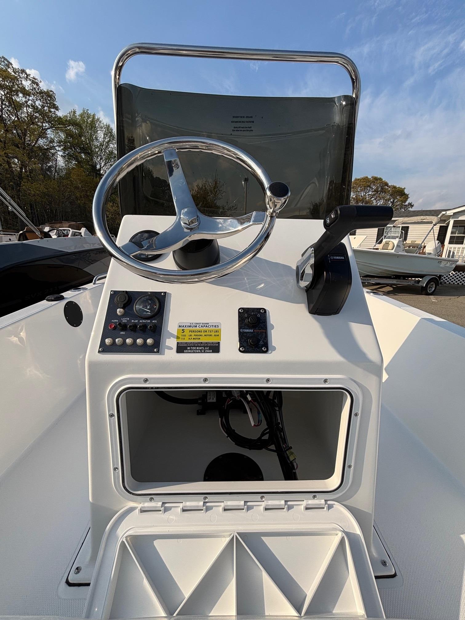 This Seafoam Green 2026 Mi Tide V1700 CC is powered by a Yamaha F90LB2. This boat comes with a comfortable bench seating and an idea platform area to get you to and from your favorite fishing spots. Come see this boat at our Clayton, NC location or call for more information.