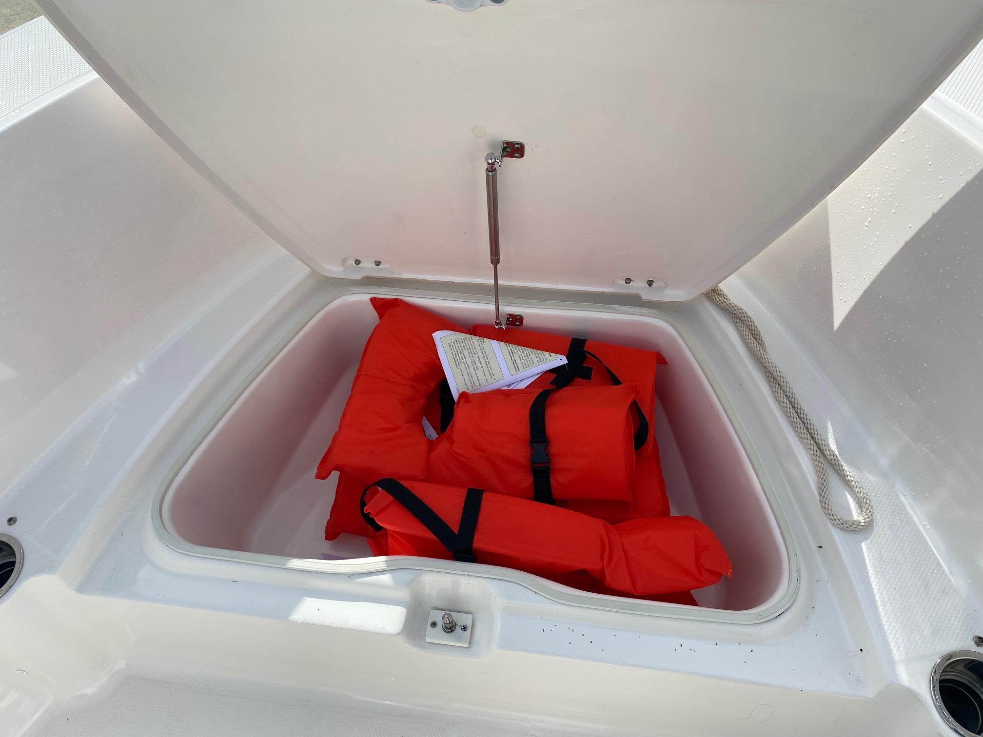 -Bow insulated storage compartment (25 gallons) with overboard drain