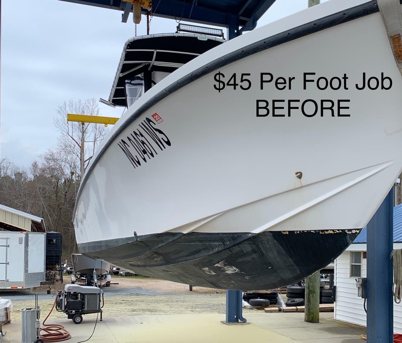 $85 Per foot: (For boats that have not been bottom painted) This will get you complete soda blasting for any algae, barnacles, stains, and other discoloration. Two new coats of paint will also be applied.